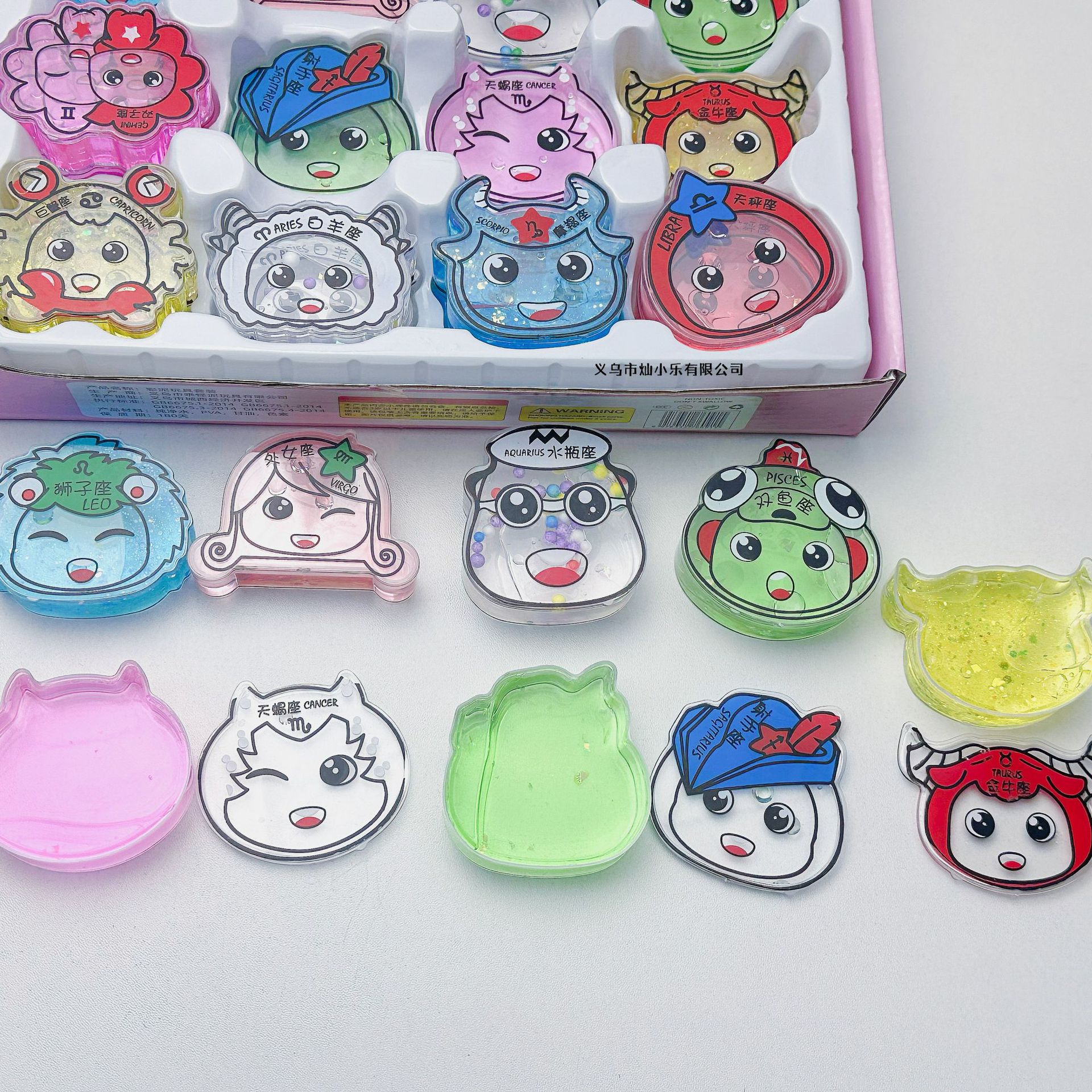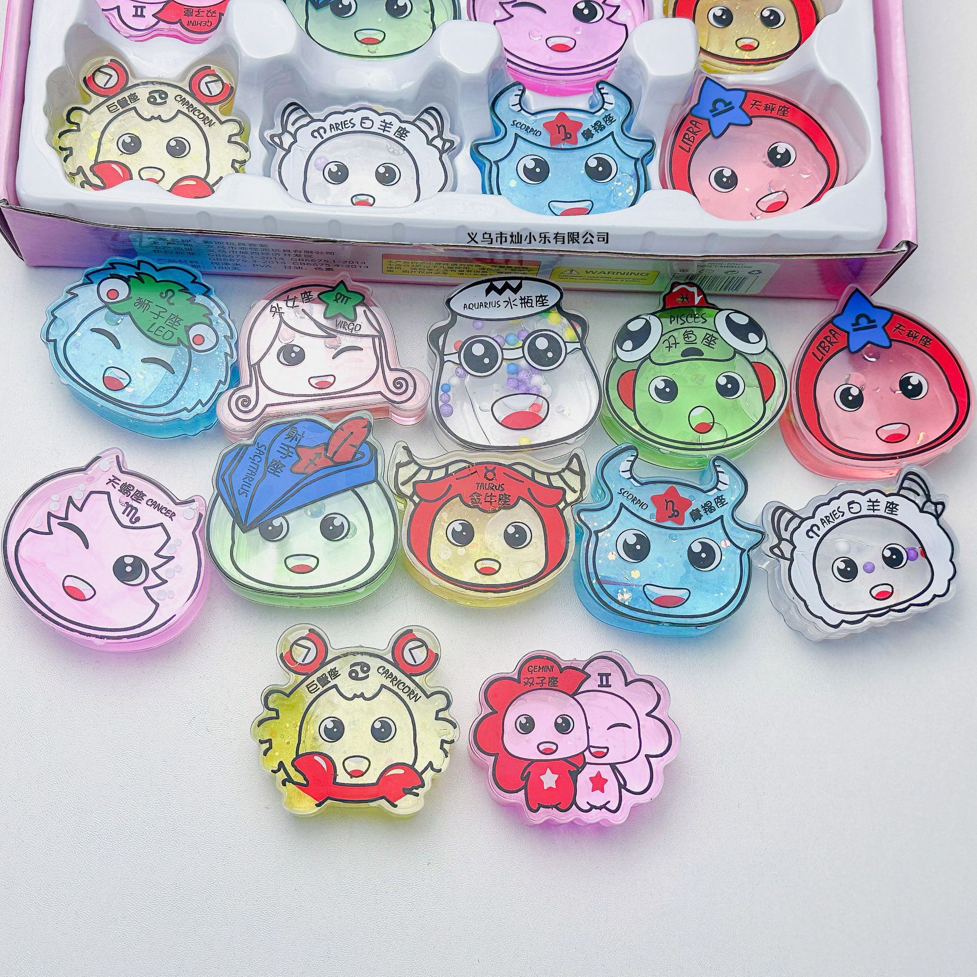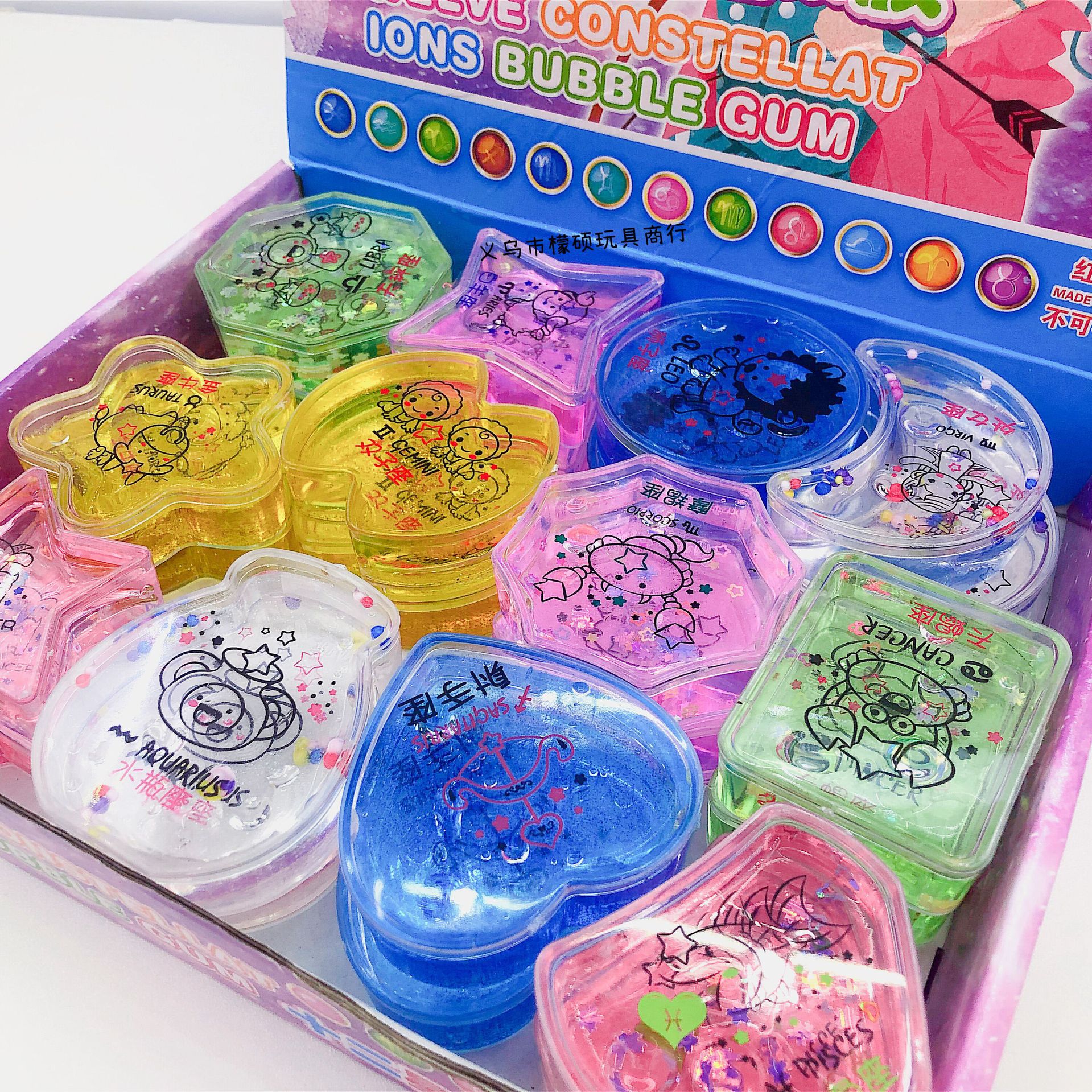 X 十二星座起泡胶24入 高透M胶闪闪加料水晶泥爱心花片史莱姆批发