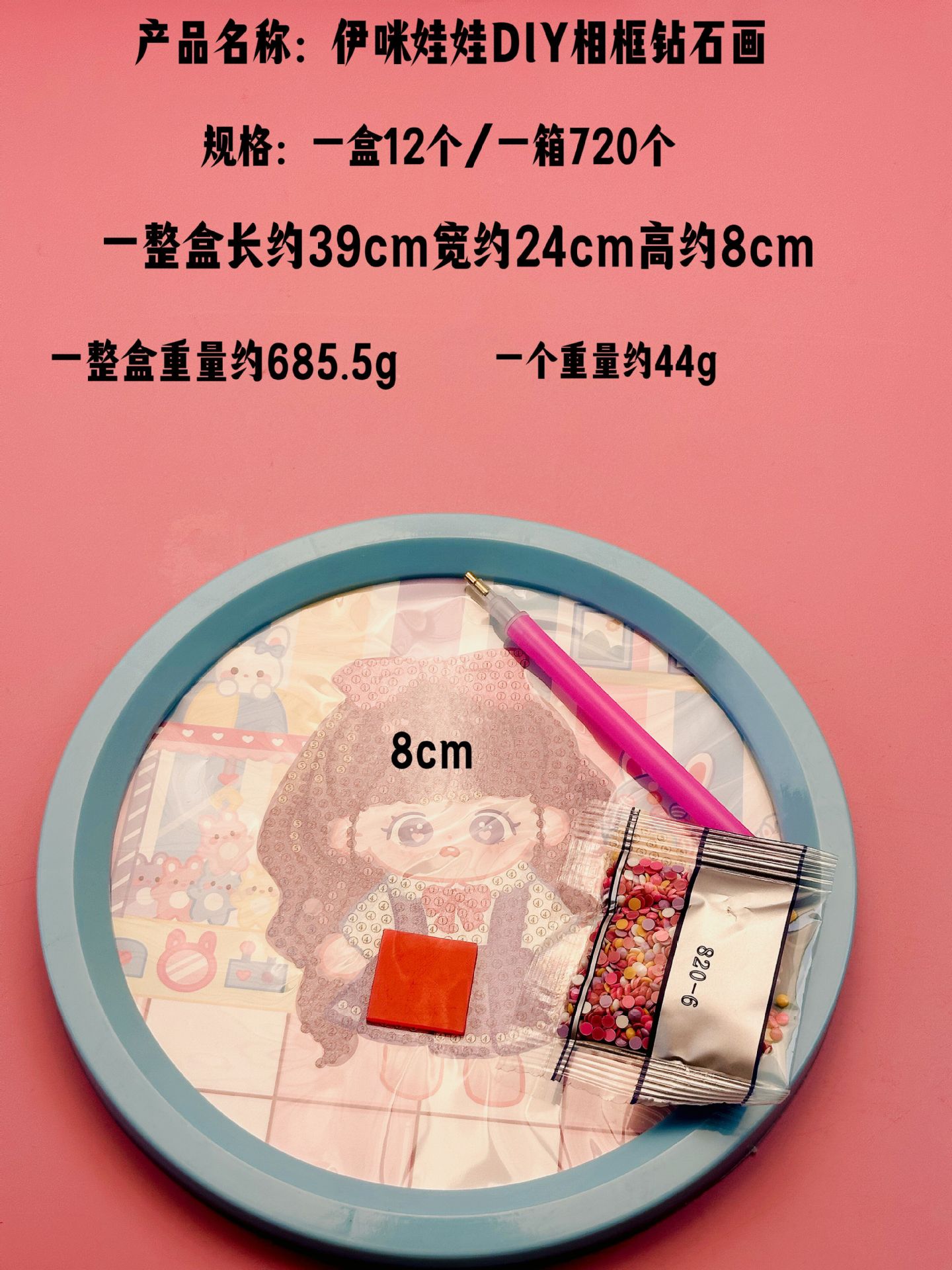伊咪娃娃手工diy钻石画儿童生日礼物卡通带框钻石贴画新款幼儿园