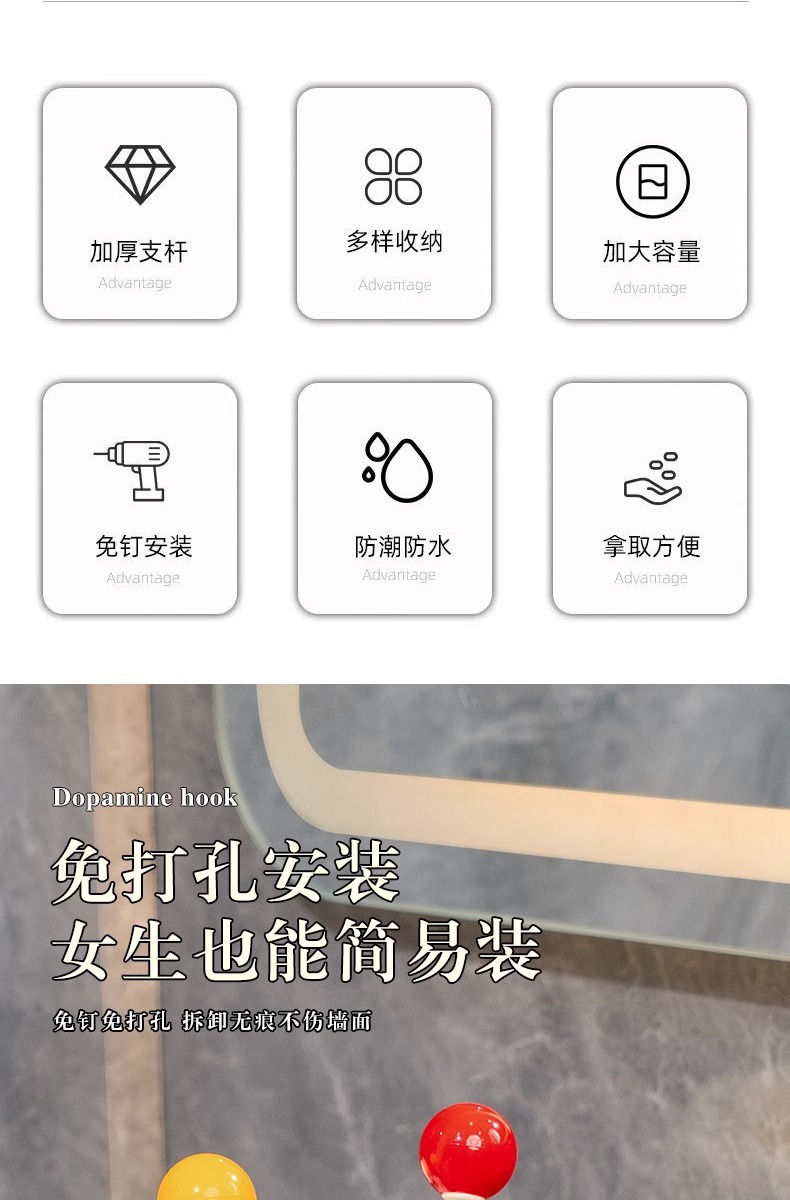 现货多巴胺发圈收纳架浴室免打孔挂钩收纳家居发绳发饰发箍收纳架