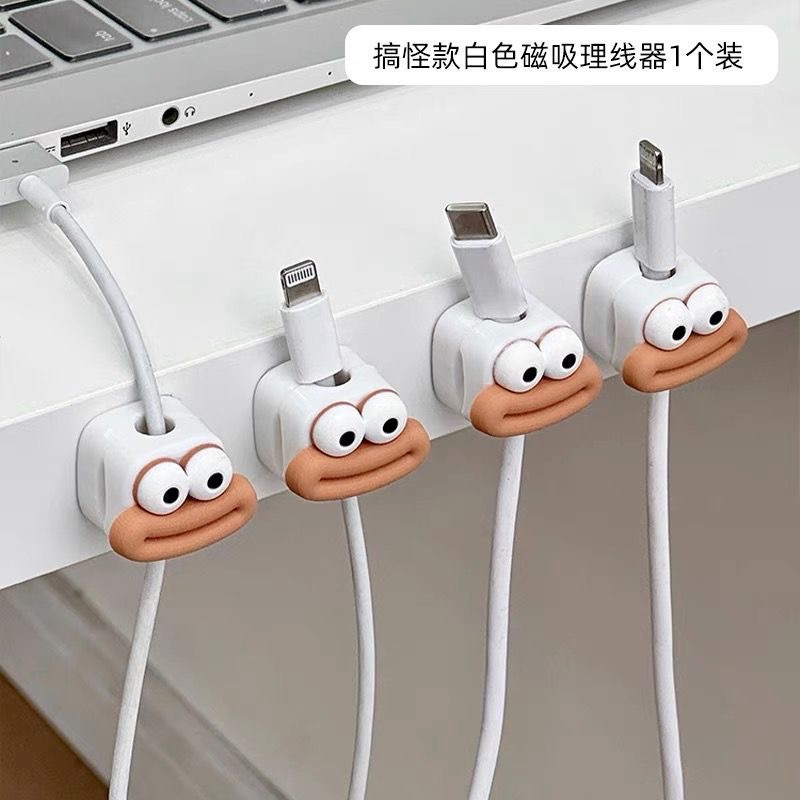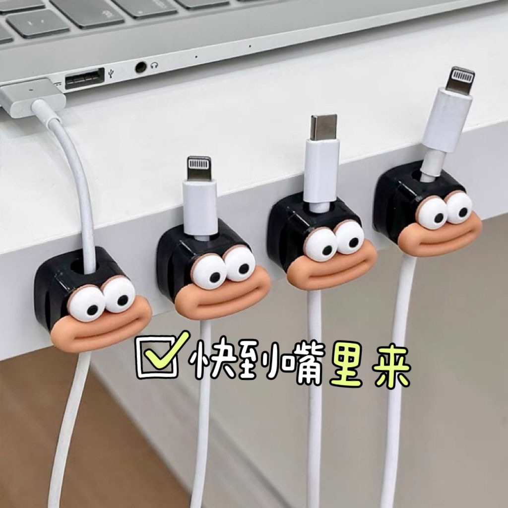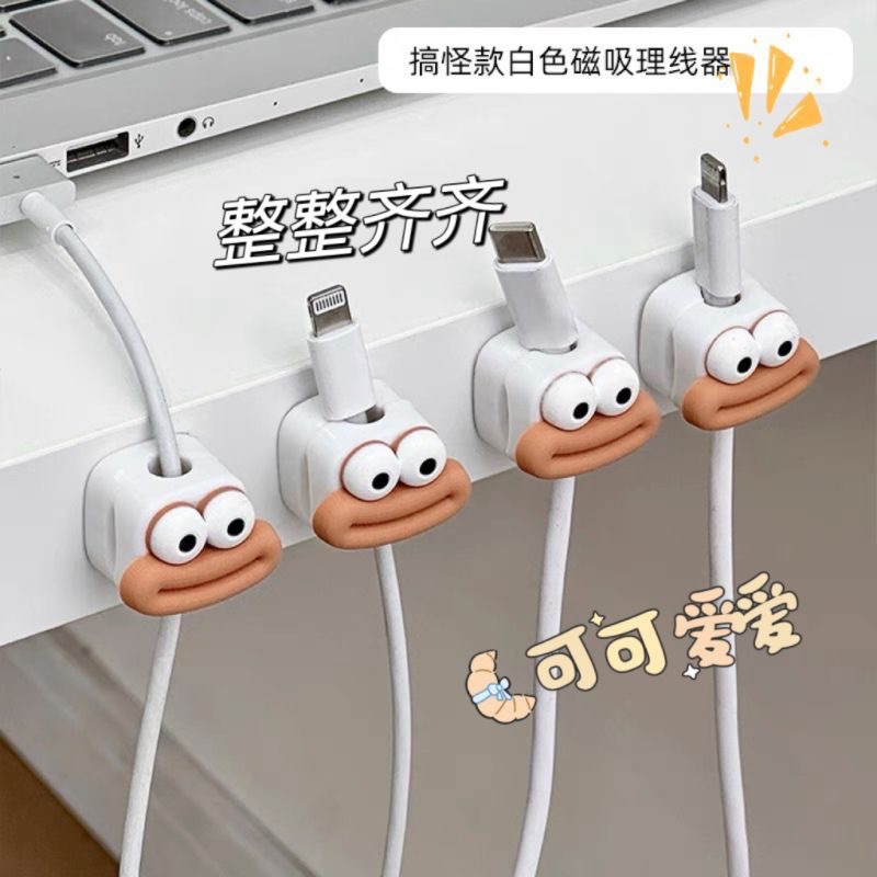 大嘴磁吸收纳数据线固定理线器桌边充电线收纳神器绕线走线卡扣