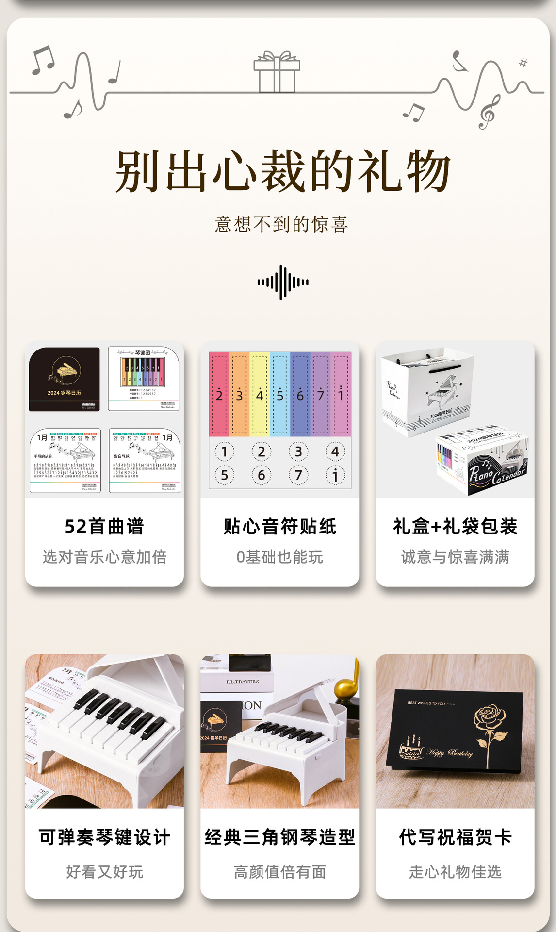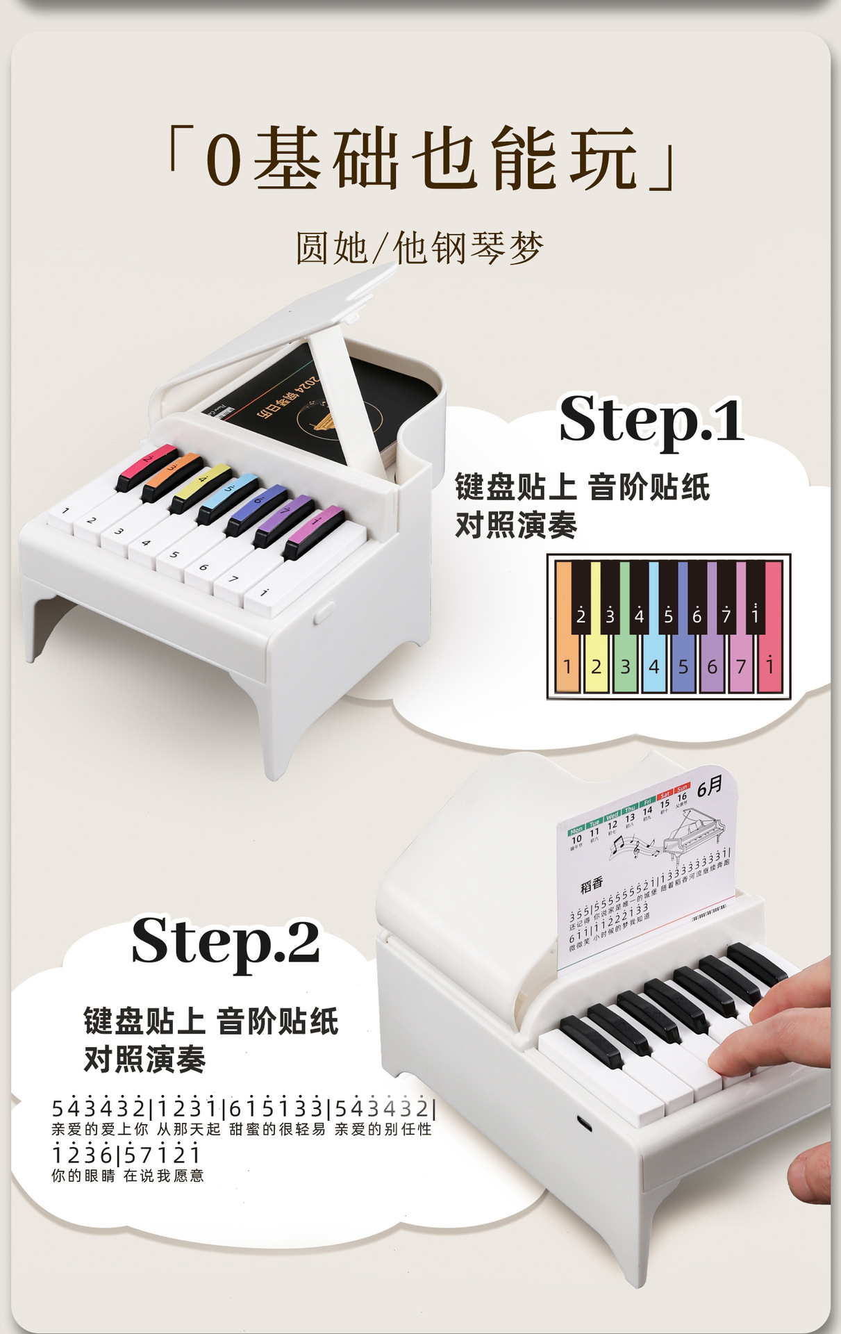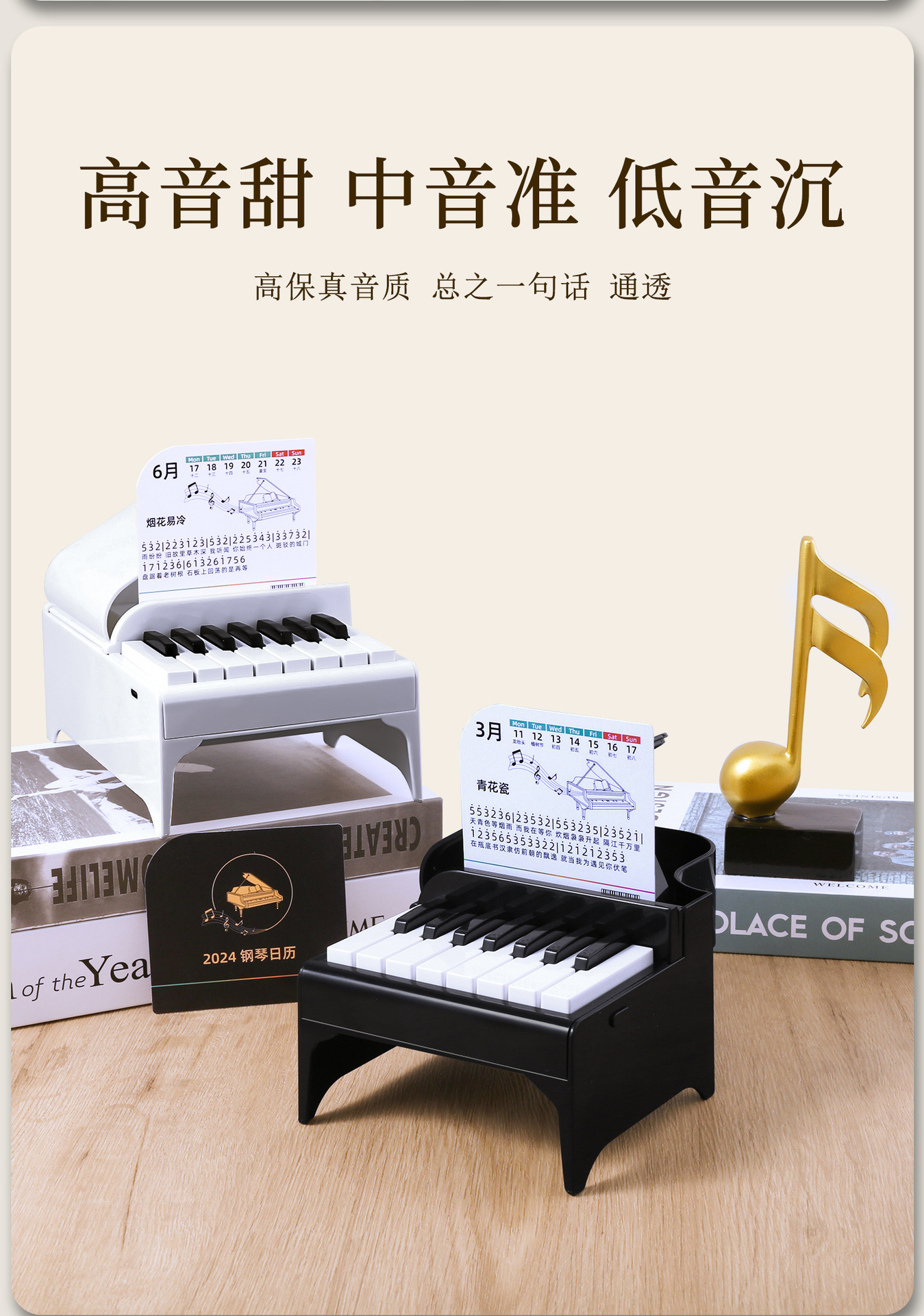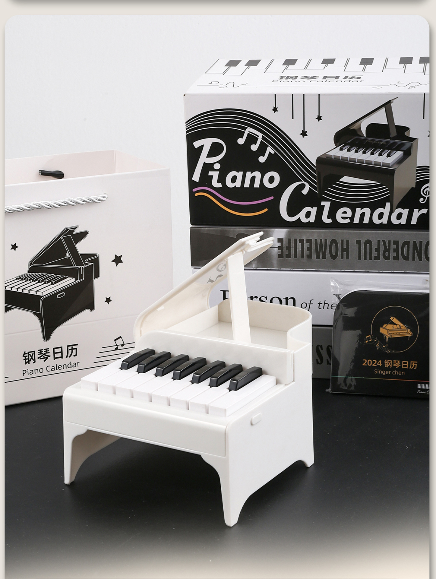 2025年新款杰伦钢琴台历可弹奏创意日历周历迷你摆件桌面礼物