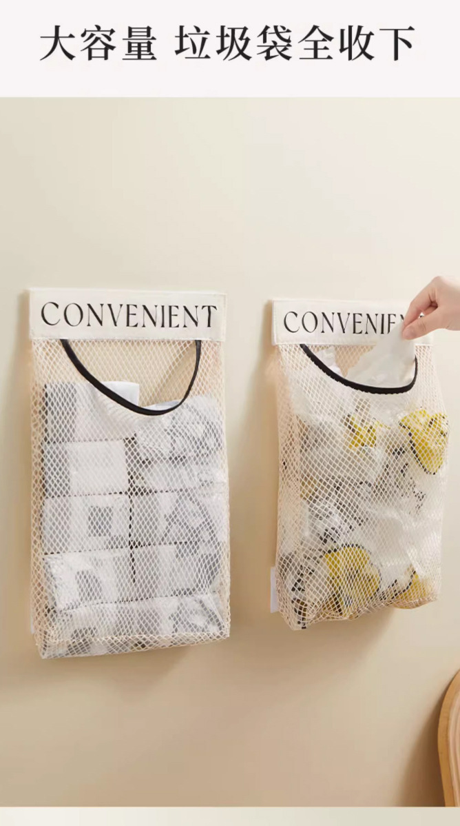 厨房垃圾袋收纳神器壁挂式大容量储物袋子塑料袋柜门桌面魔术网兜