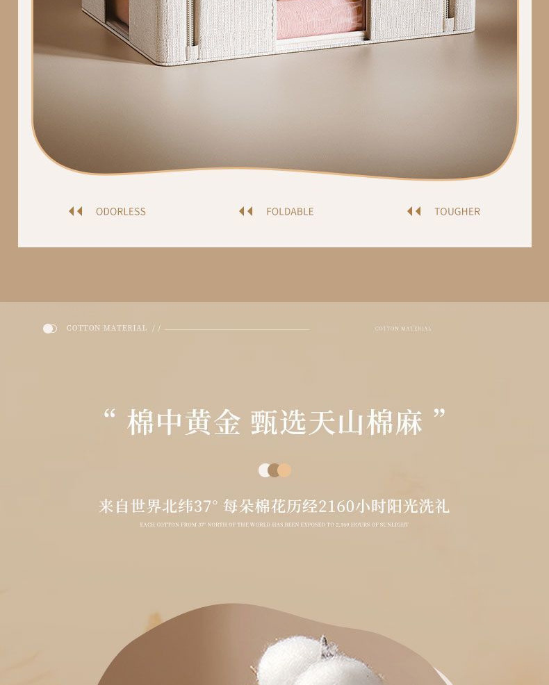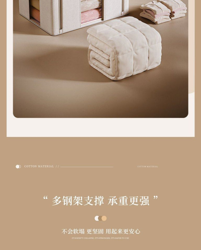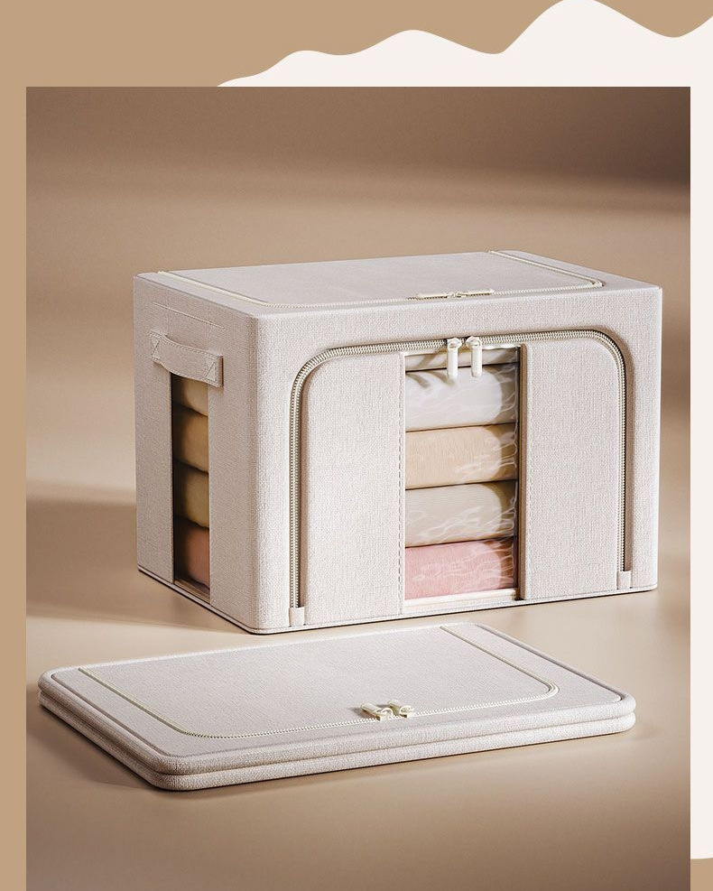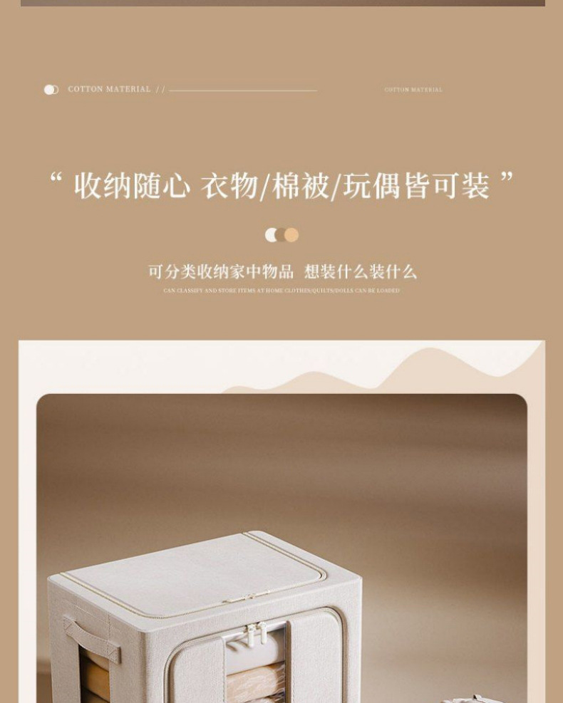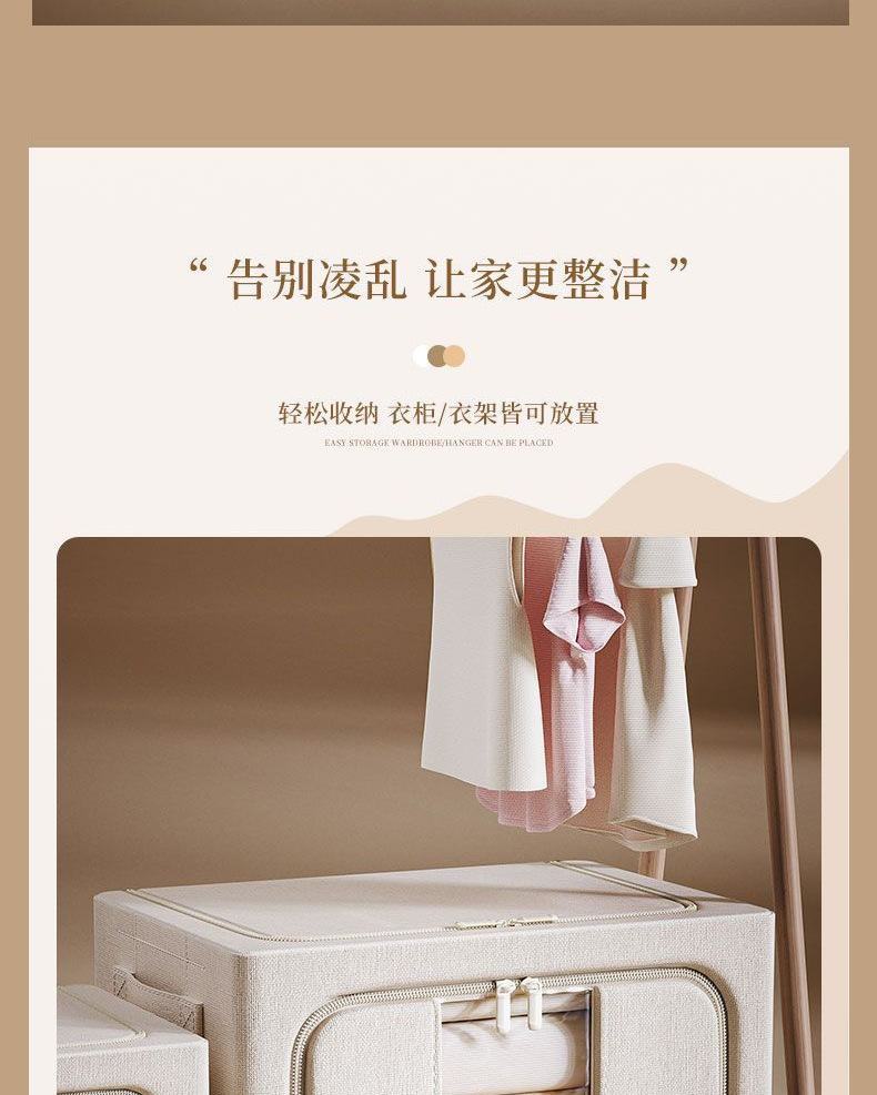 天山棉麻收纳箱5.0实心钢架可折叠家居收纳盒家用防尘布艺百纳箱