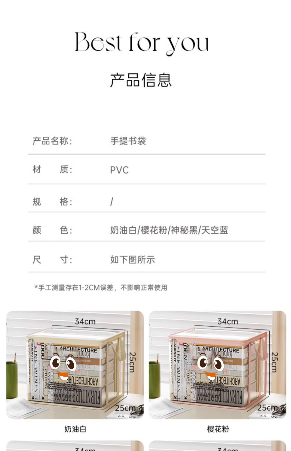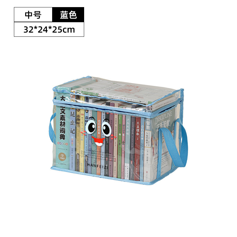 卡通书本收纳箱加厚PVC防水防尘课本收纳袋可折叠大号手提整理箱