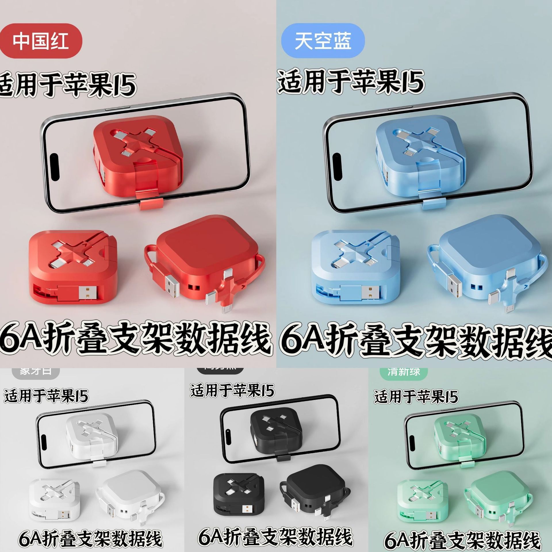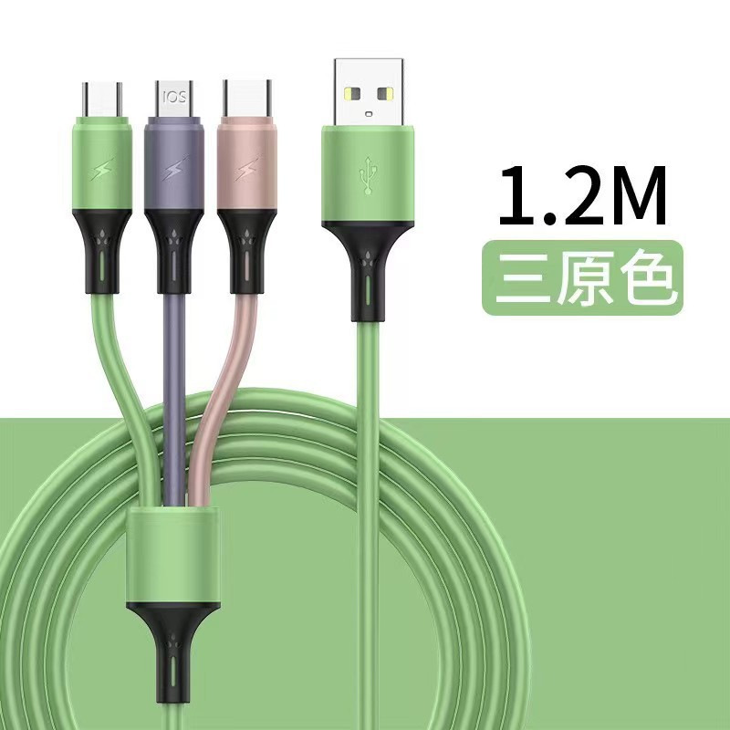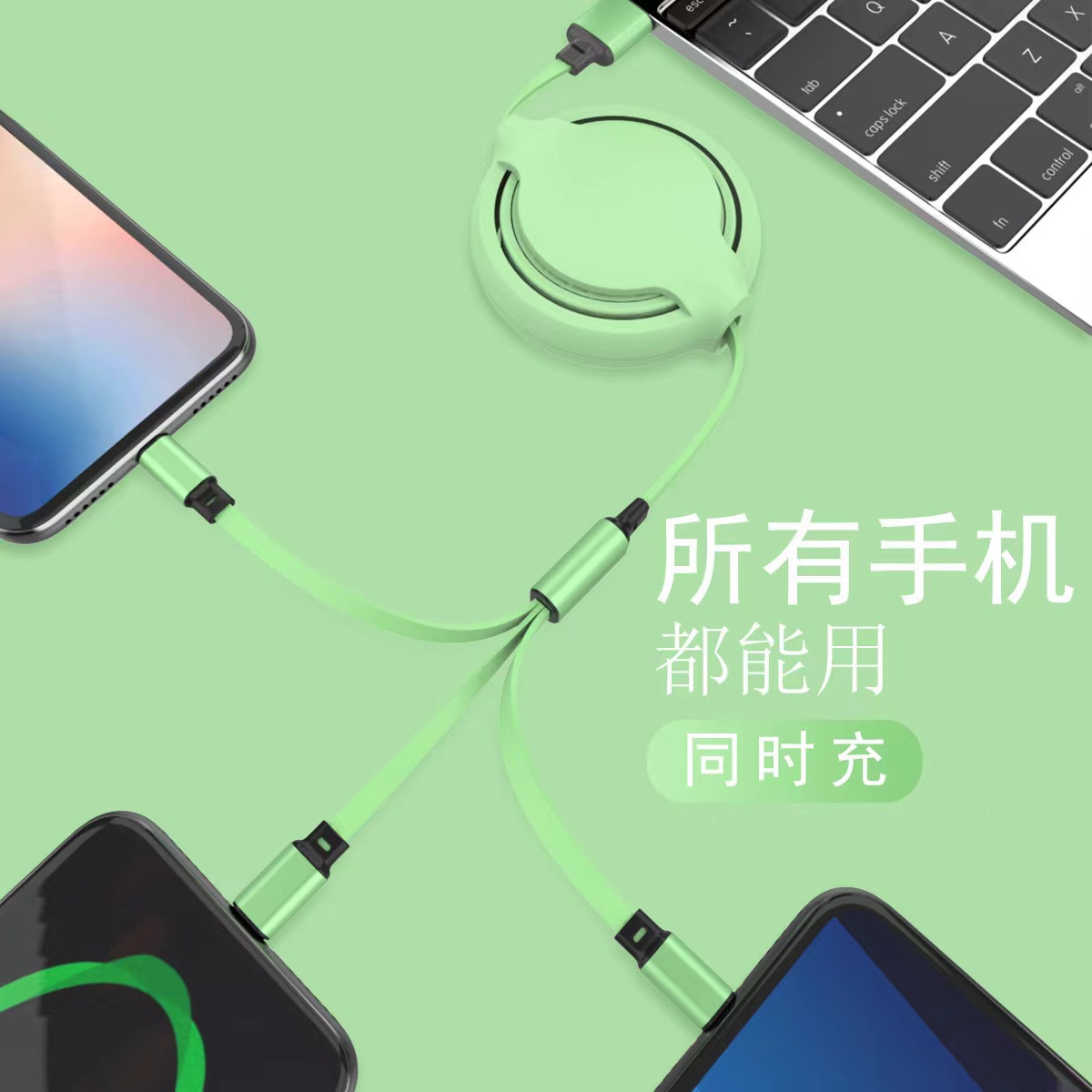 三合一硅胶数据线定制礼品logo马卡龙年快充伸缩广告一拖三充电线