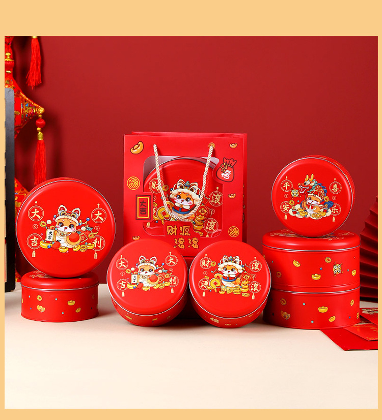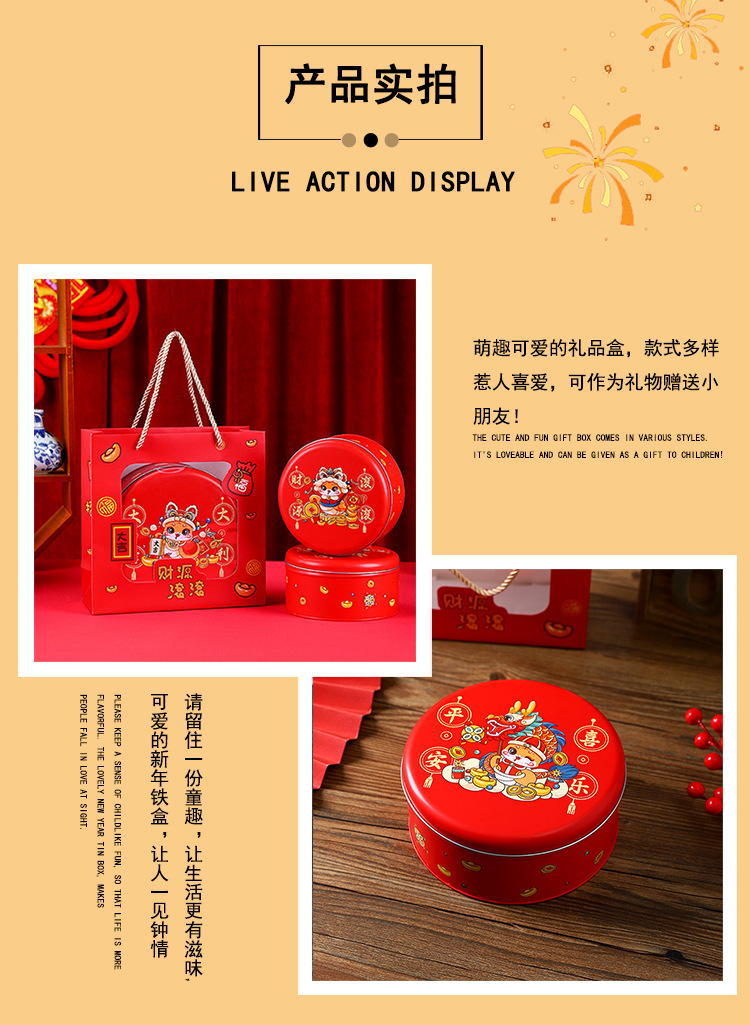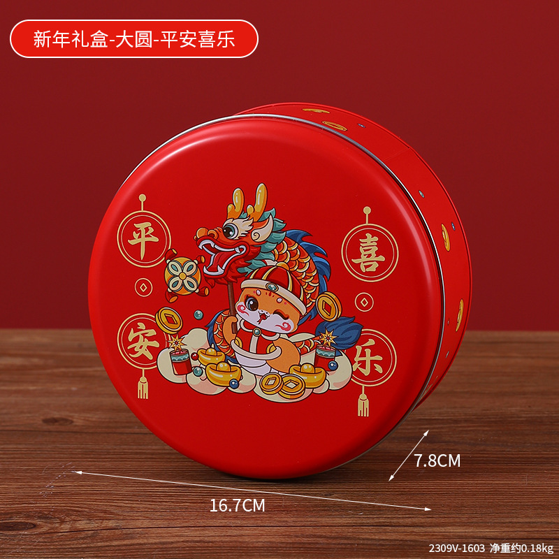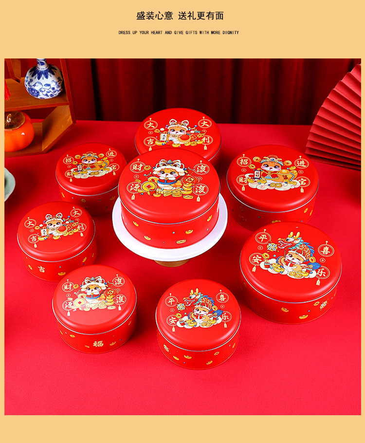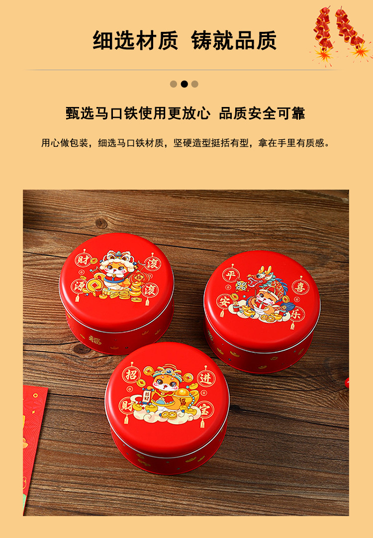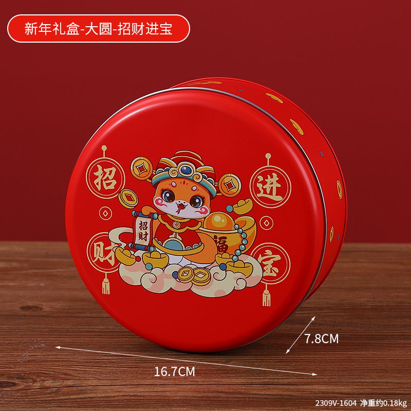 蛇年铁艺圆形礼品盒中国风结婚喜糖盒饼干坚果包装盒马口铁盒批发