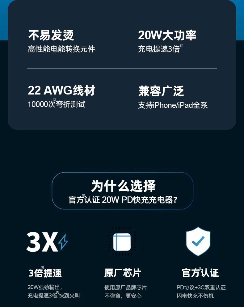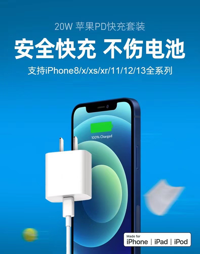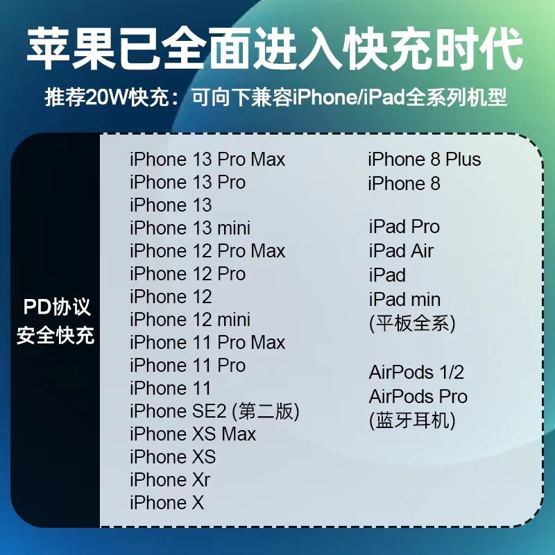 pd20w手机快充头适用于苹果1516充电器ipad套装pd数据线30w充电头