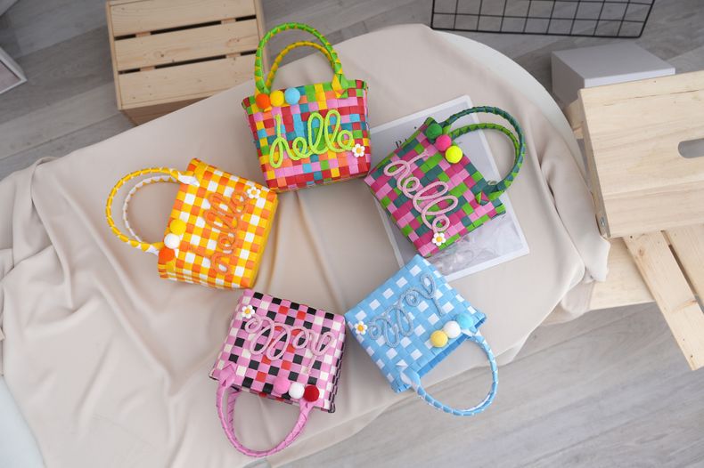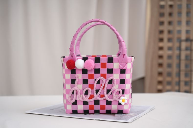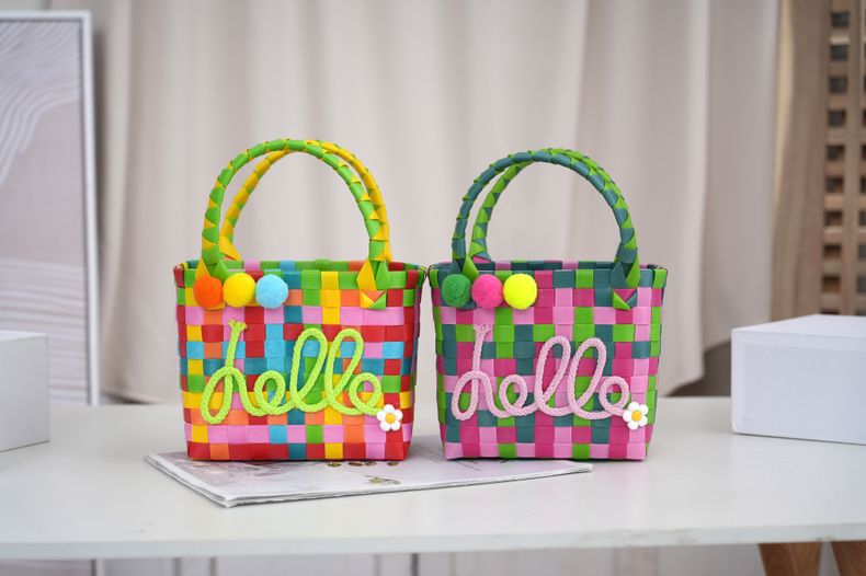 夏日手拎手工创意彩色编织篮字母款野餐小篮子婚礼伴手礼手提包