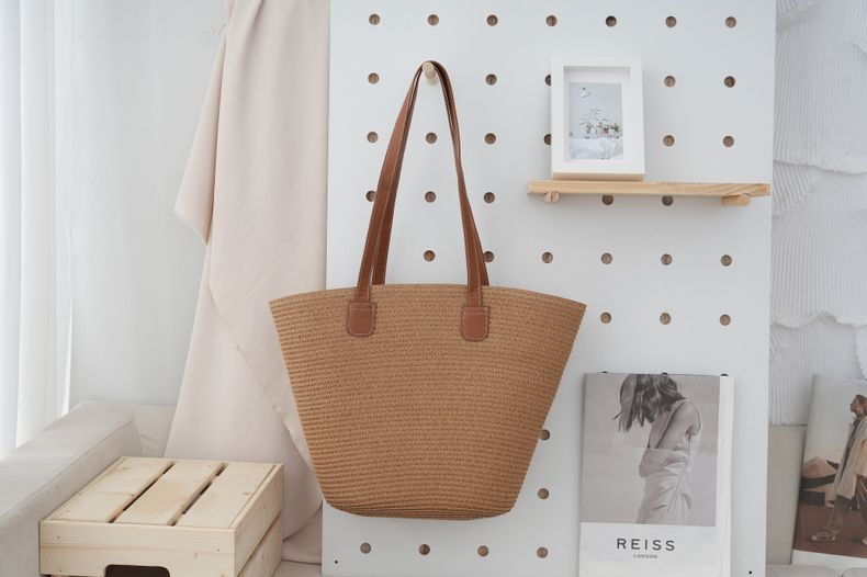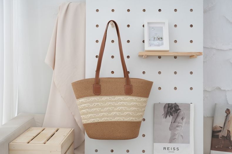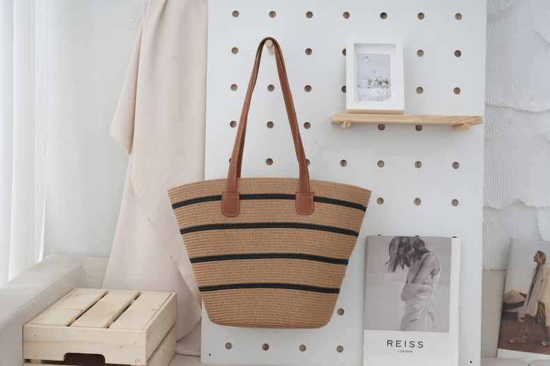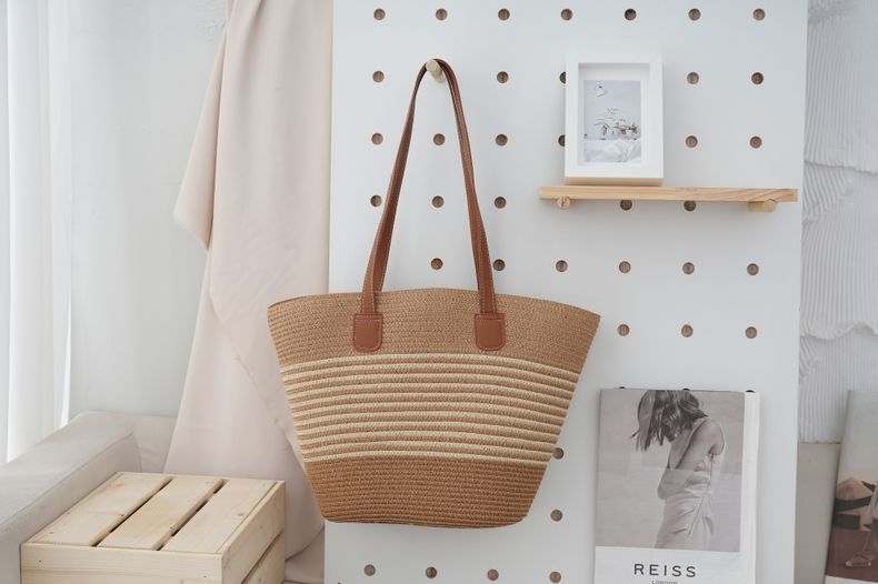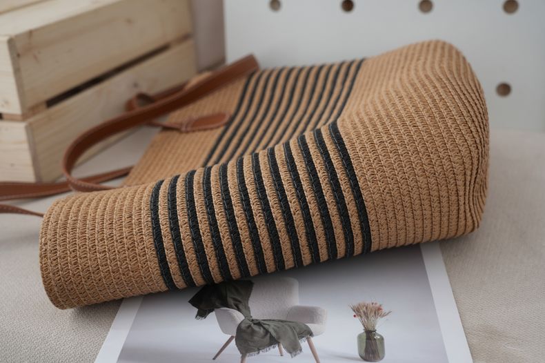 法式田园风棉绳编织包女夏大容量条纹单肩包菜篮子海边沙滩托特包