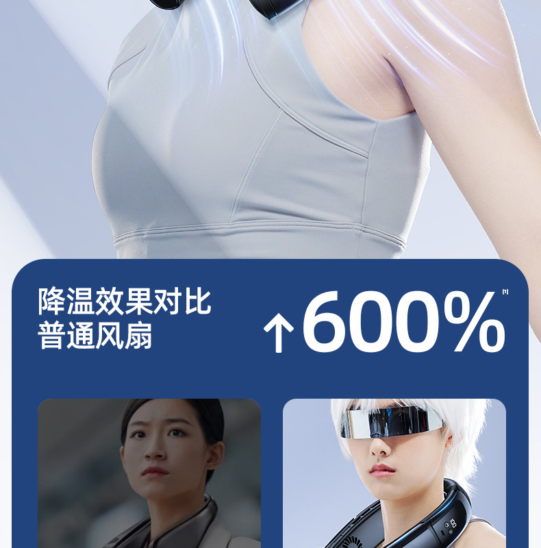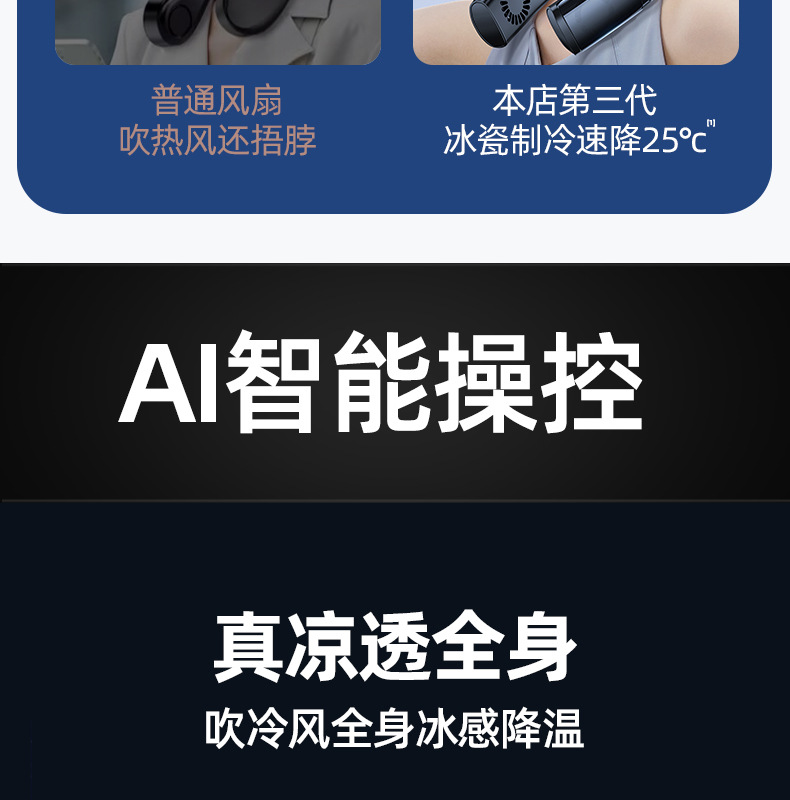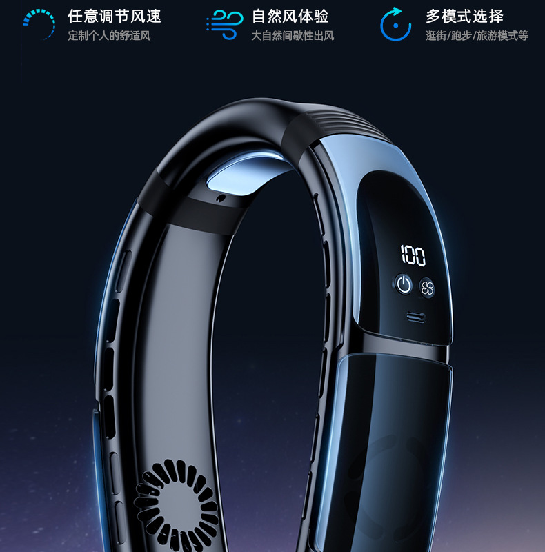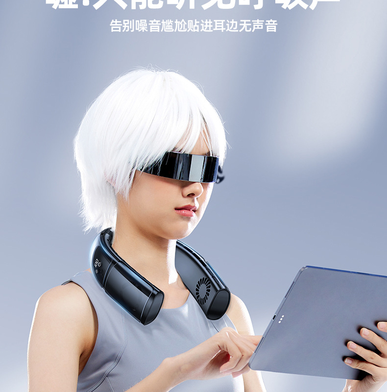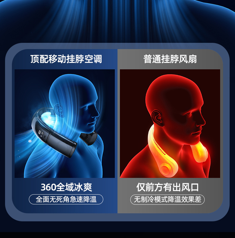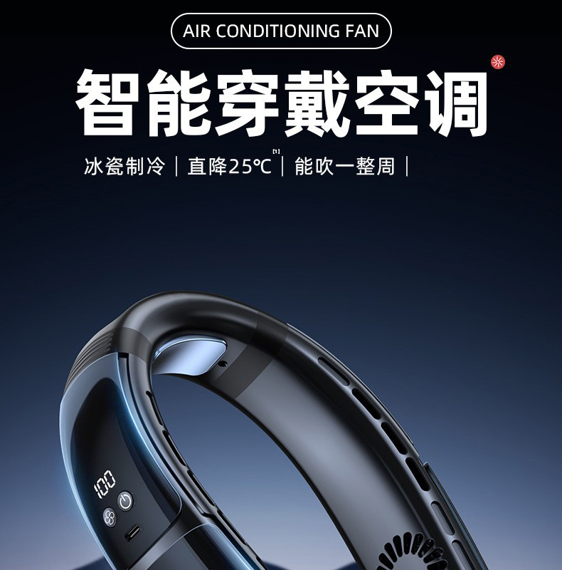 跨境新款制冷懒人挂脖小风扇空调智能半导体便携随身usb充电款