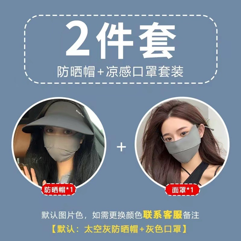 空顶防晒帽女夏无痕一体防紫外线遮阳帽口罩面罩2024新款太阳帽子
