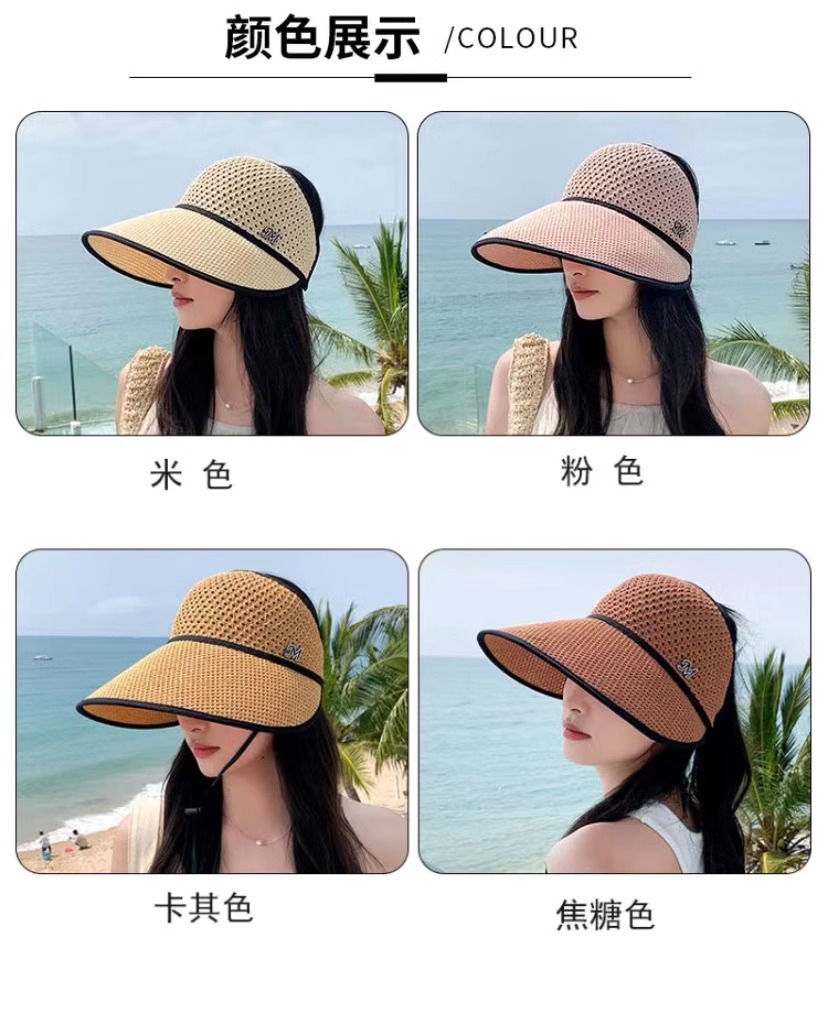夏天中老年人帽子女士妈妈遮阳帽遮脸防晒夏季薄款大檐空顶太阳帽