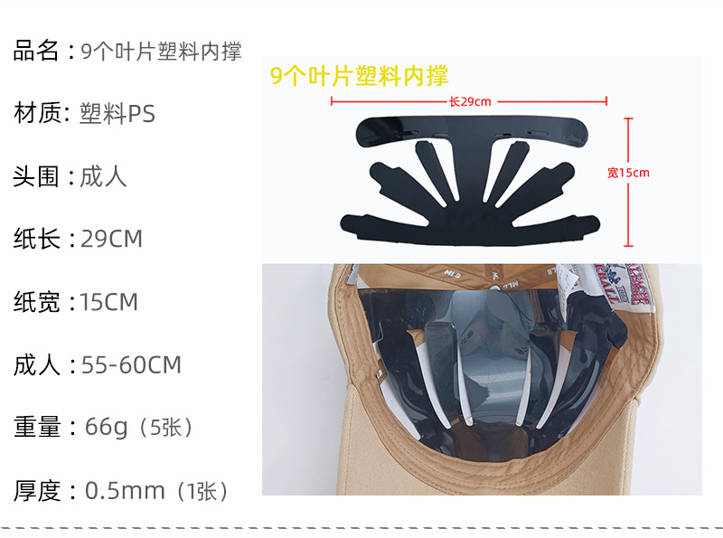 成人棒球帽防变形鸭舌帽内撑大帽檐拍摄道具帽托帽子帽撑九片塑料