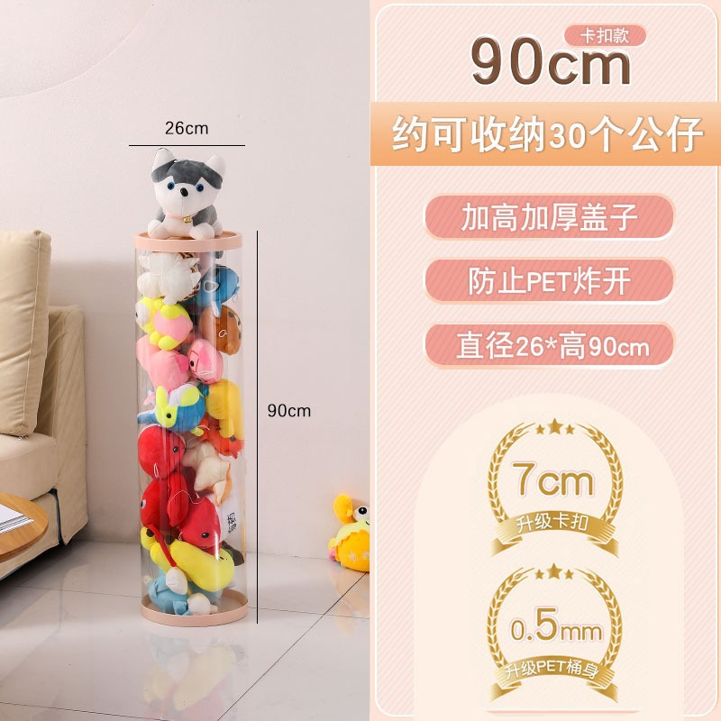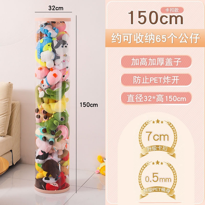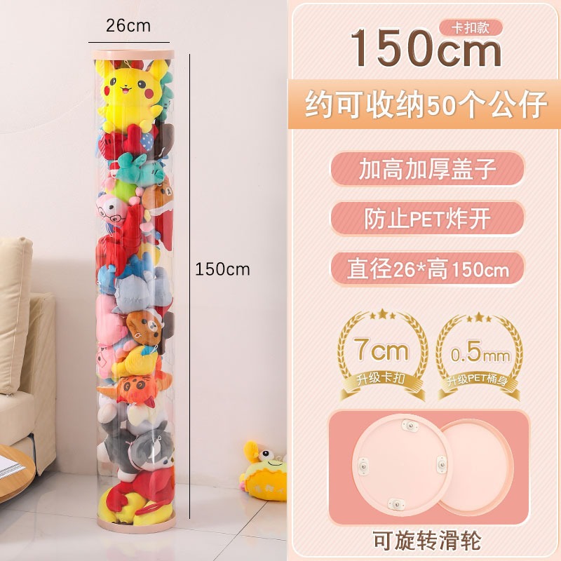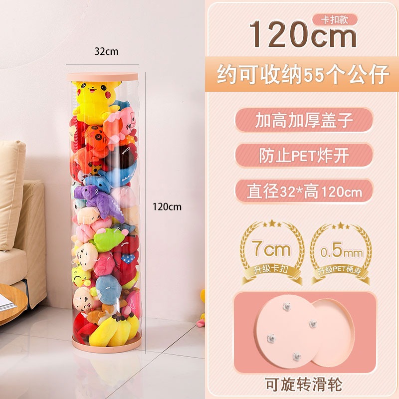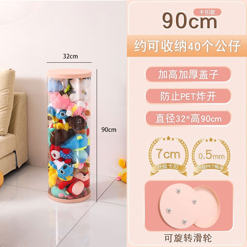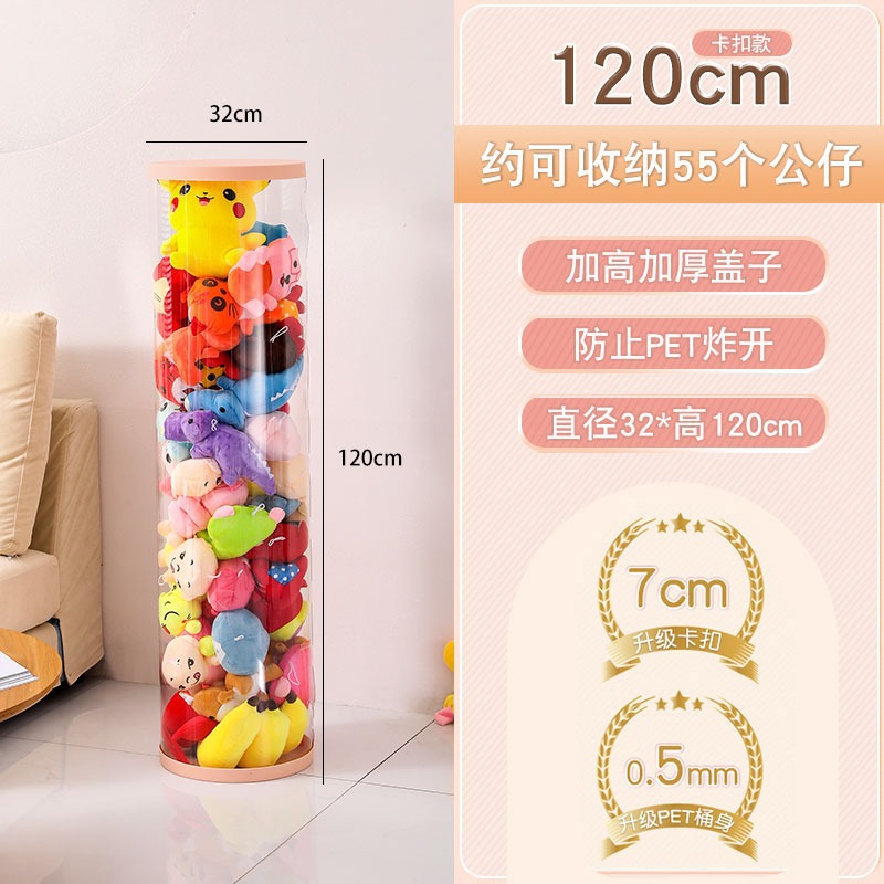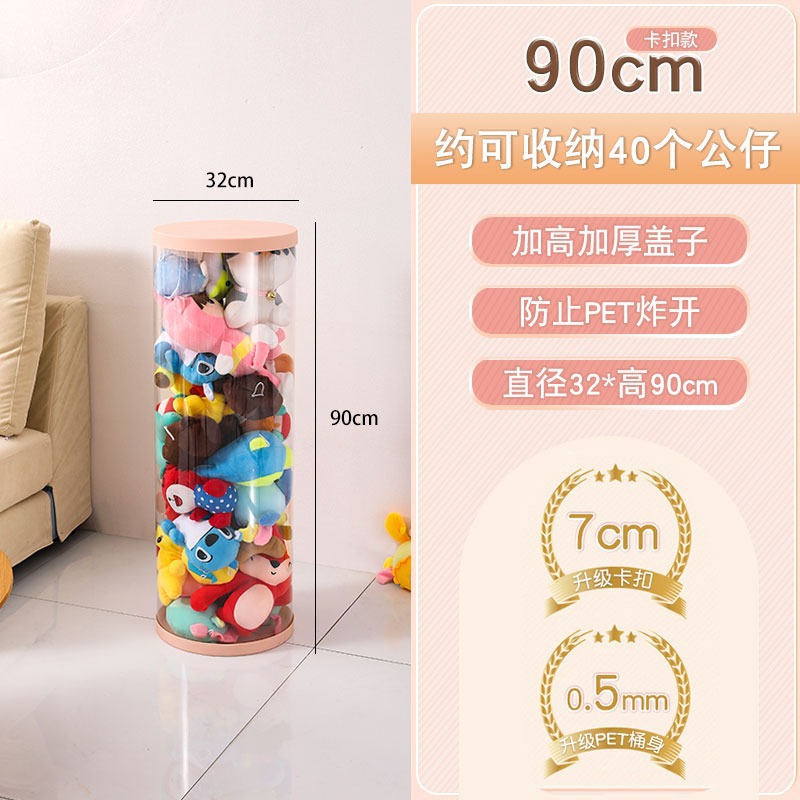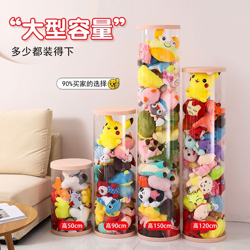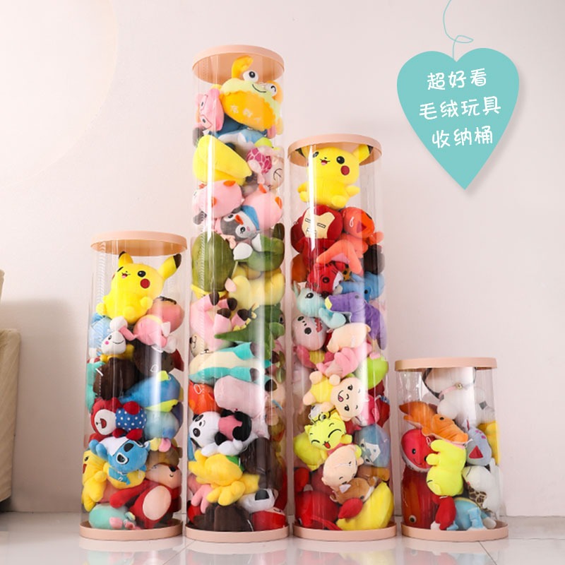 娃娃收纳桶收纳桶毛绒玩具收纳透明圆柱儿童公仔玩偶筒整理箱