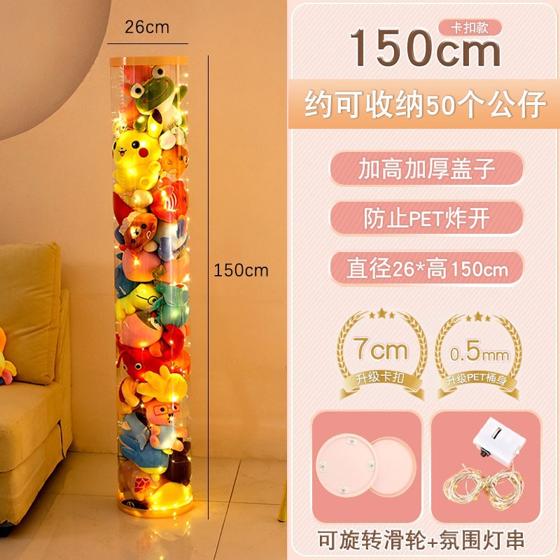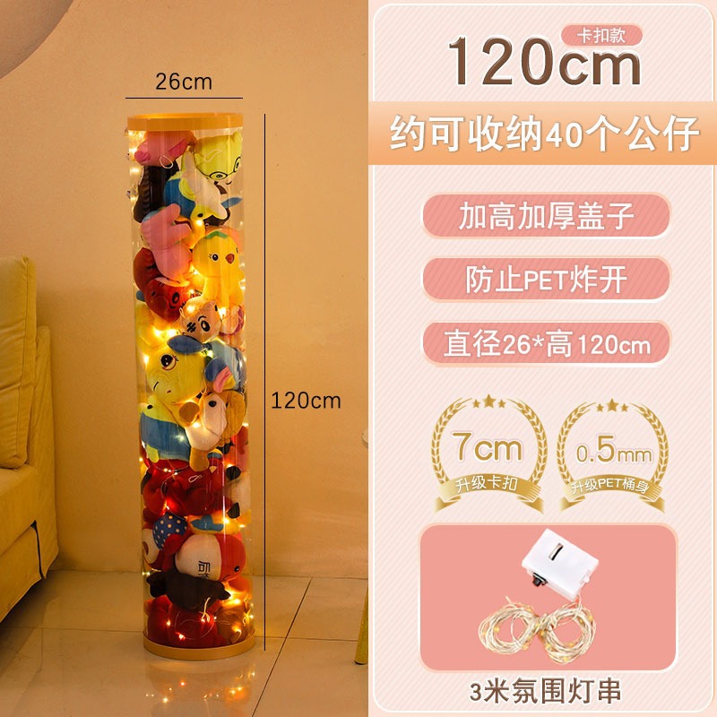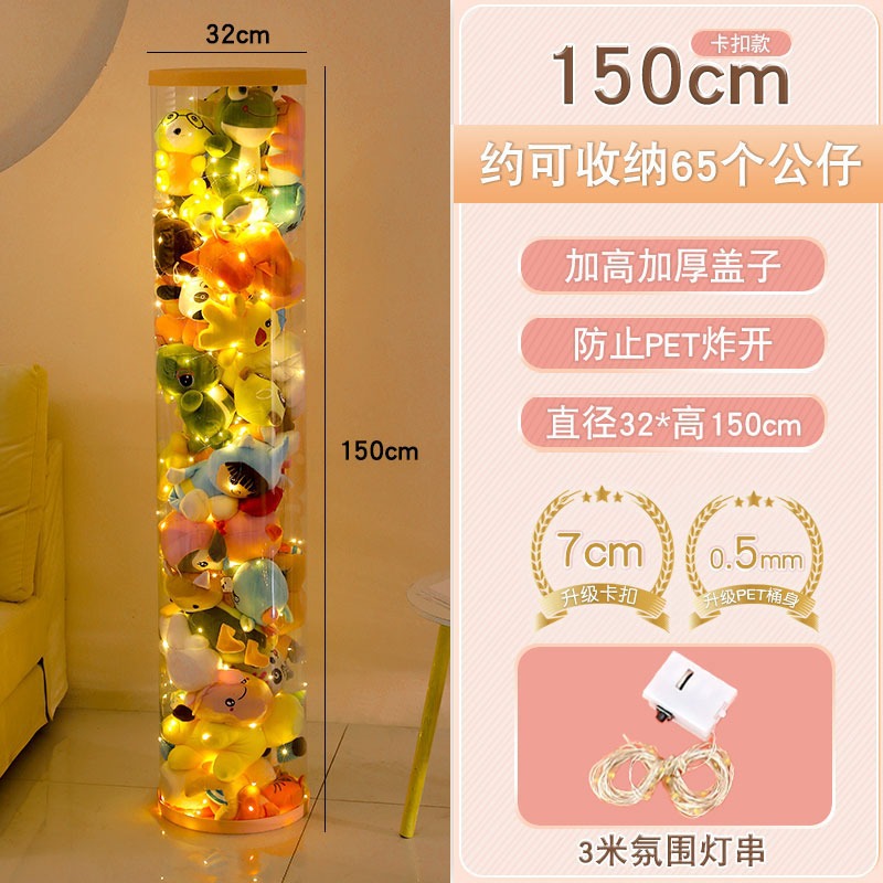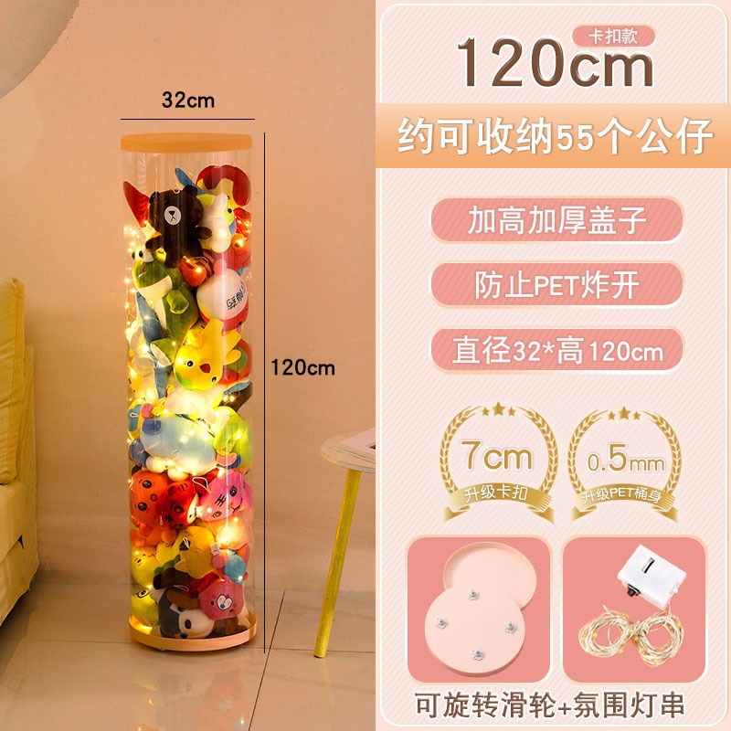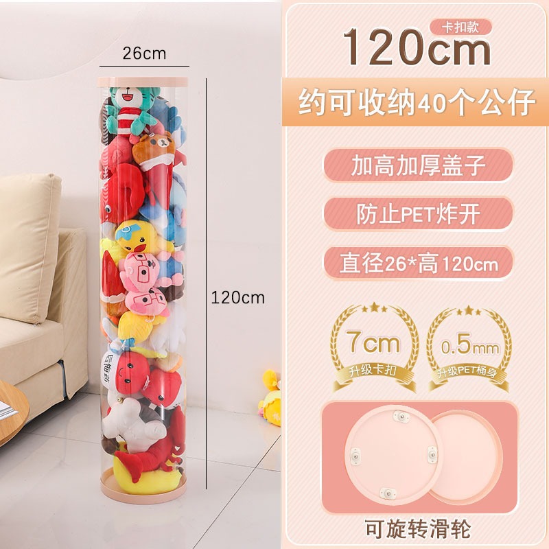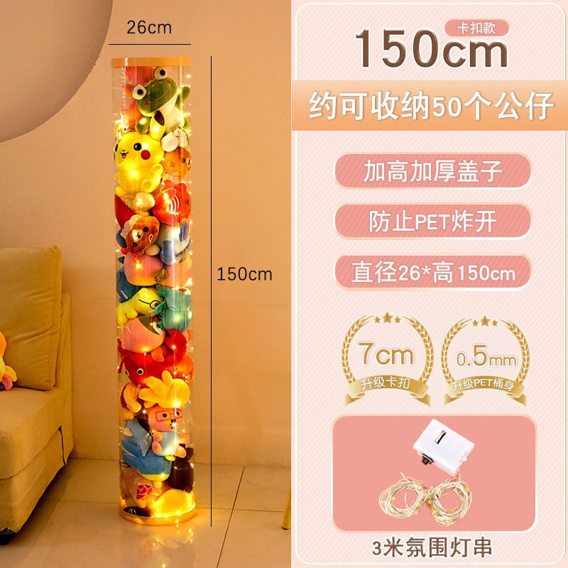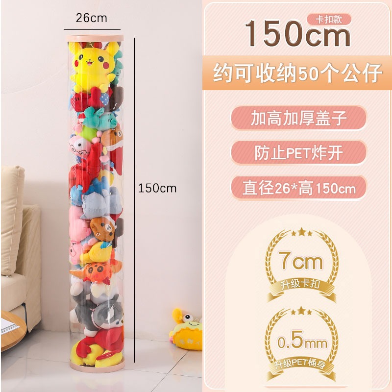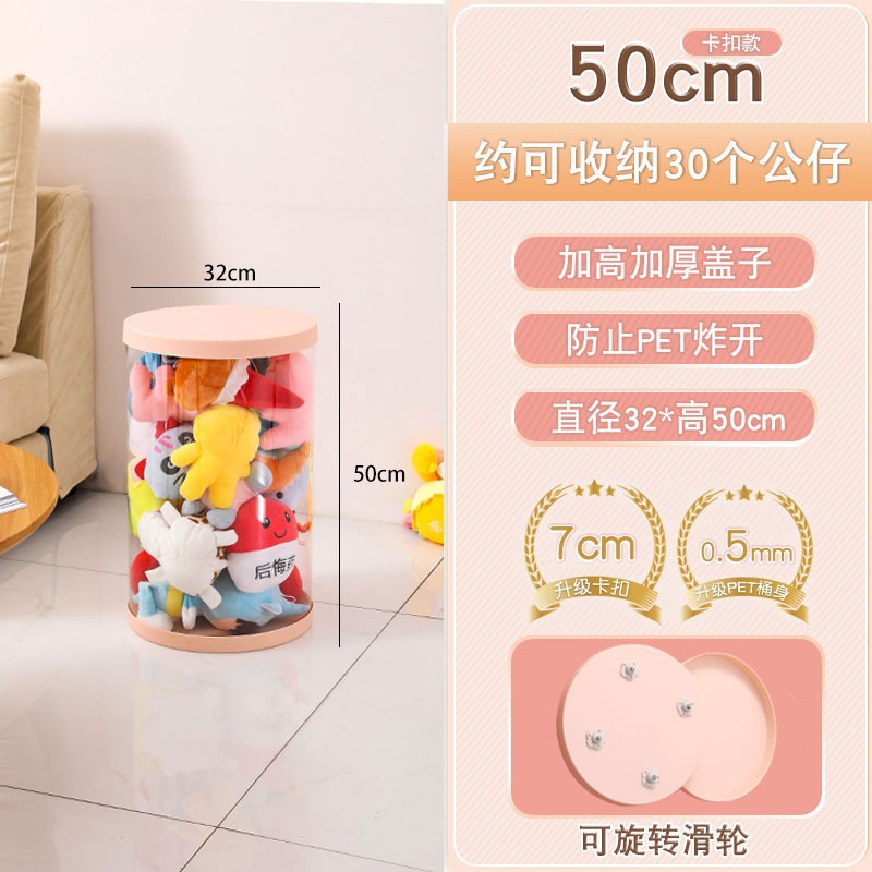 娃娃收纳桶收纳桶毛绒玩具收纳透明圆柱儿童公仔玩偶筒整理箱