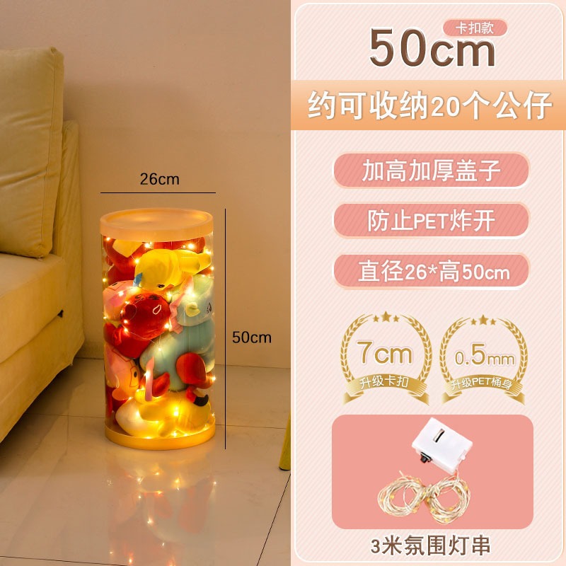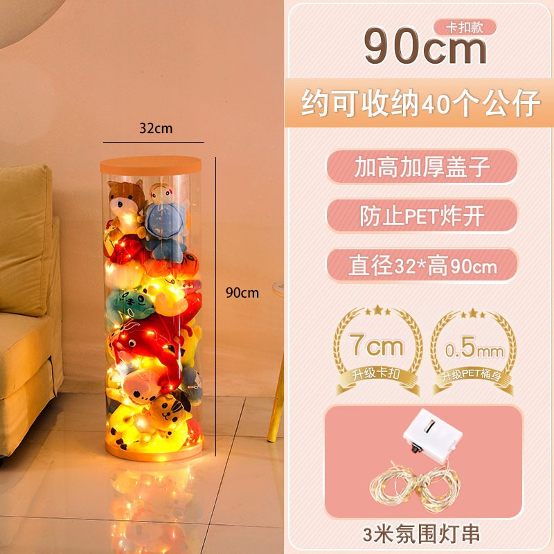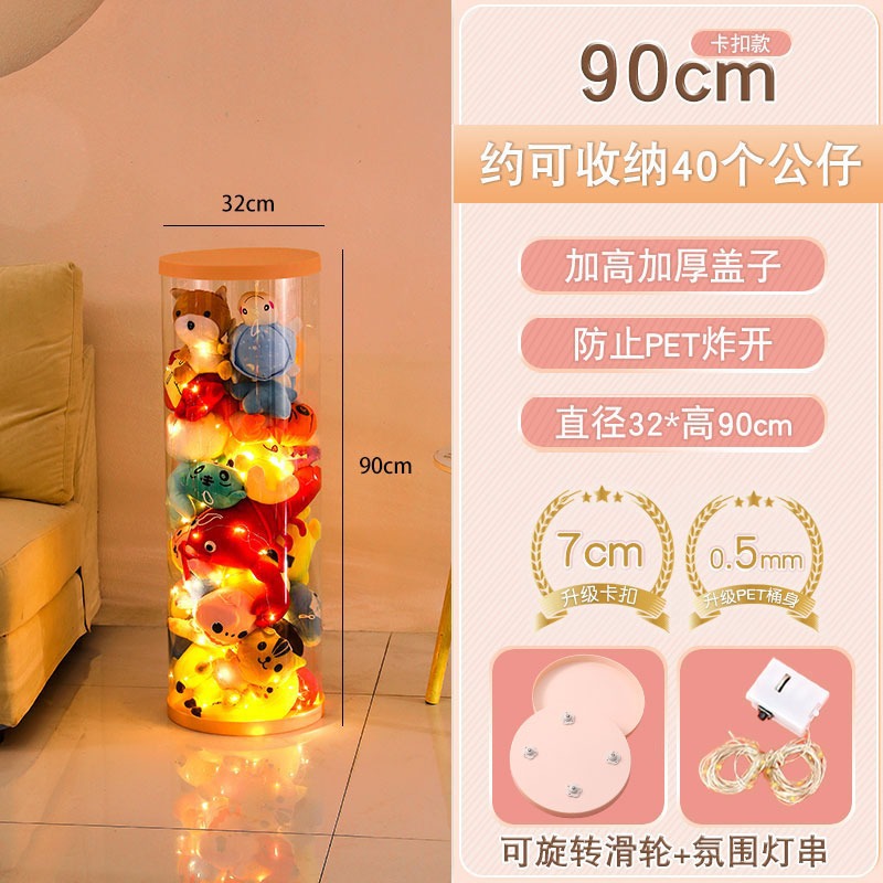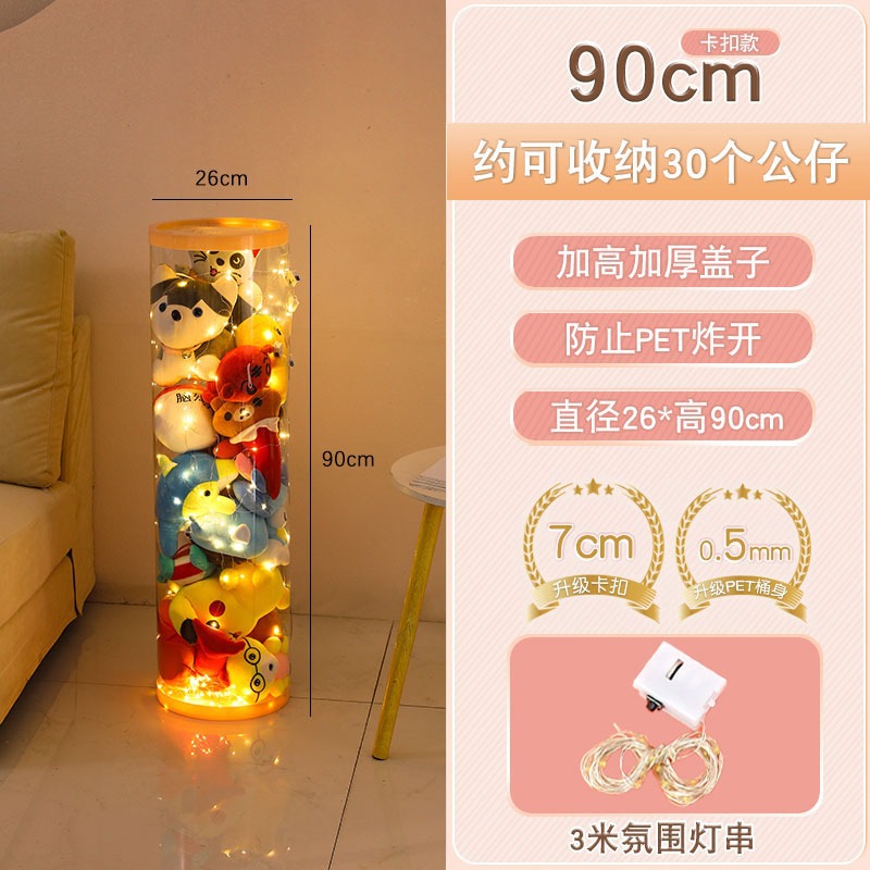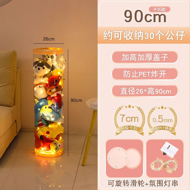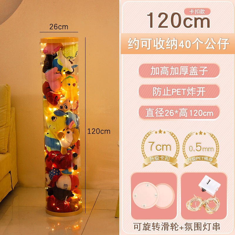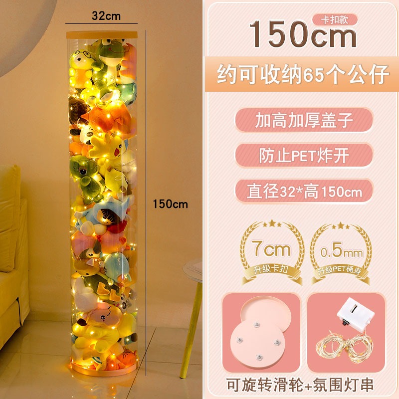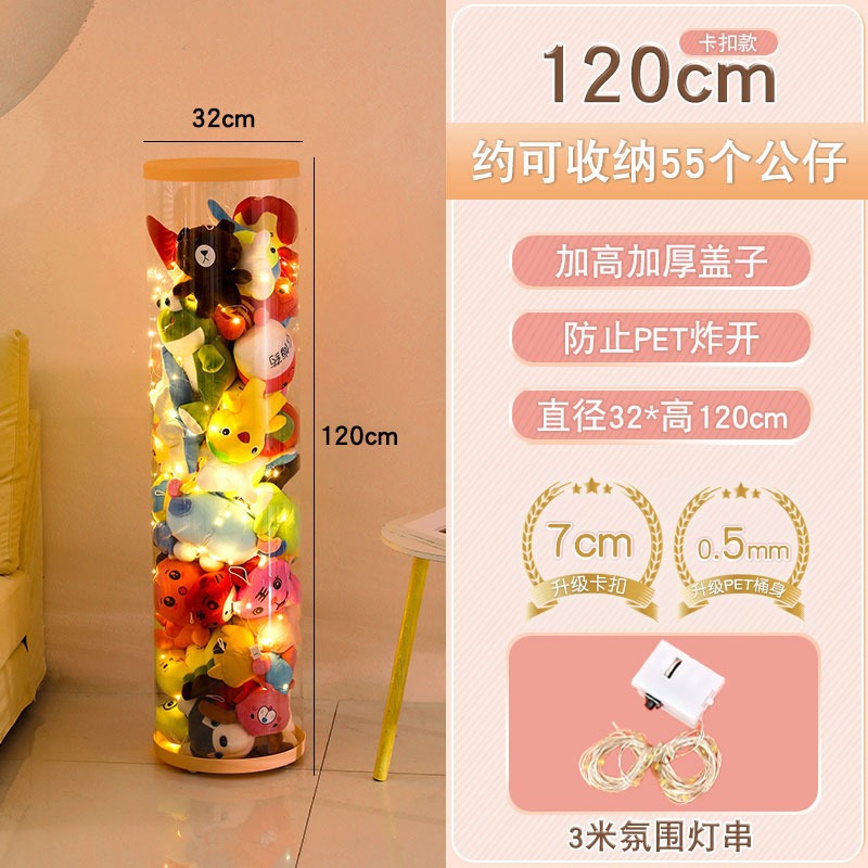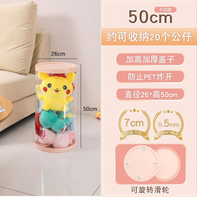 娃娃收纳桶收纳桶毛绒玩具收纳透明圆柱儿童公仔玩偶筒整理箱