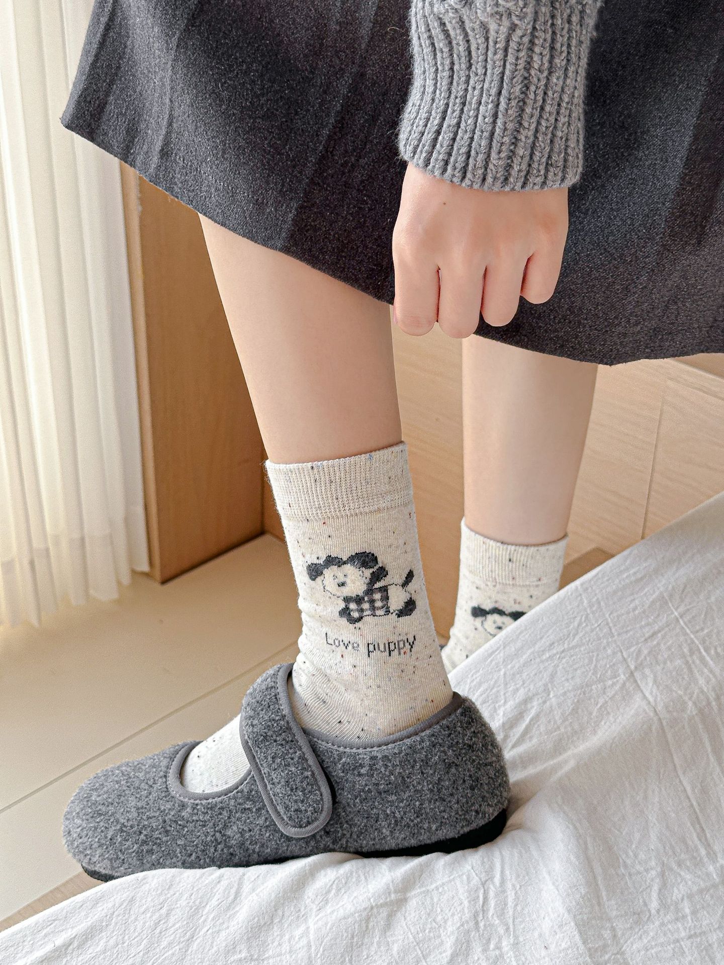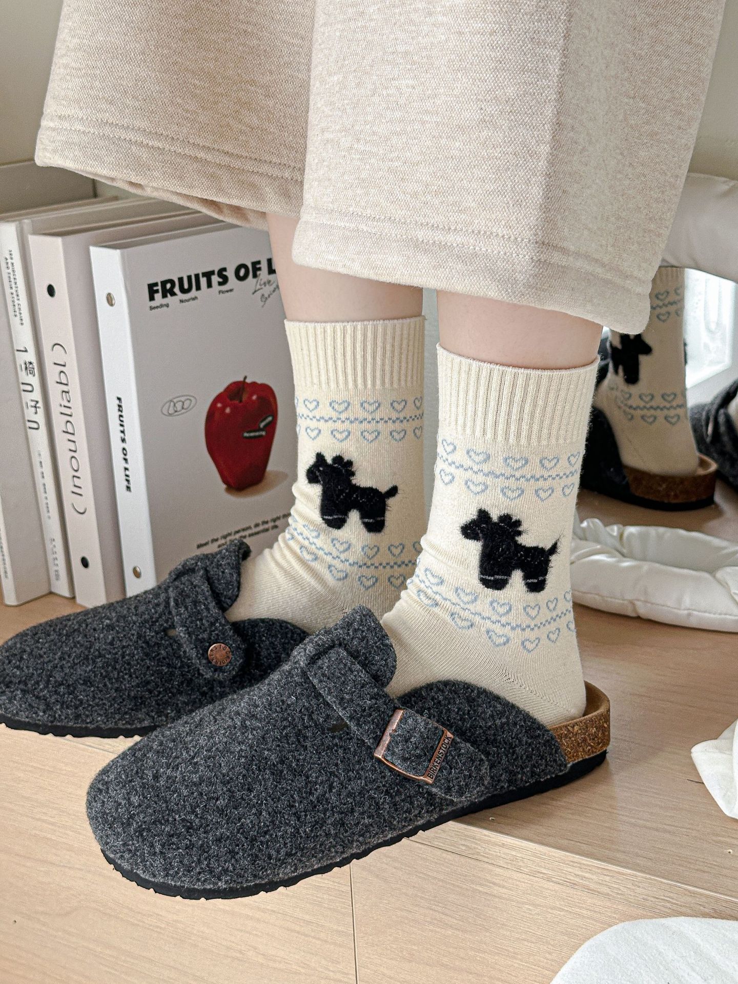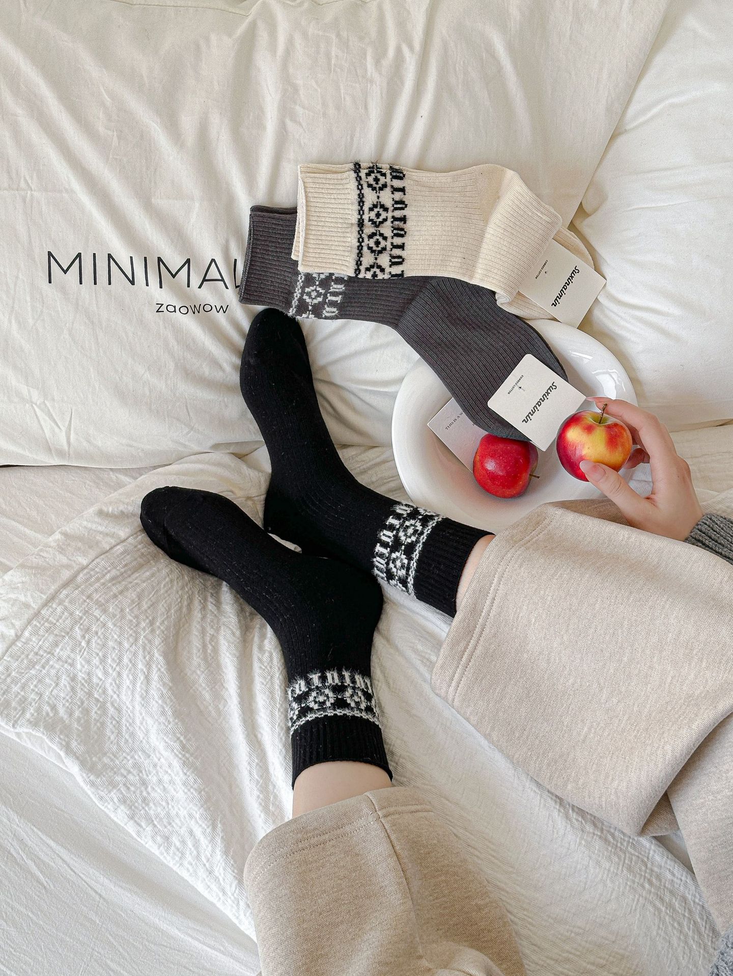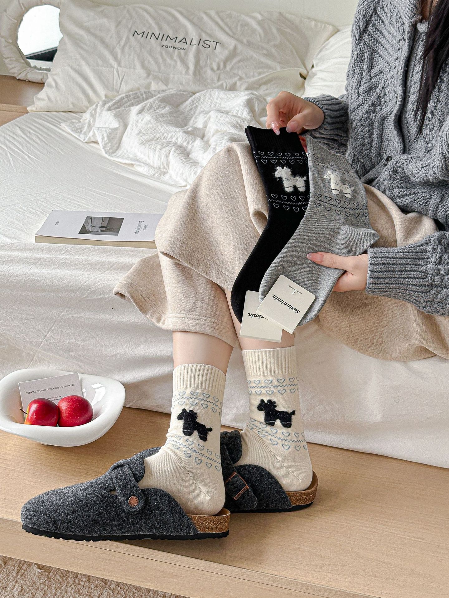 韩版刺绣爱心灰色袜子中筒袜蓝丝带蝴蝶结甜美堆堆袜miu系少女袜