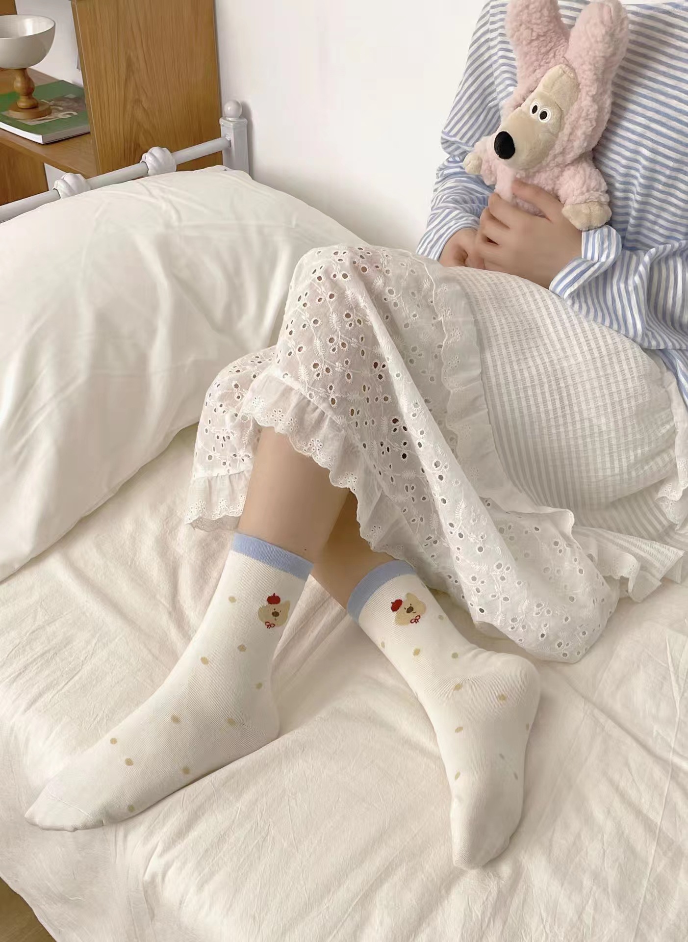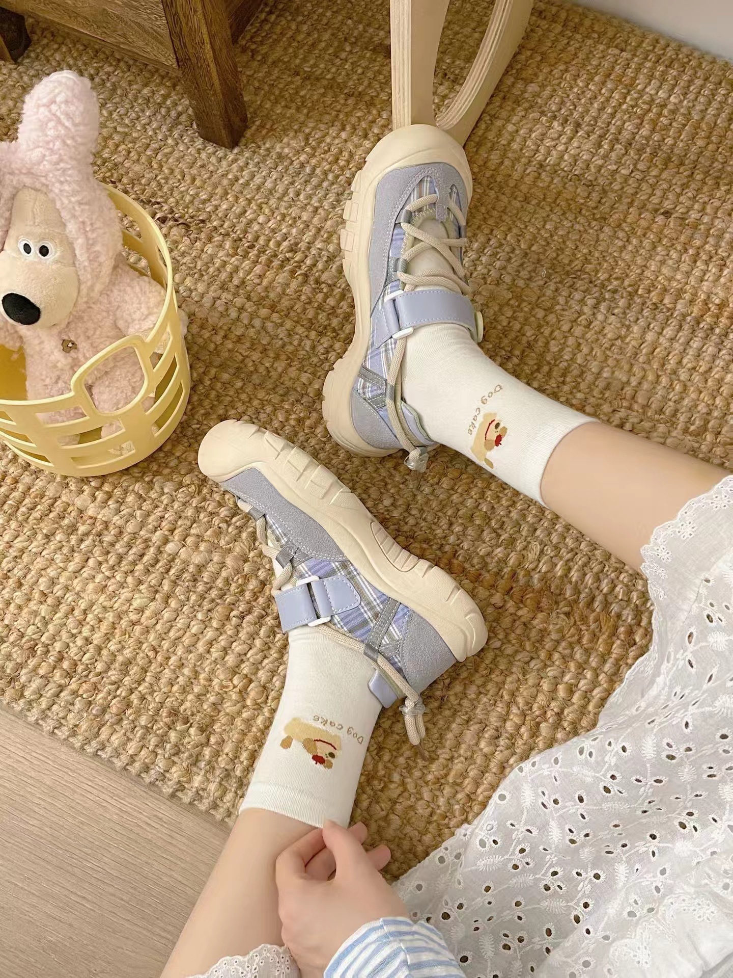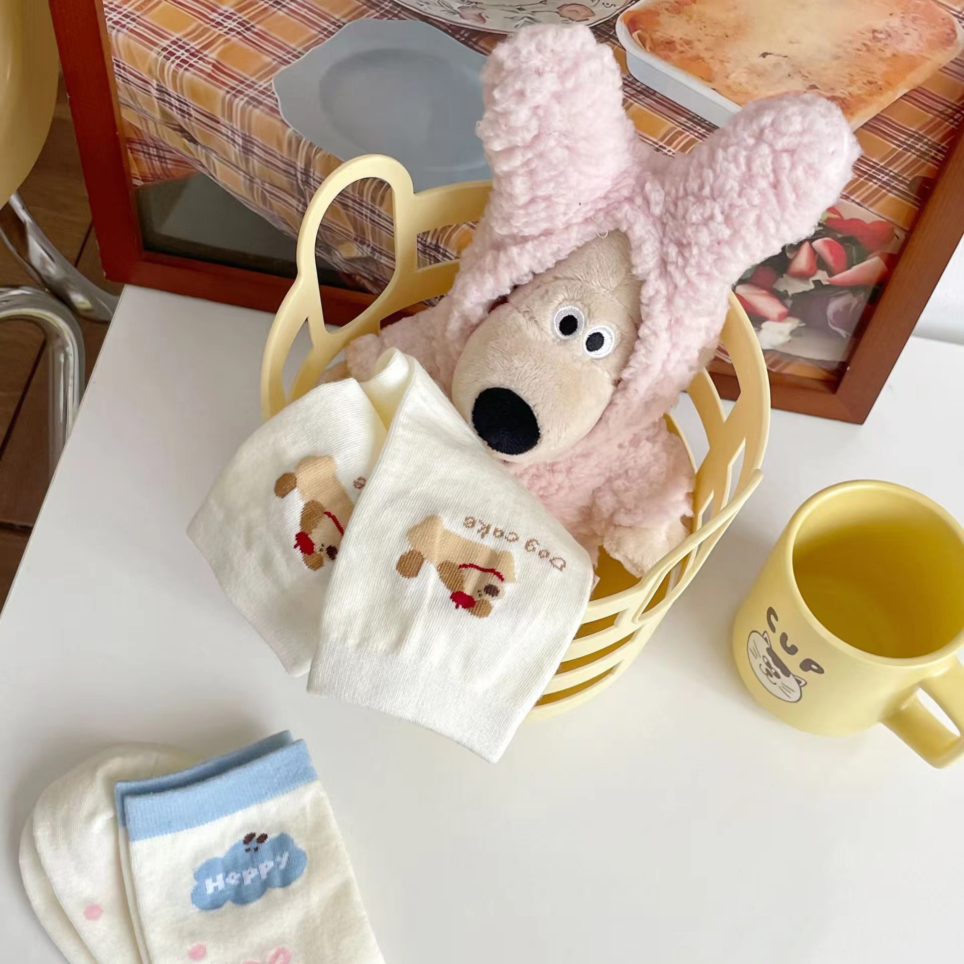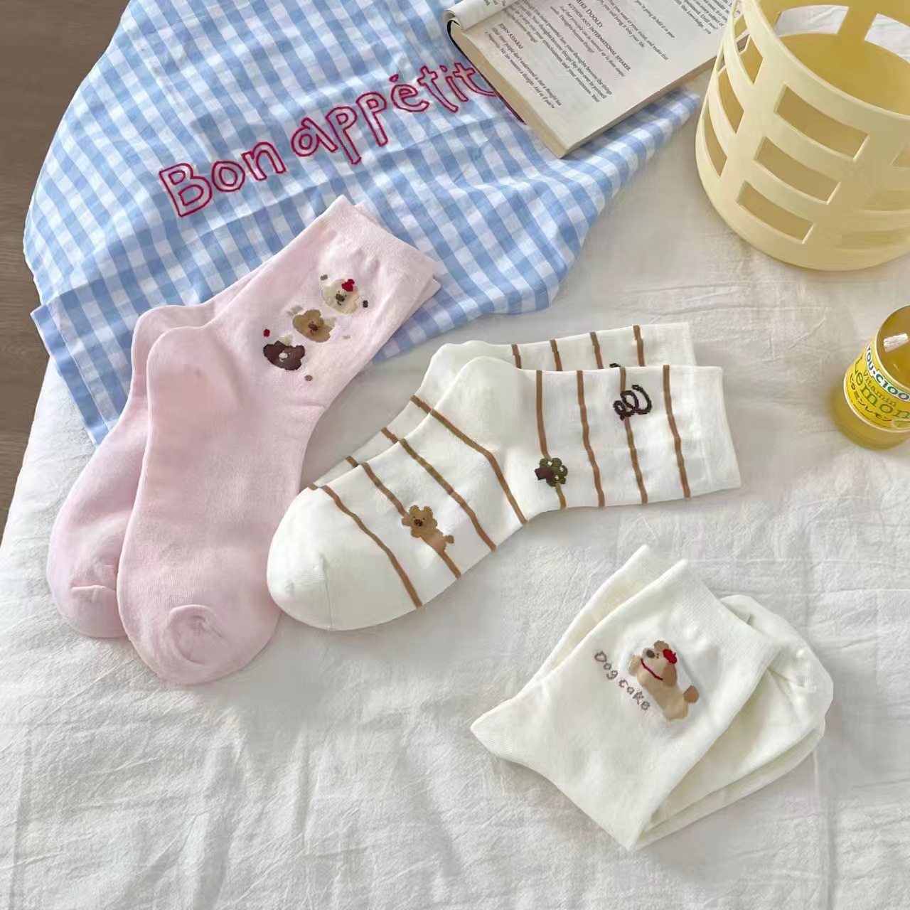 卡通袜子女中筒袜ins潮早秋季日系可爱学院风蝴蝶结小狗条纹长袜