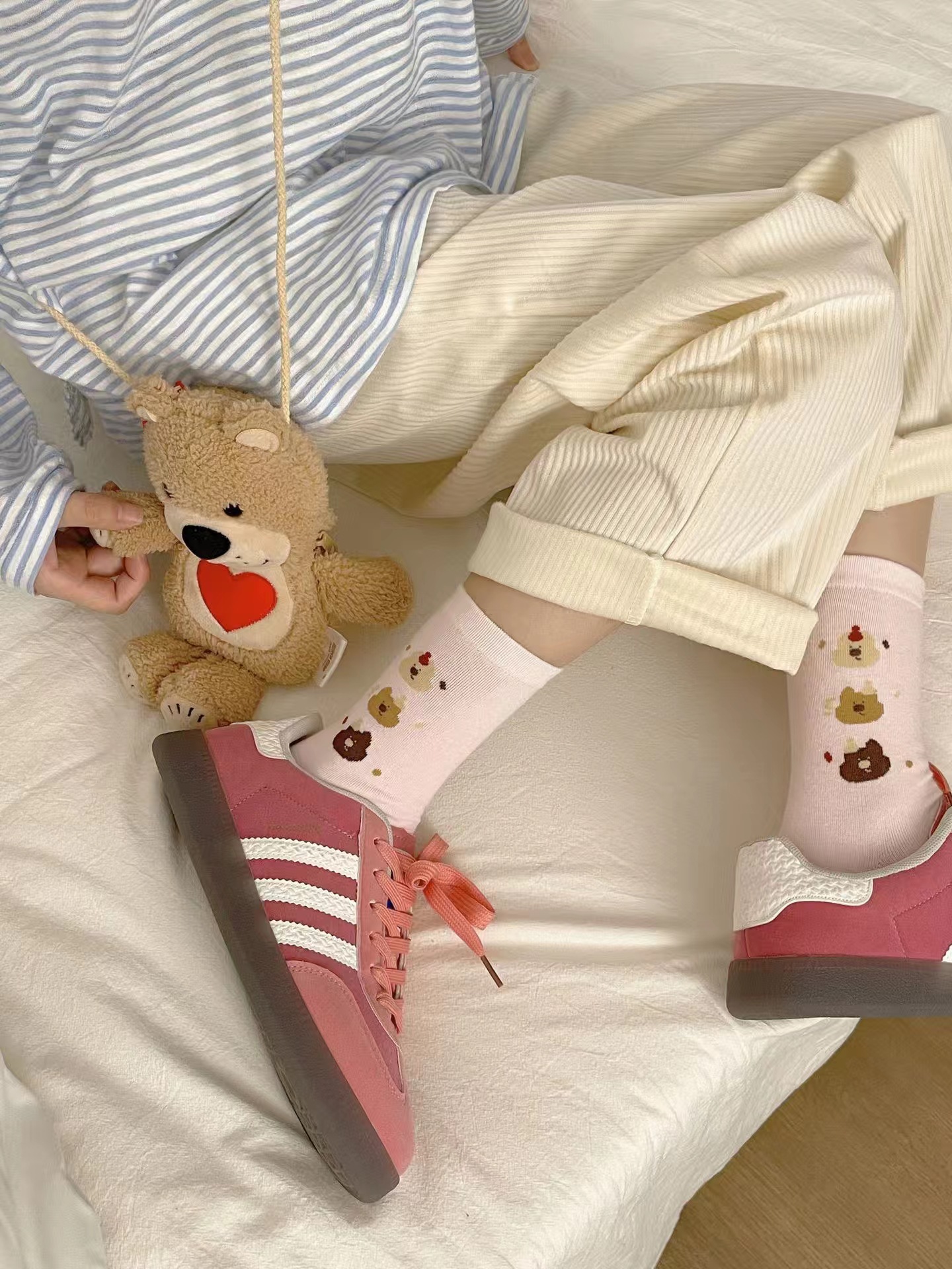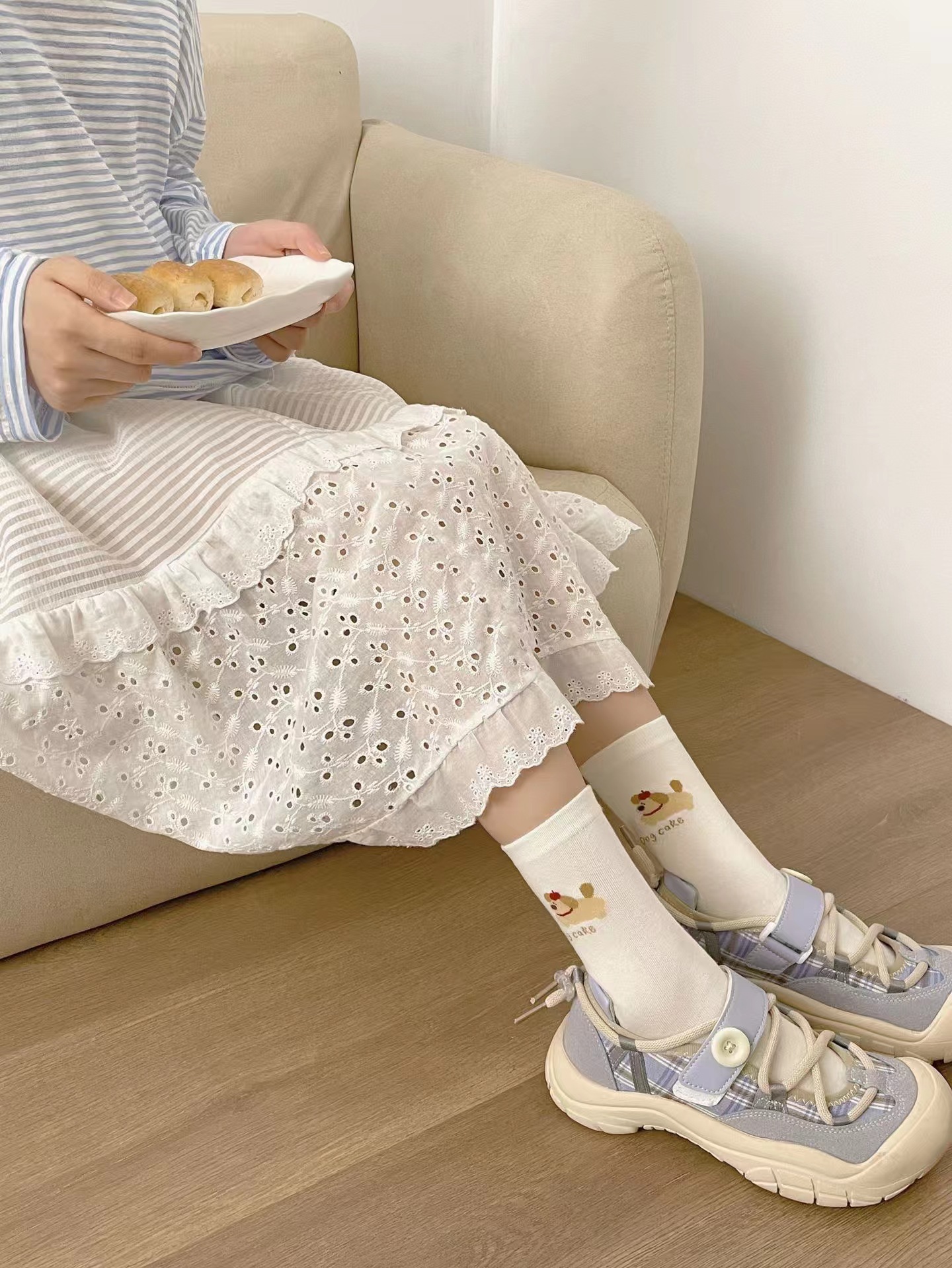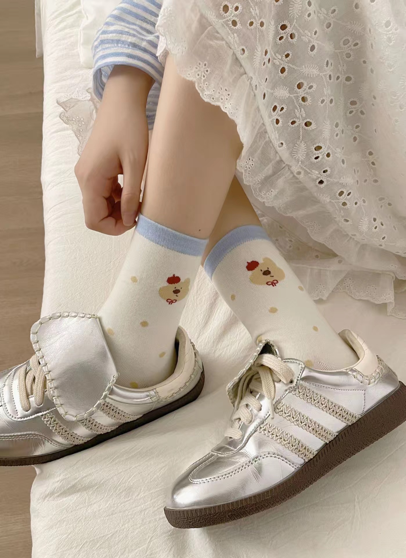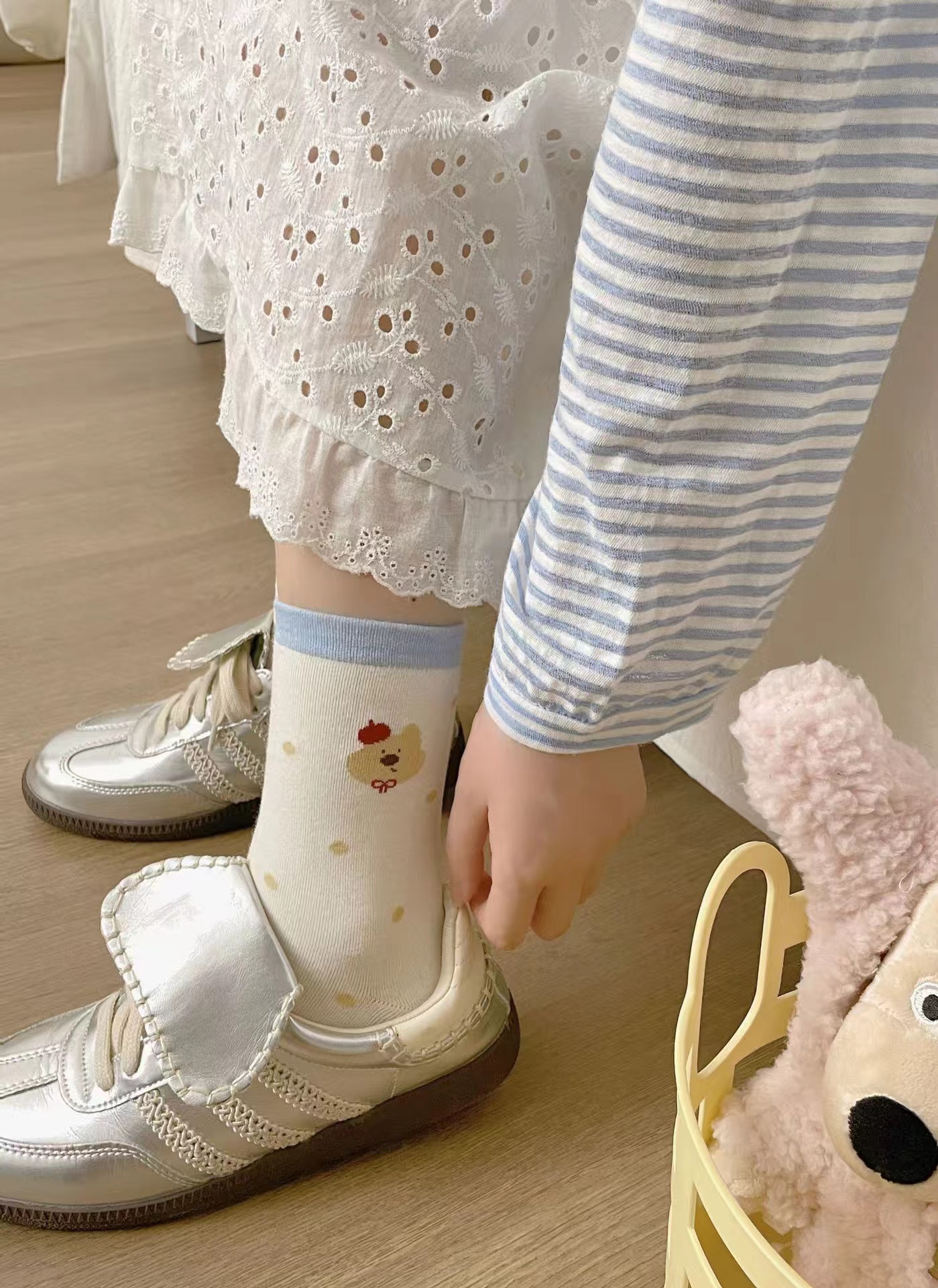 卡通袜子女中筒袜ins潮早秋季日系可爱学院风蝴蝶结小狗条纹长袜