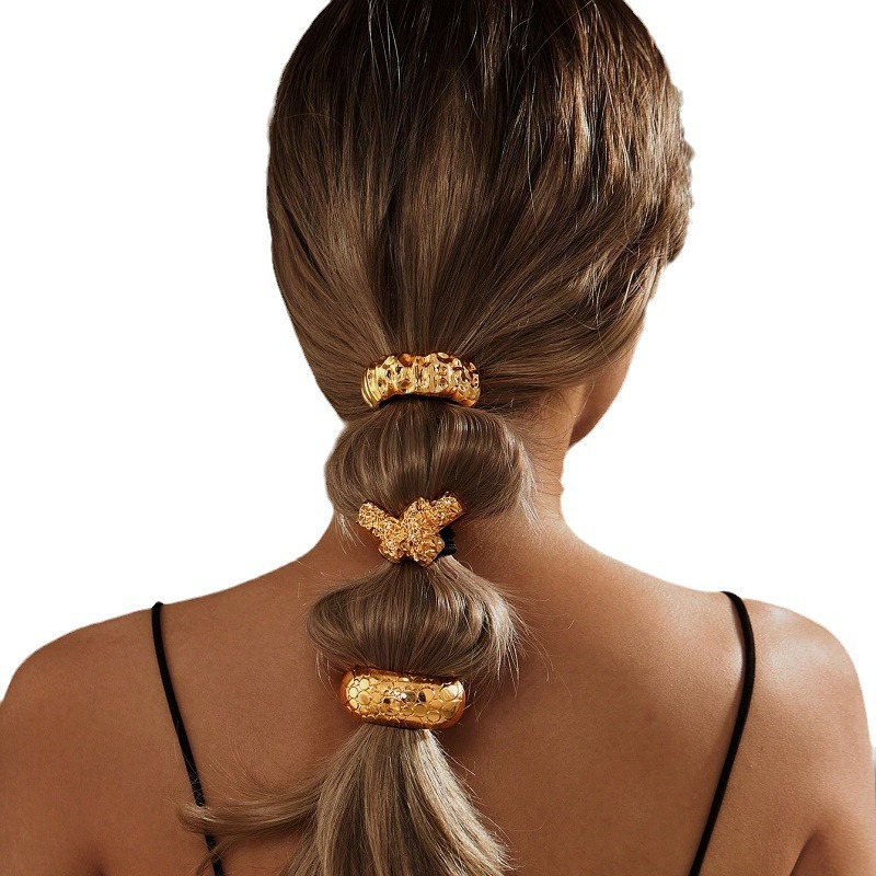 欧美跨境不规则金属发绳气质头饰发饰盘发弹力皮筋头绳