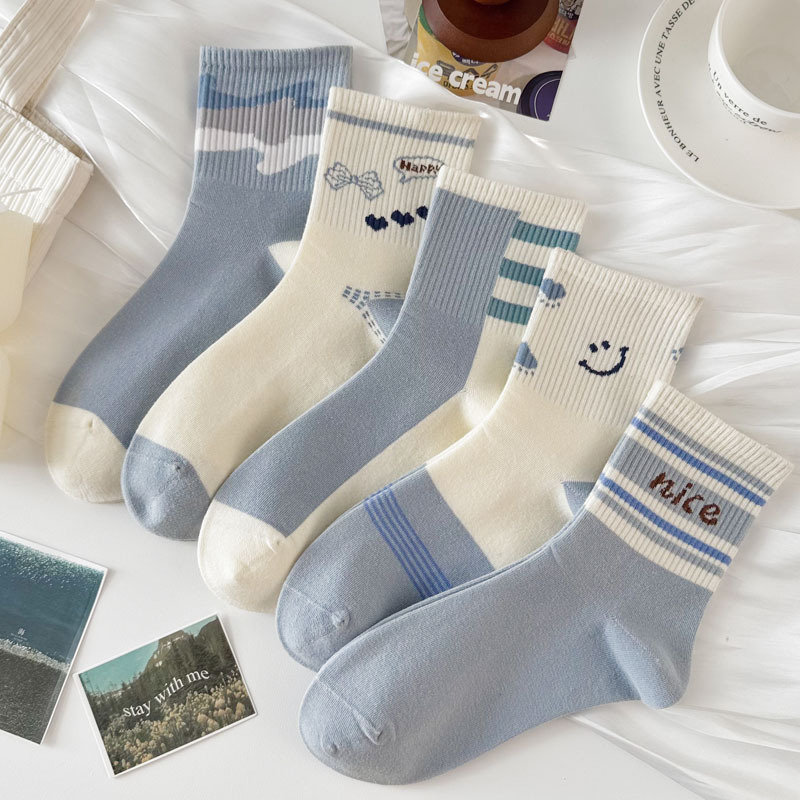春秋袜子女中筒袜ins潮高颜值卡通可爱女士长袜学院风秋冬咖色