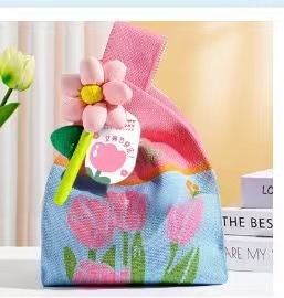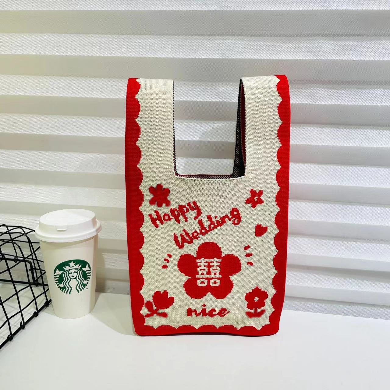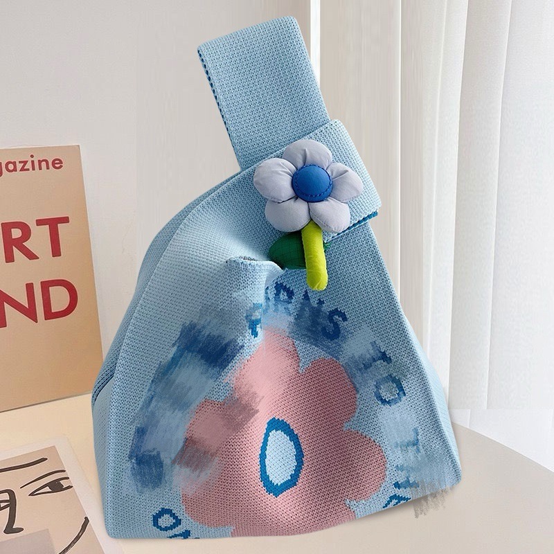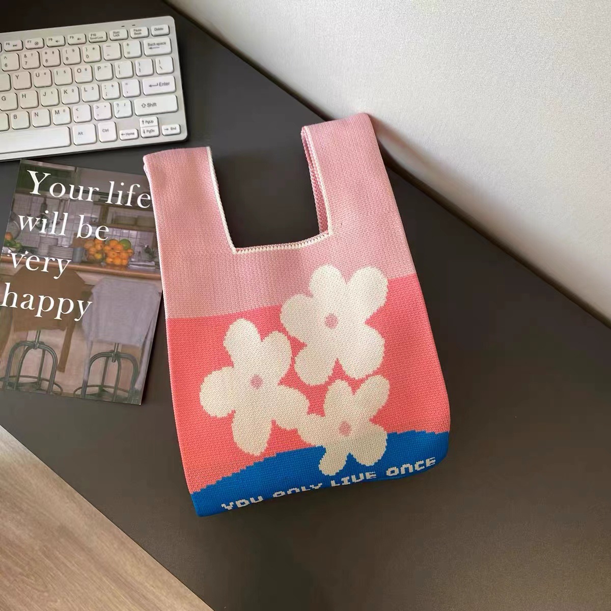 ins春季花朵女包针织手提包百搭针织包手腕包单肩水桶包托特包包