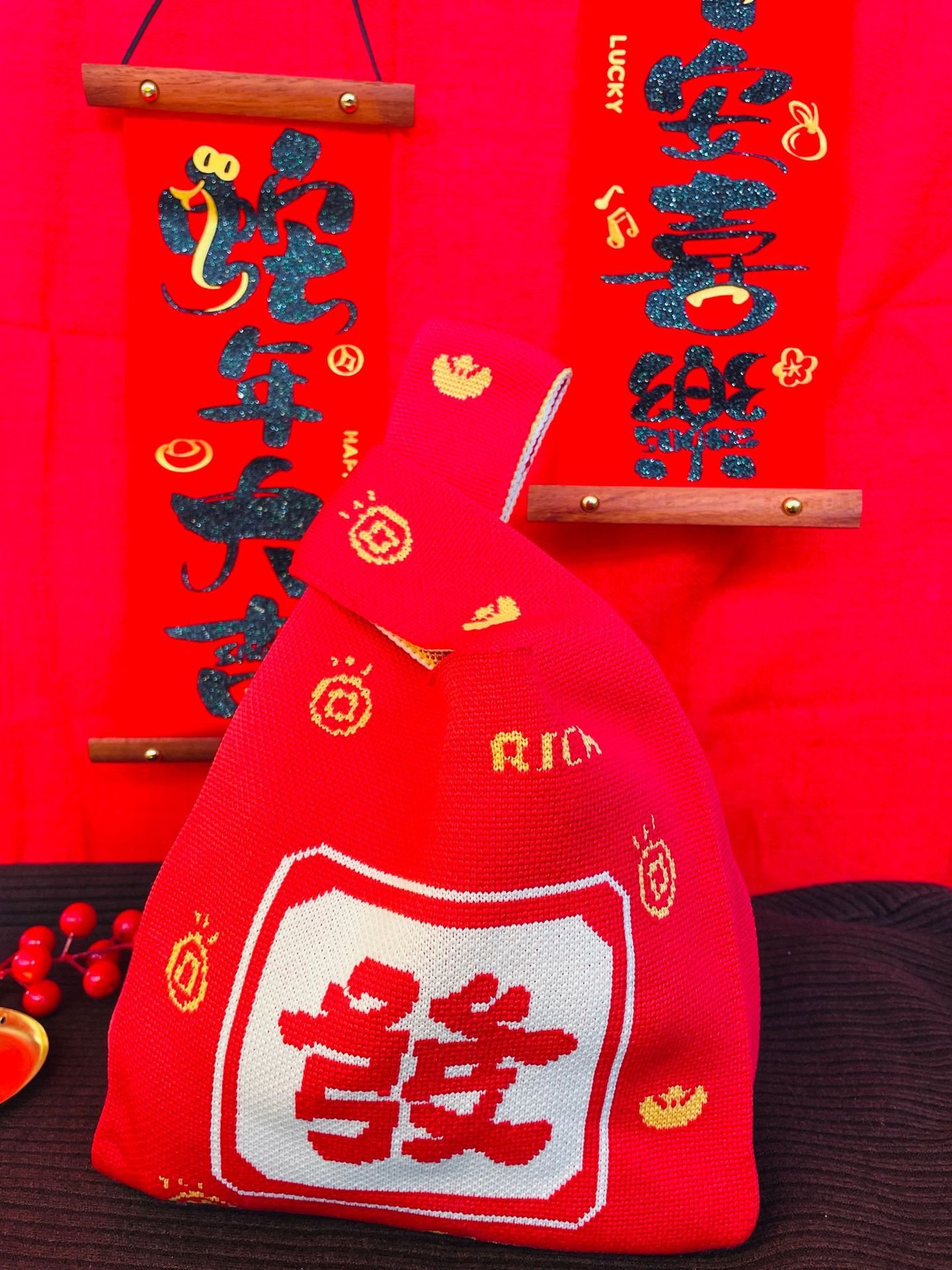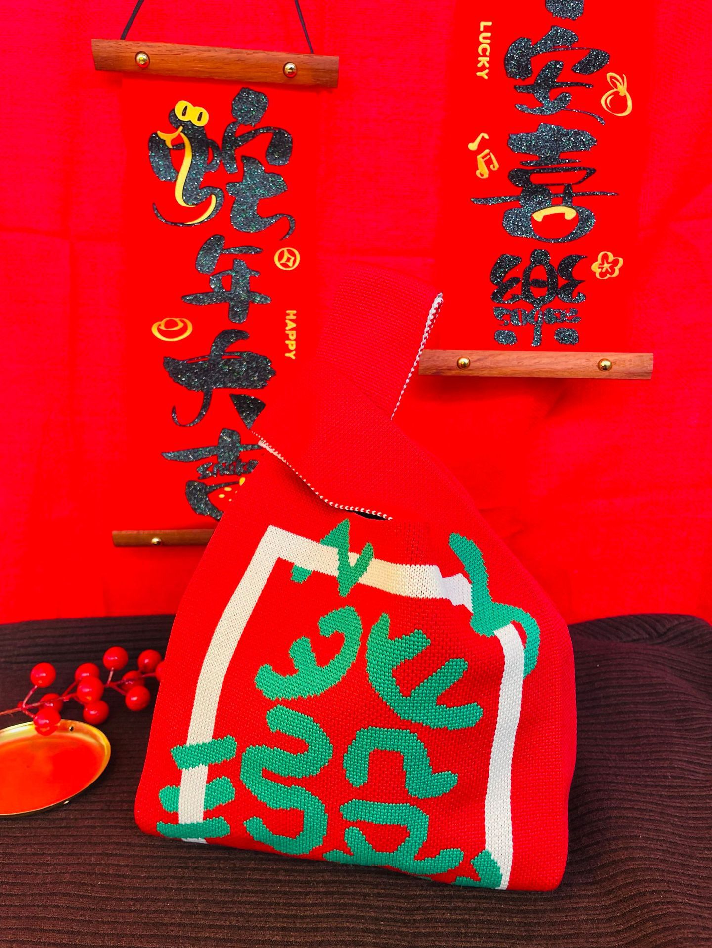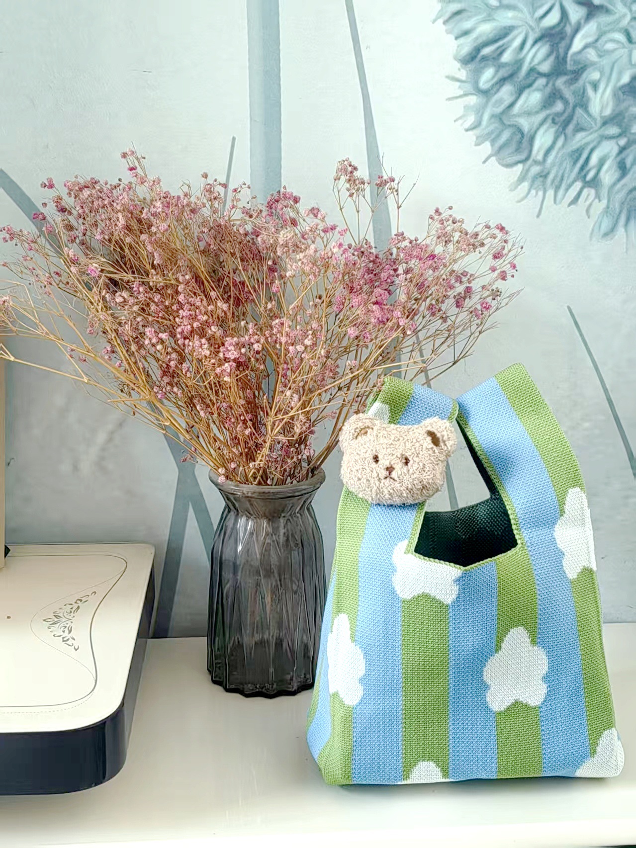 ins春季花朵女包针织手提包百搭针织包手腕包单肩水桶包托特包包