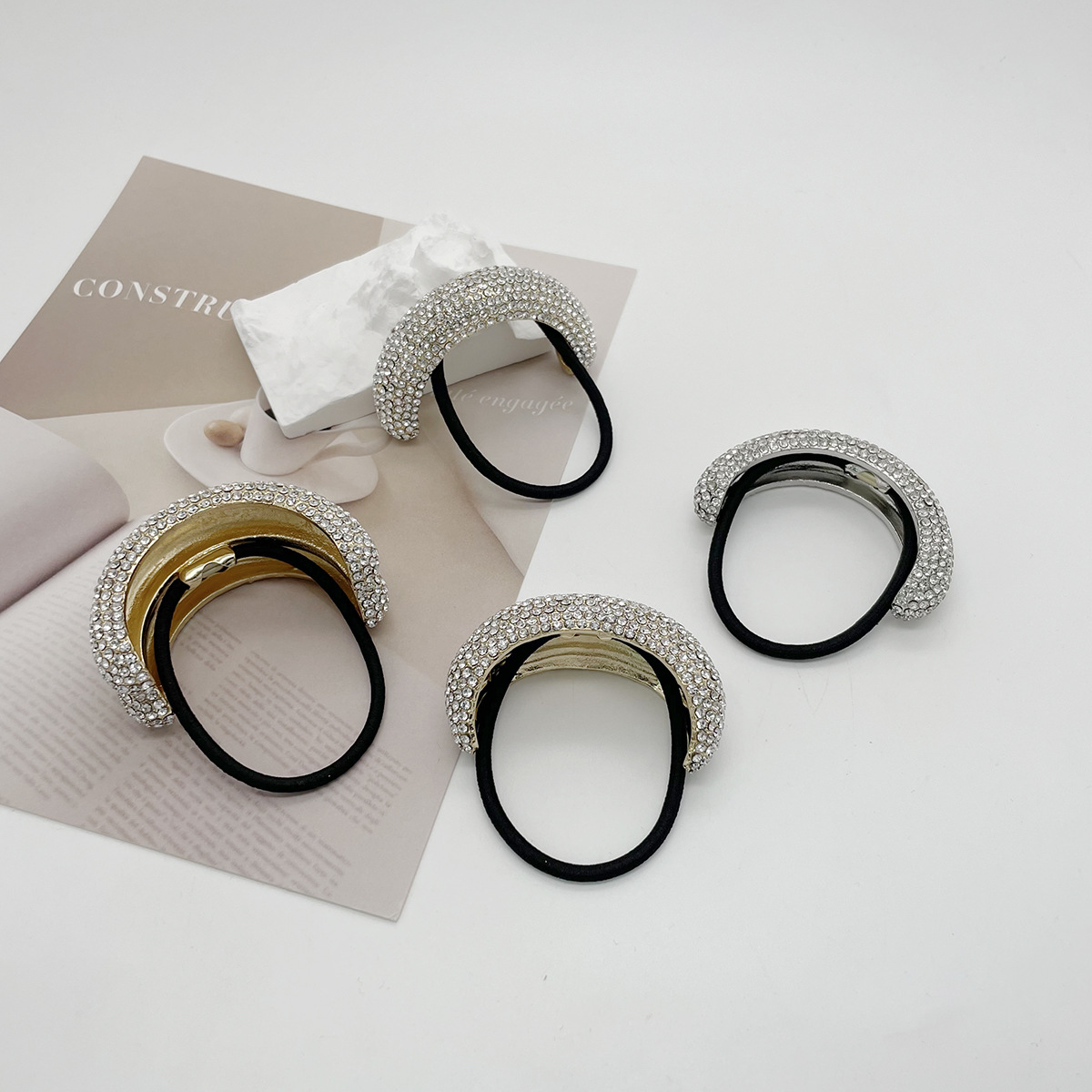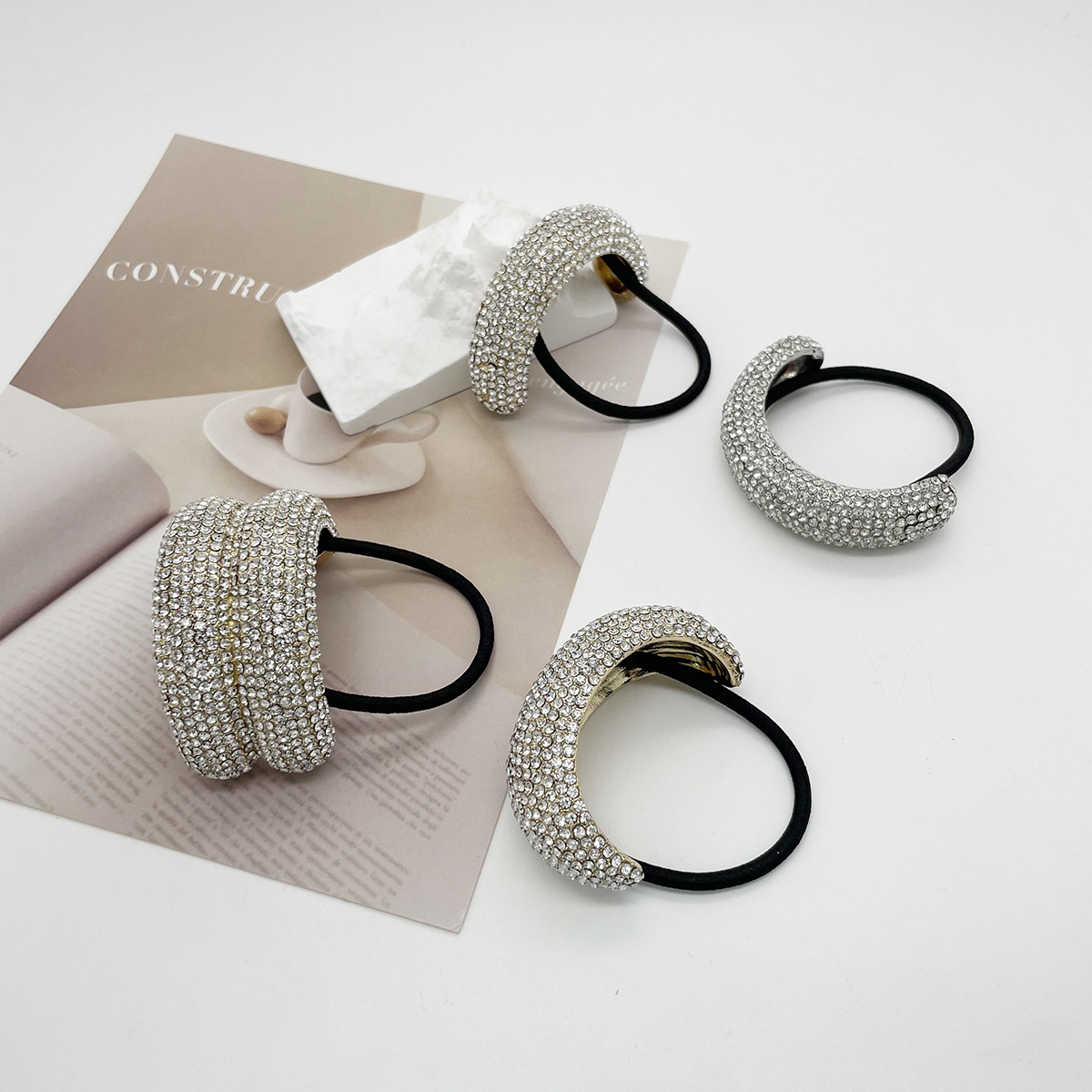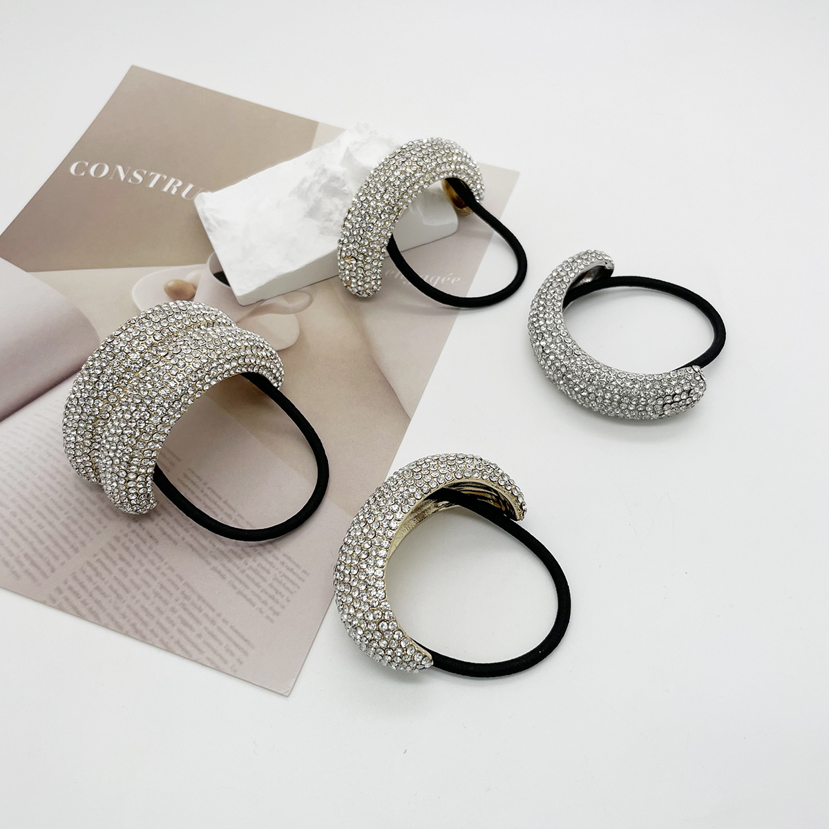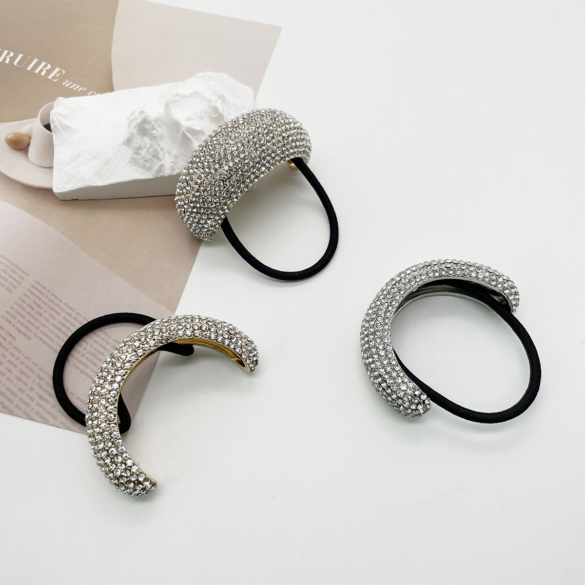 欧美合金满钻发圈头饰跨境新款发绳甜酷风马尾头绳发饰女