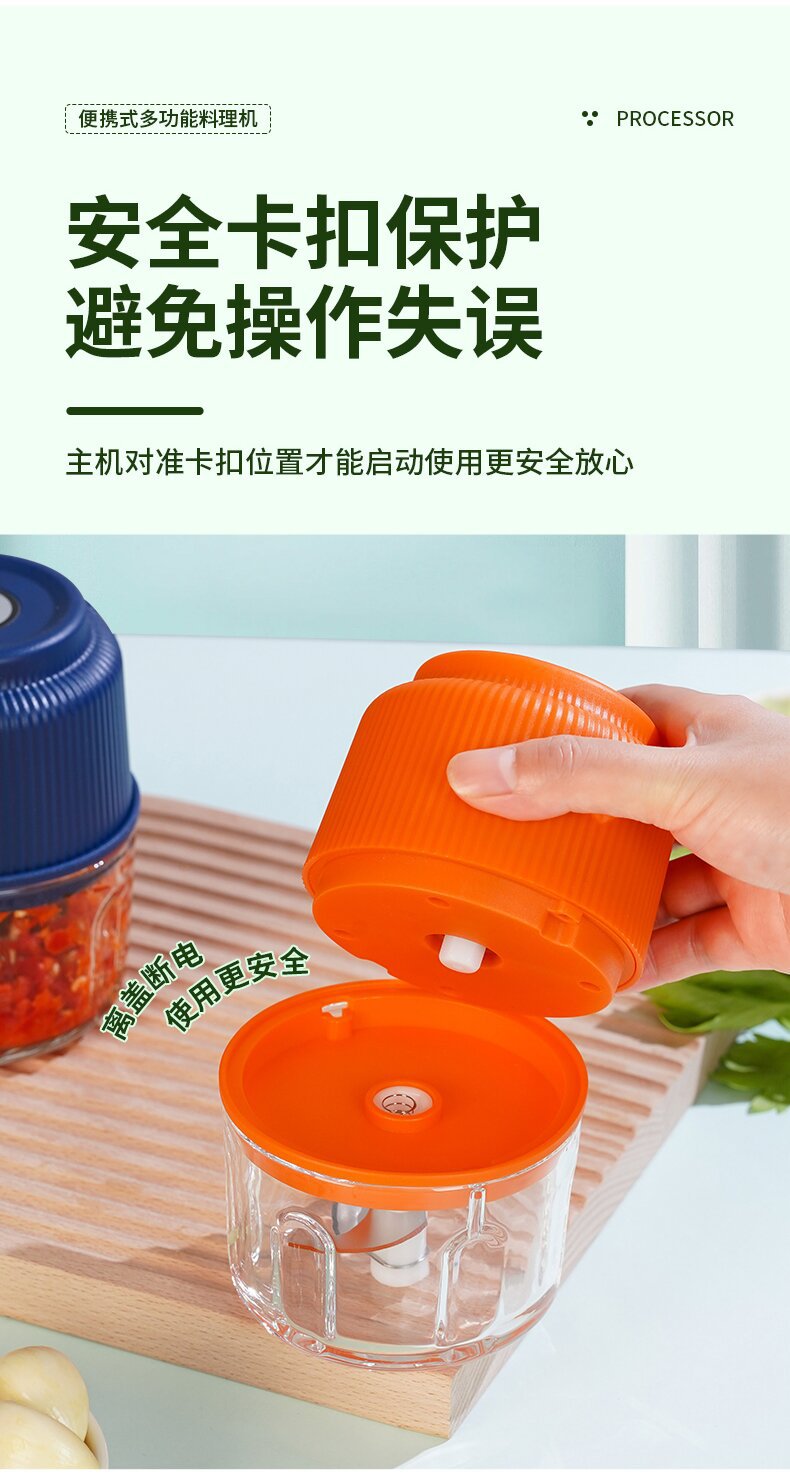 JLL7005迷你电动捣蒜器绞肉器Typec充电辅食料理机无线打蒜泥神器