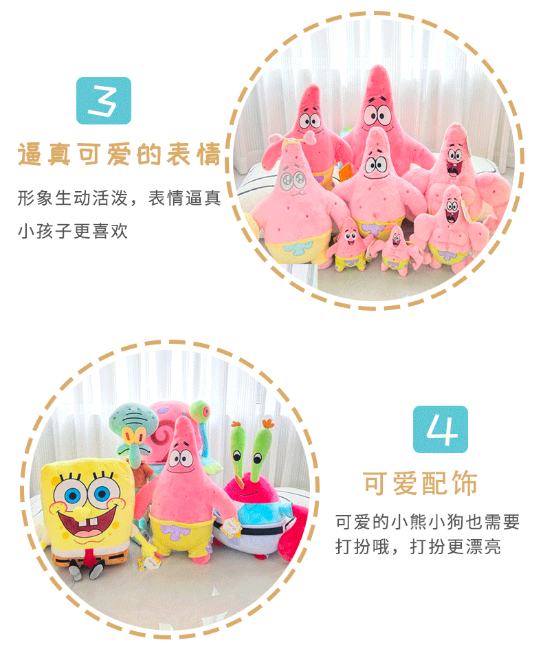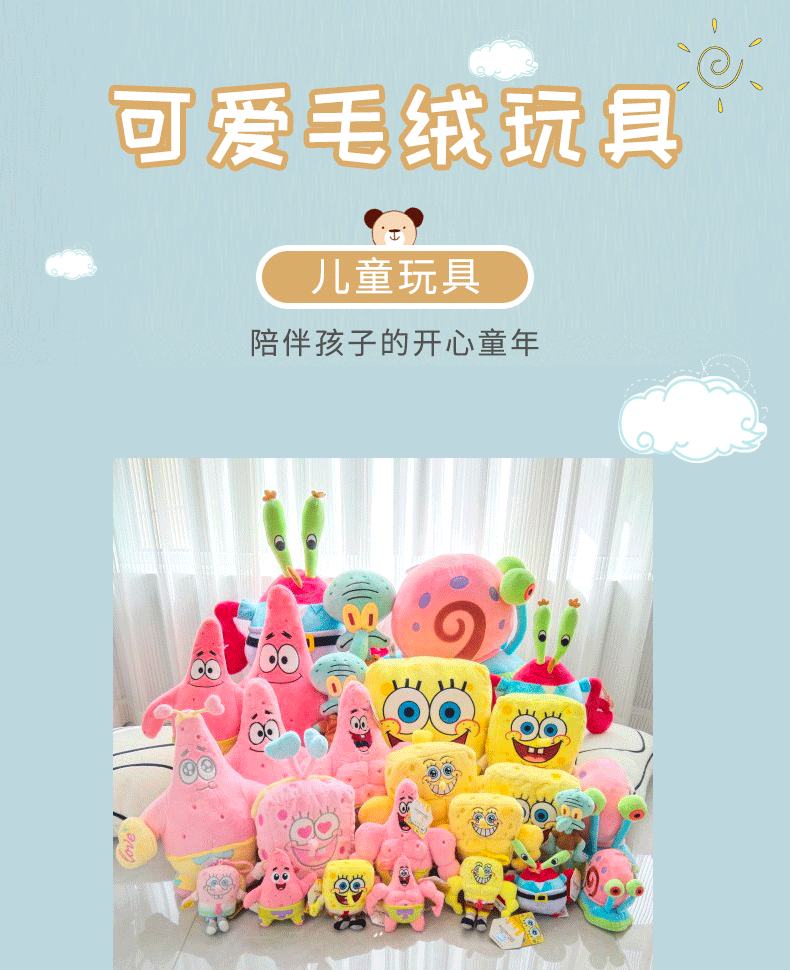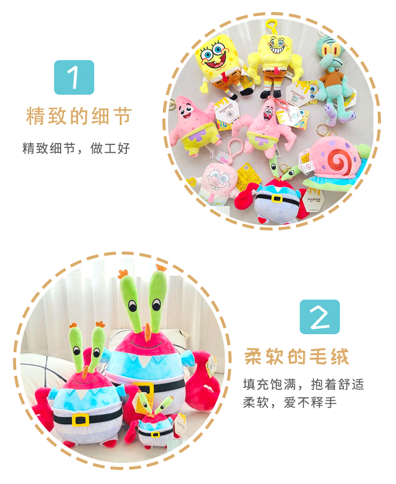 正版海绵宝宝派大星公仔毛绒玩具章鱼哥蟹老板小蜗挂件抓机娃娃玩