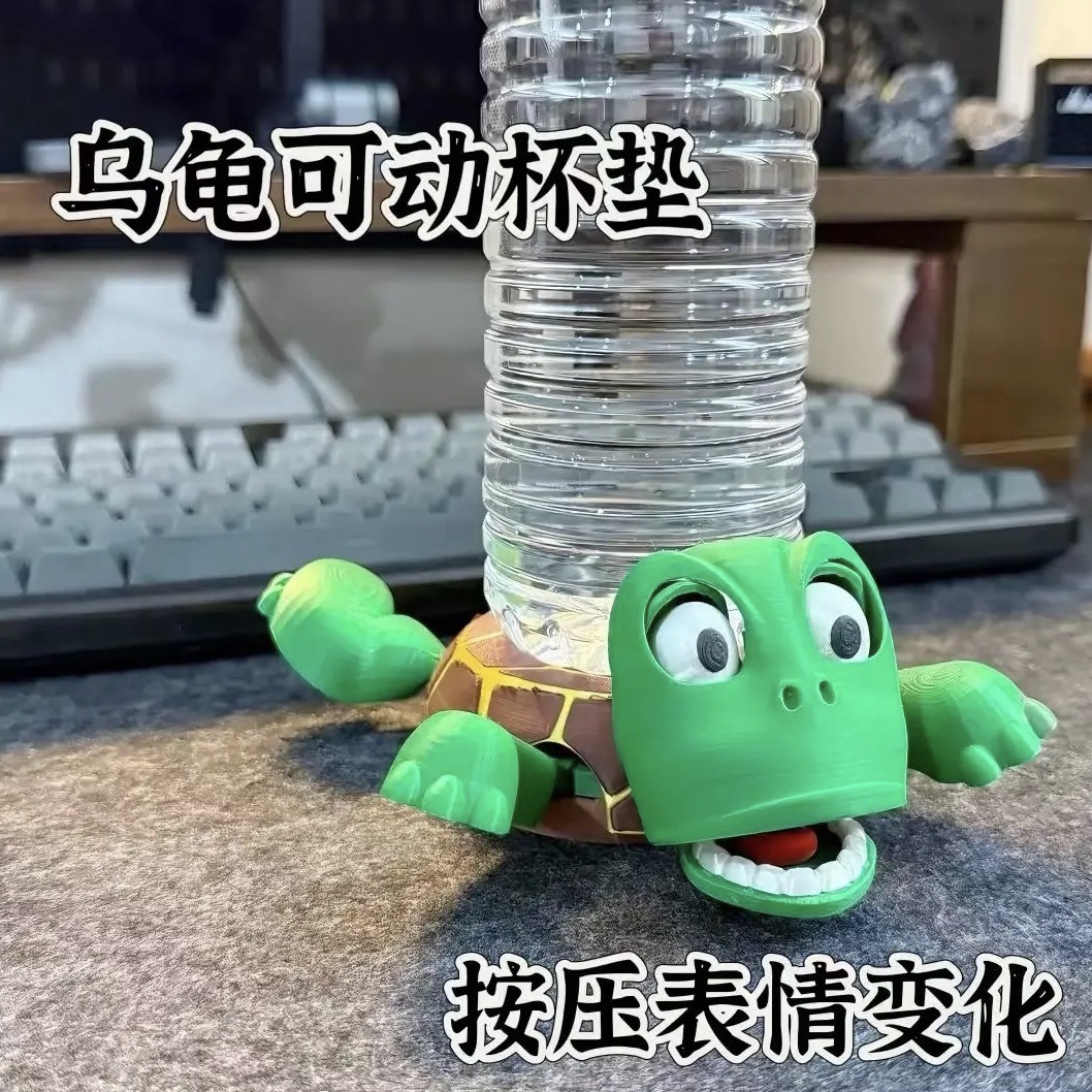 抖音王八杯垫创意搞怪桌面摆件按压瞪眼可爱搞笑3d打印乌龟水杯垫