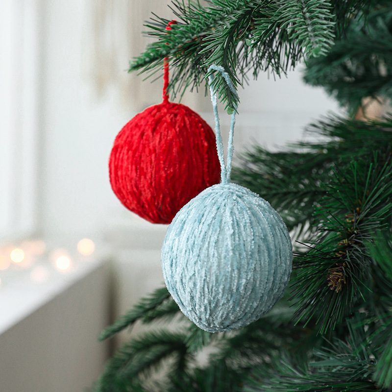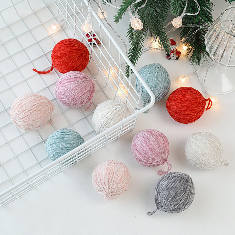 圣诞装饰品批发6cm米白彩色羊毛毡绕线球diy材料圣诞树毛线圣诞球