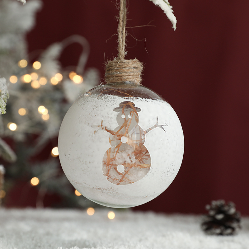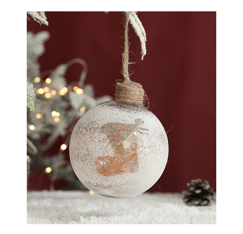 跨境新品圣诞球玻璃球装饰吊球内置景观透明球圣诞树装饰挂件布置