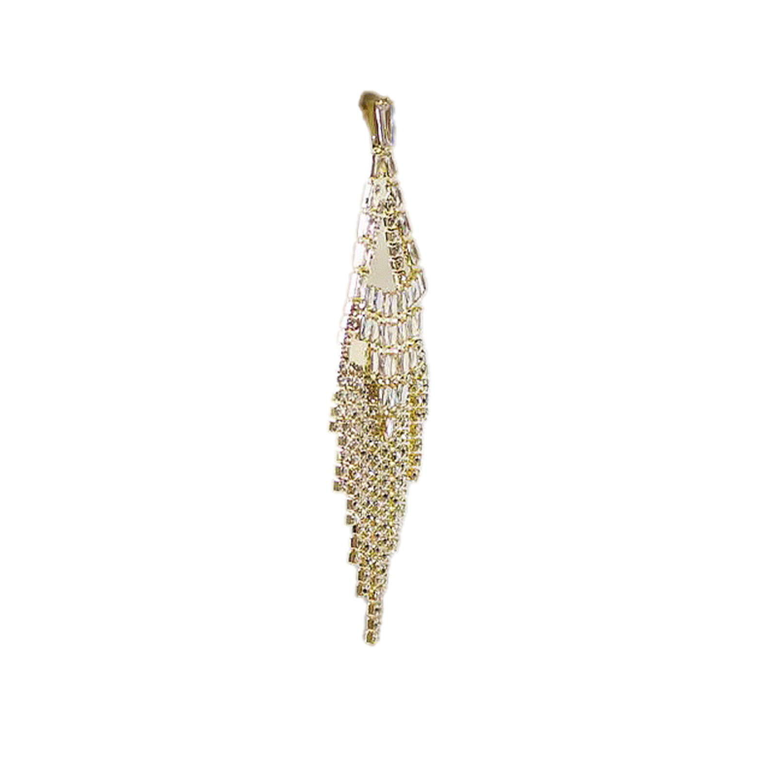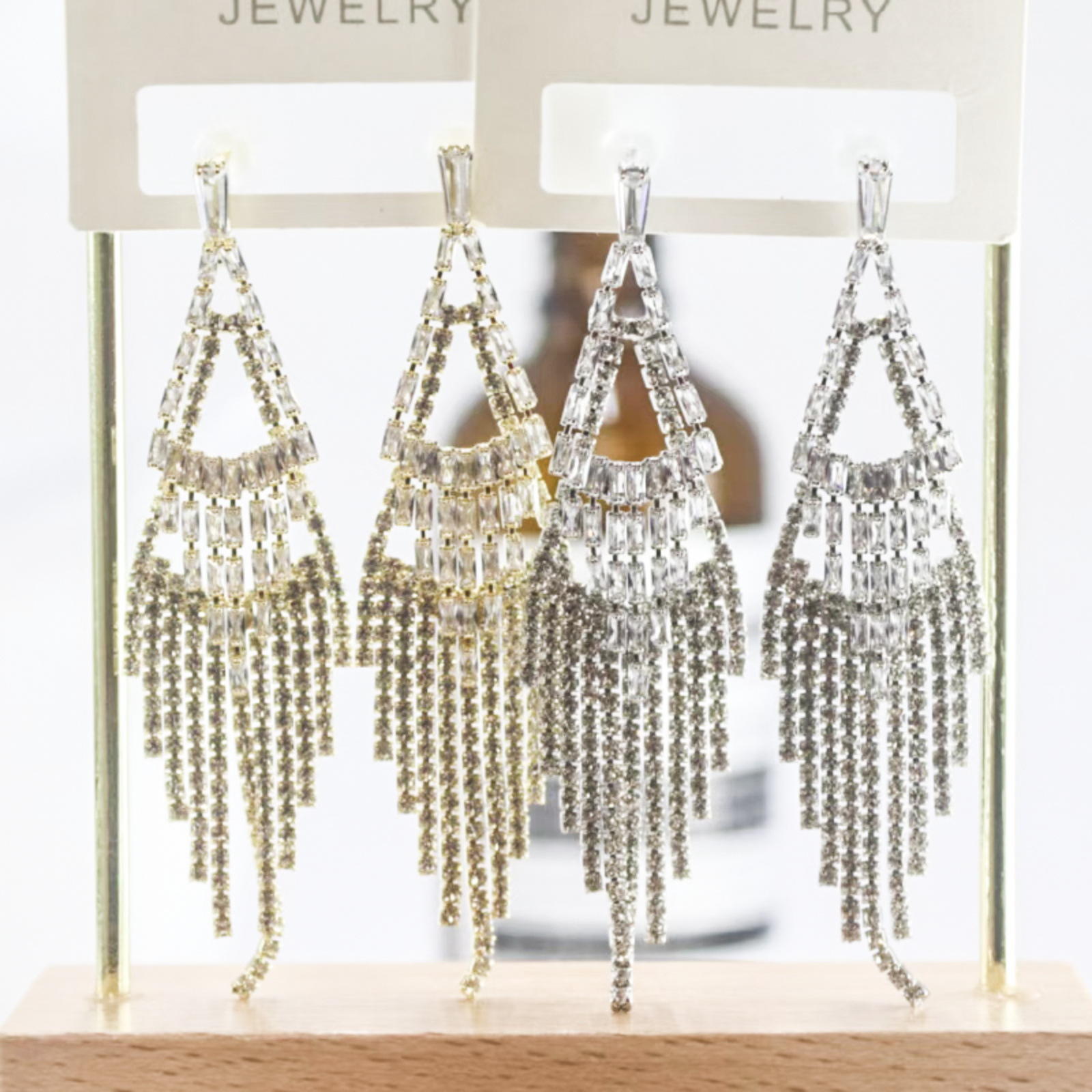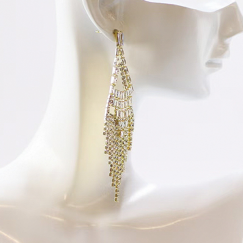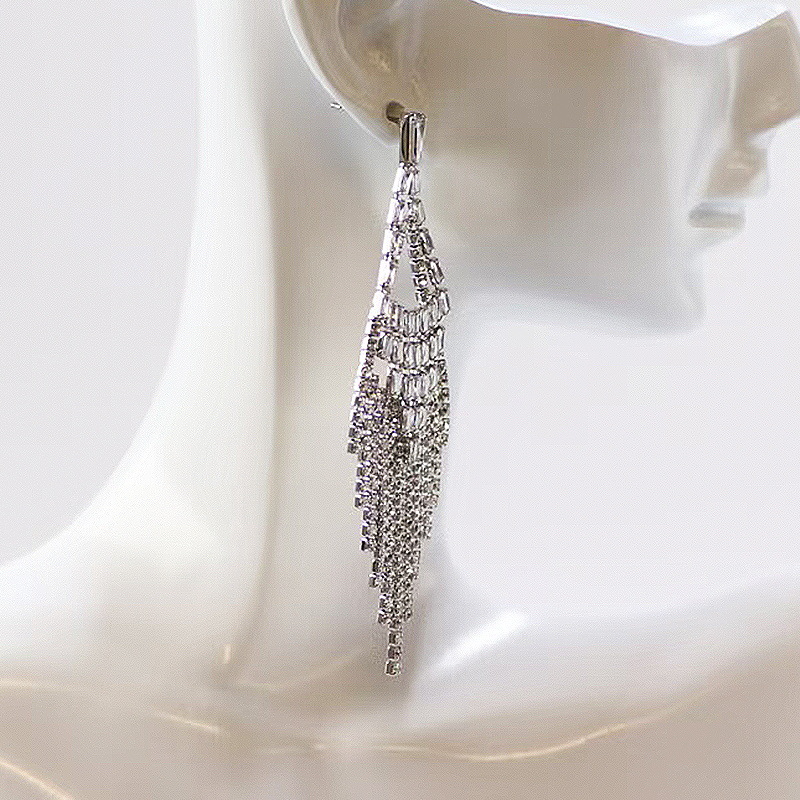 欧美跨境爆款爆闪水钻耳坠长流苏婚礼耳环耳钉式长耳饰新款波浪耳