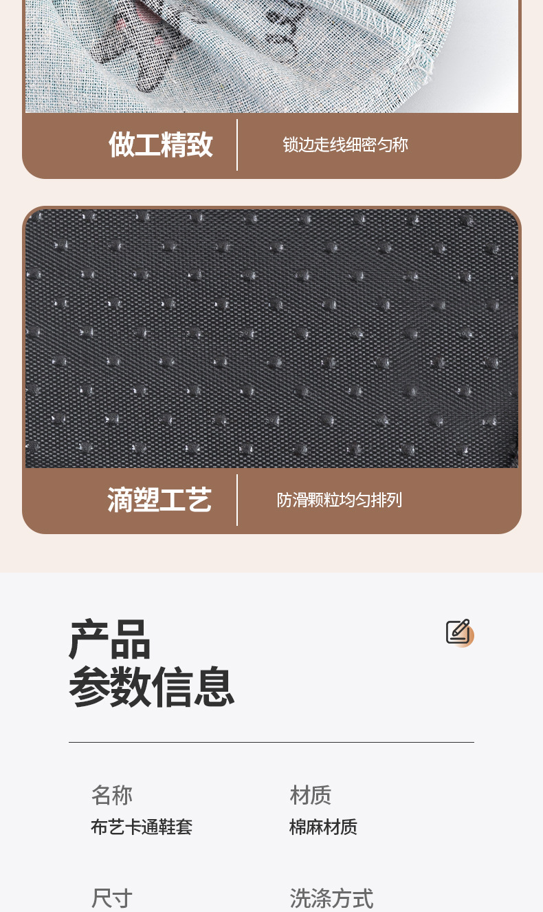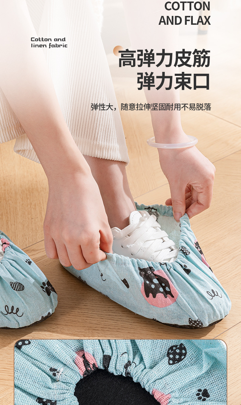 家用室内鞋套学生机房透气布料可反复水洗成人防滑脚套耐磨布鞋套