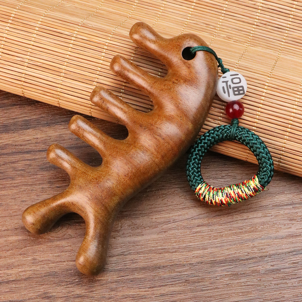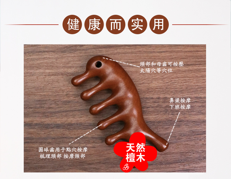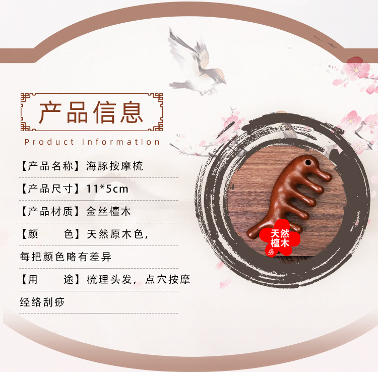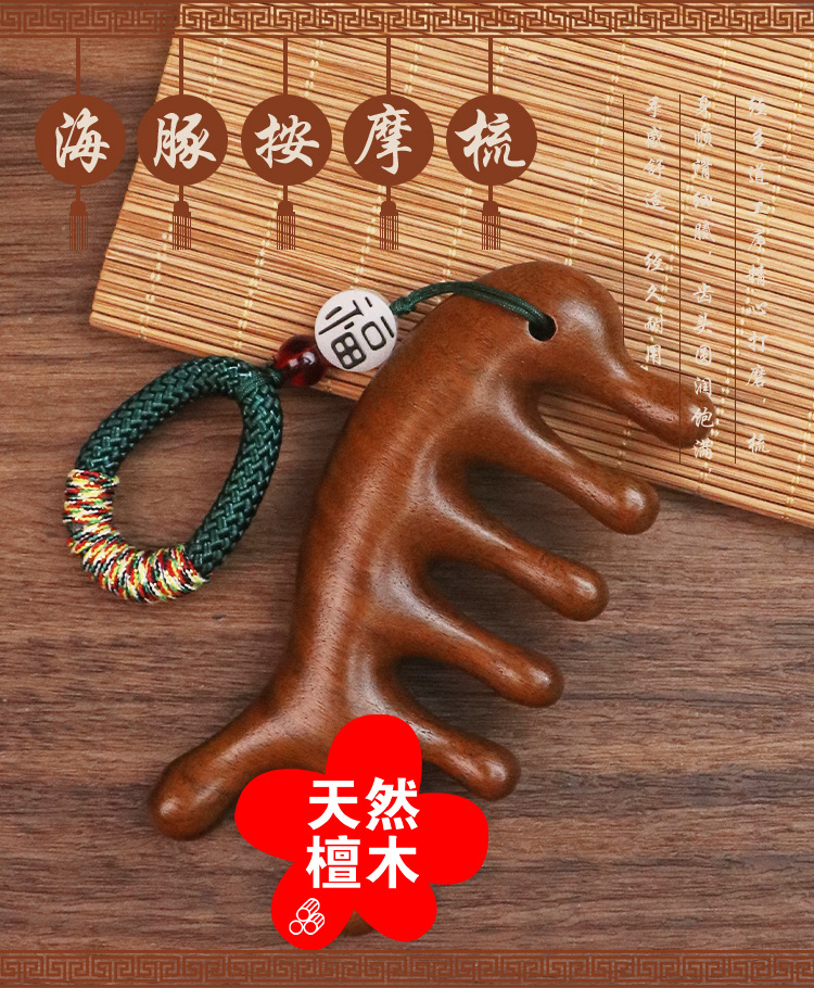 海豚檀木按摩梳头部经络梳子女生专用排骨梳多功能头疗神器梳子