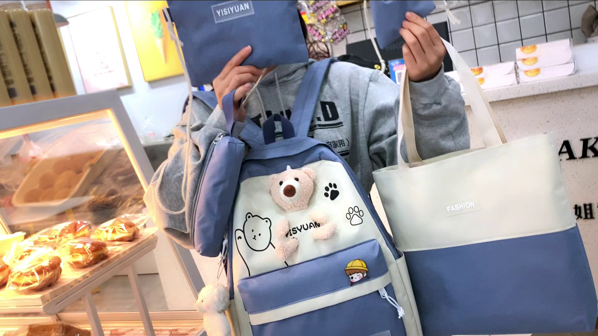 韩版ins小清新双肩背包五件套多功能补课包妈咪包