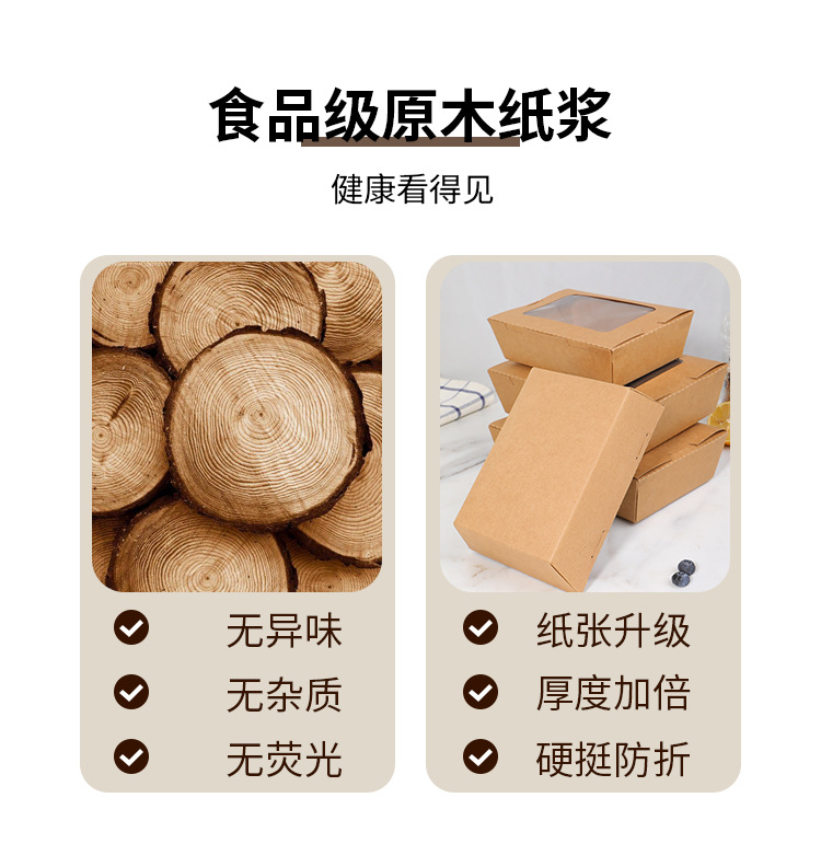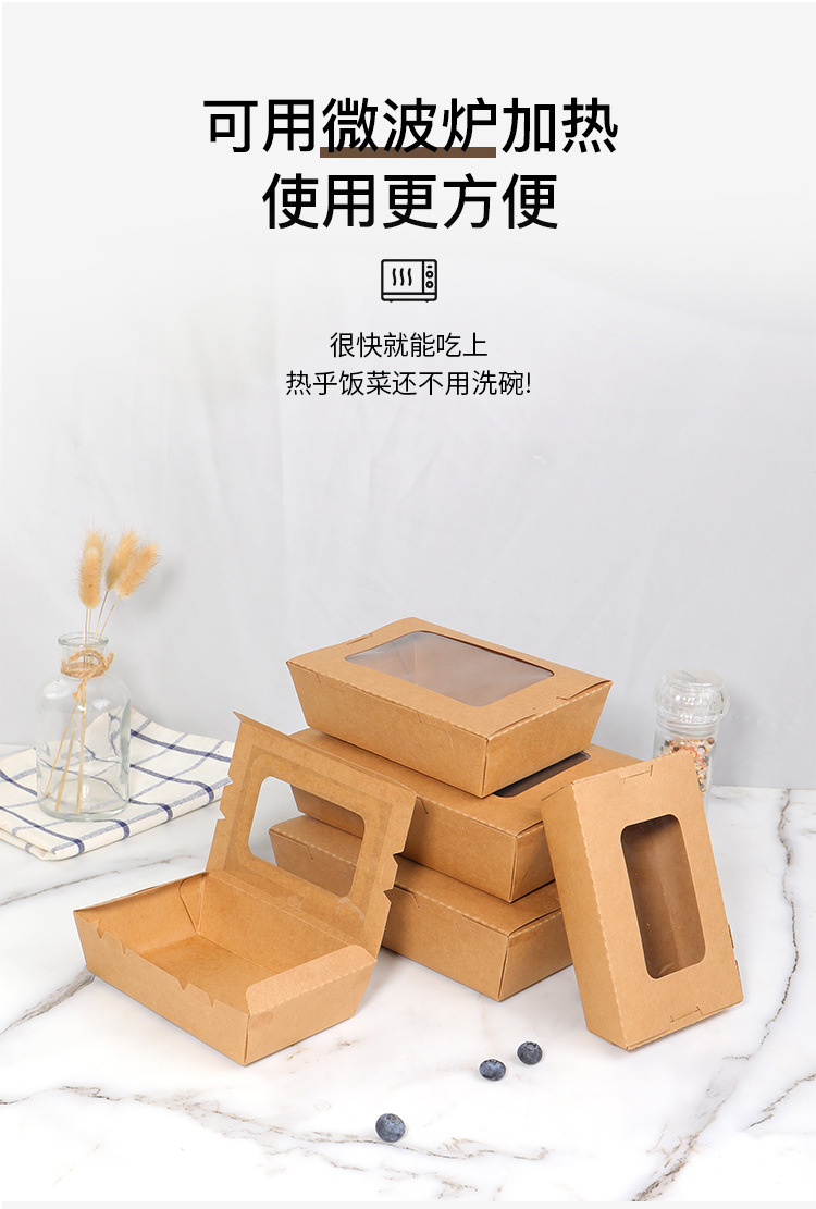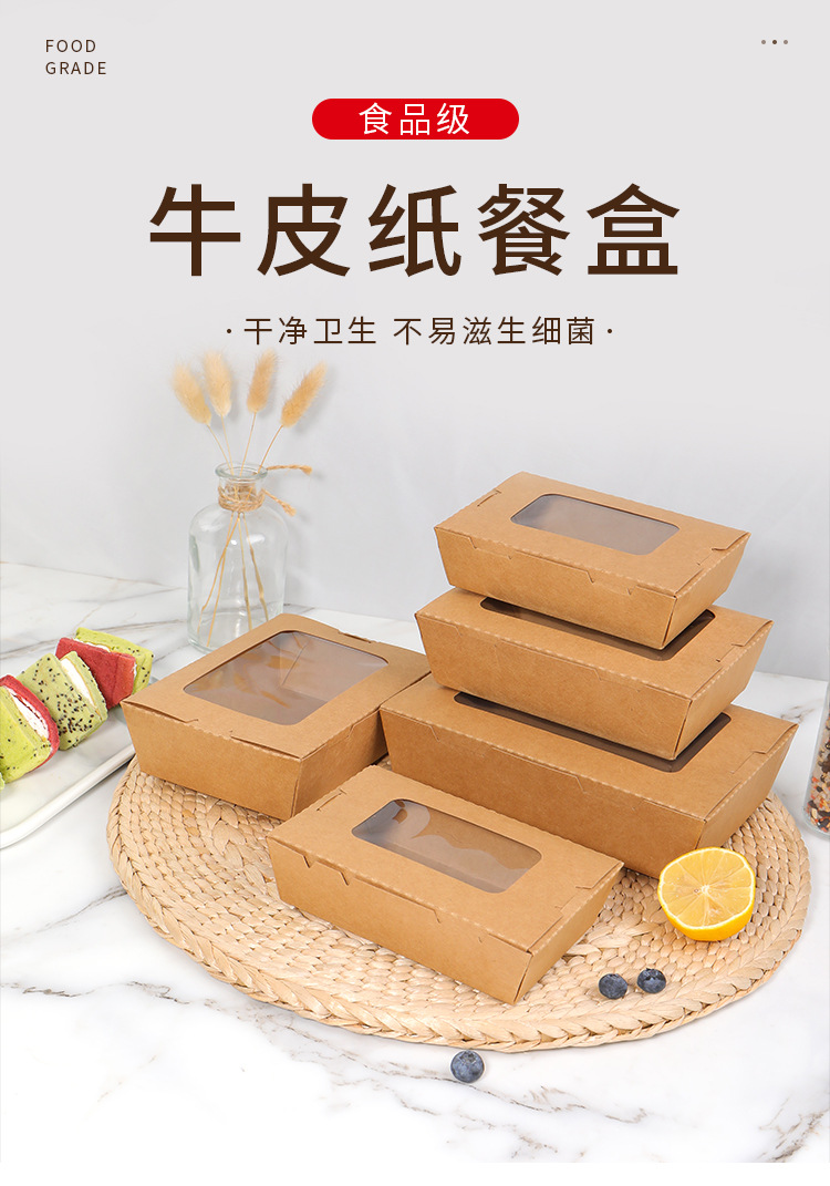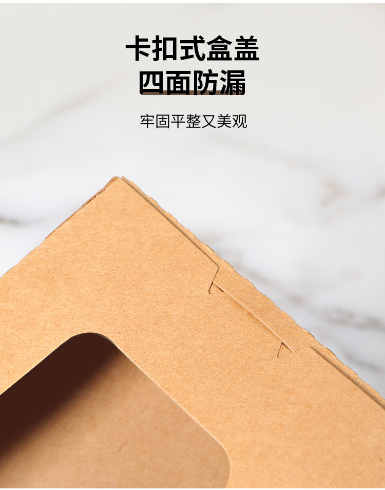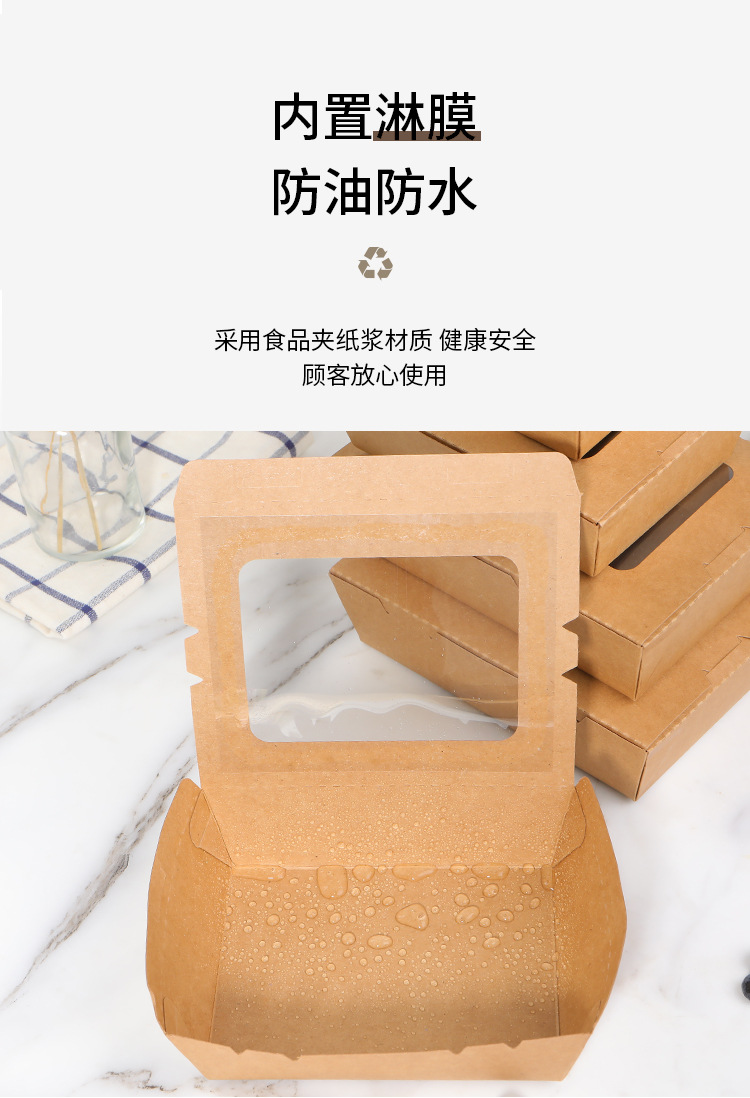 一次性打包盒牛皮纸餐盒开窗水果沙拉盒长方形炸鸡烤肉外卖纸盒