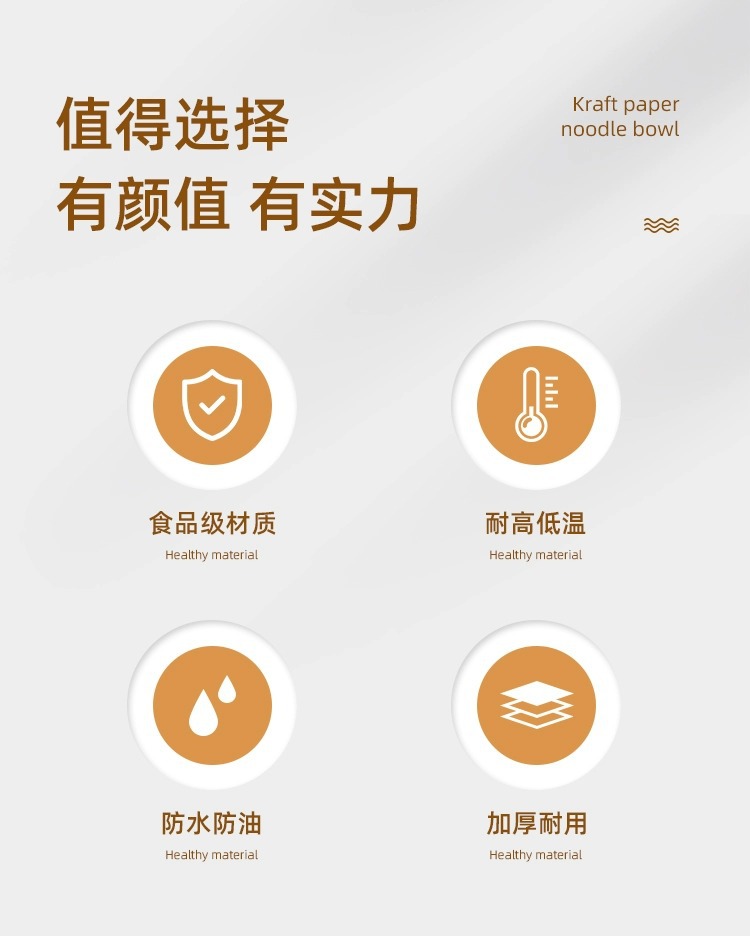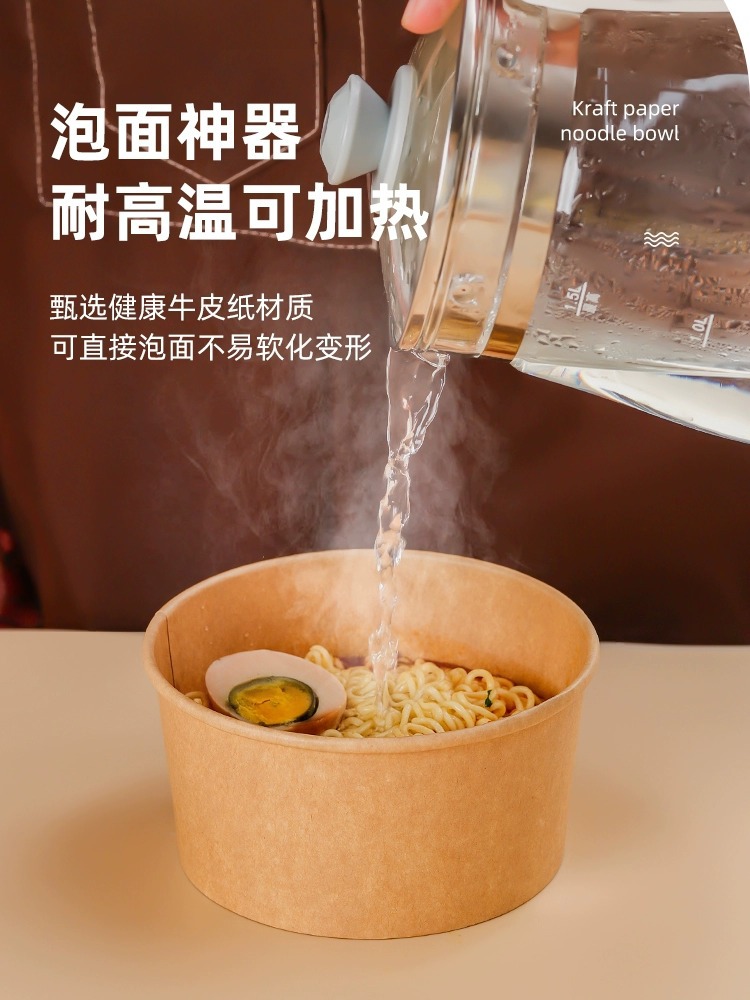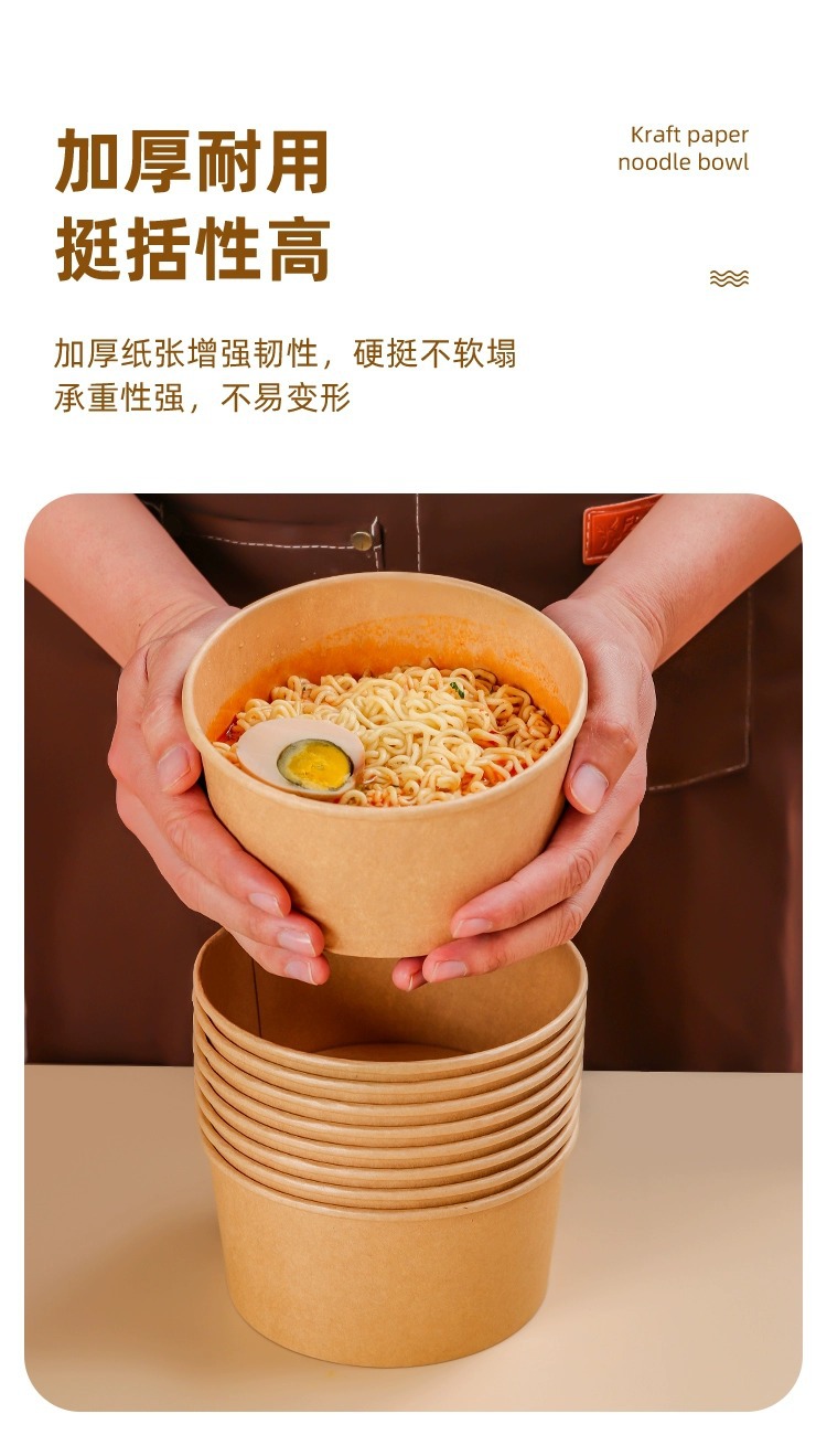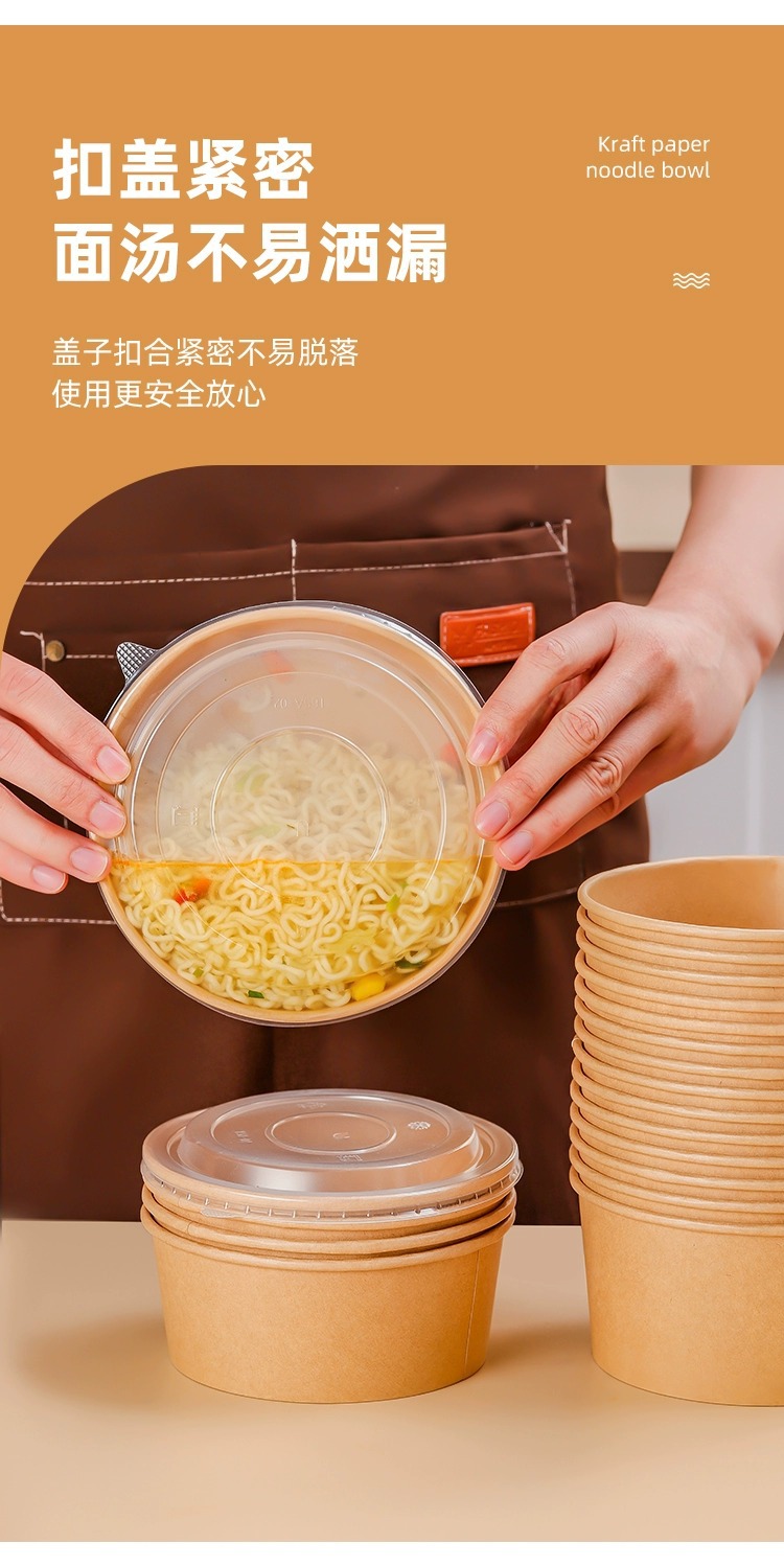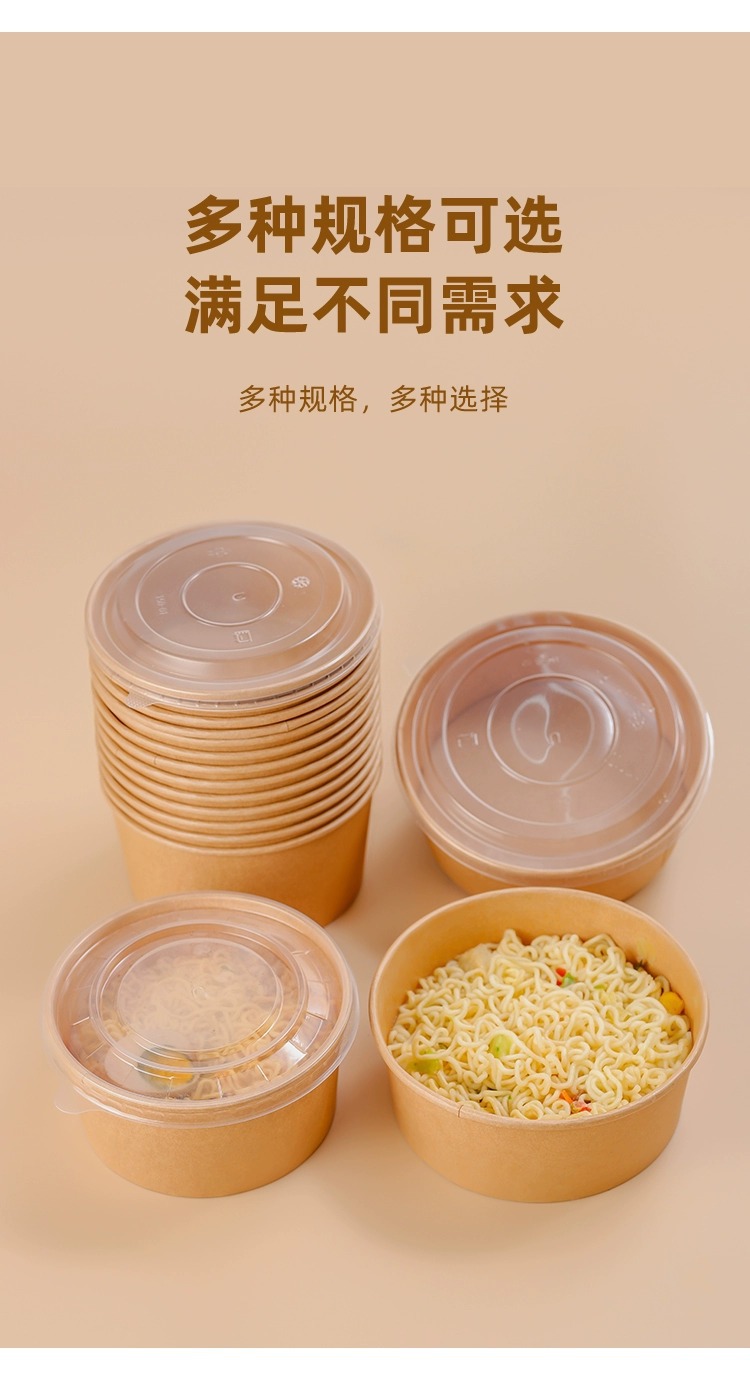 加厚牛皮纸碗商用外卖一次性打包盒食品级轻食沙拉圆形带盖餐盒
