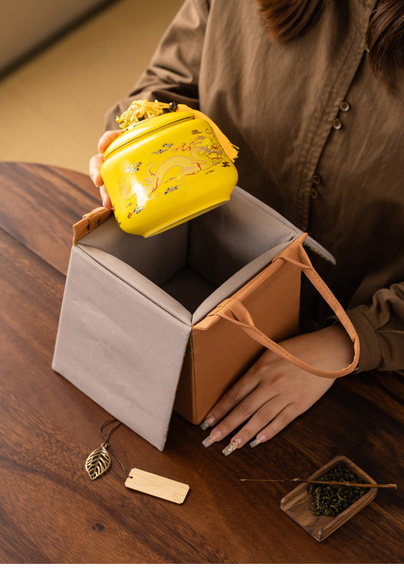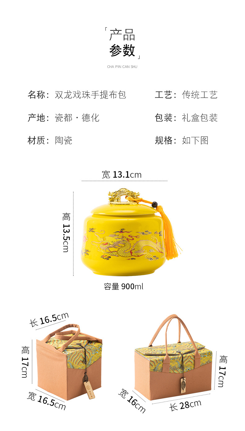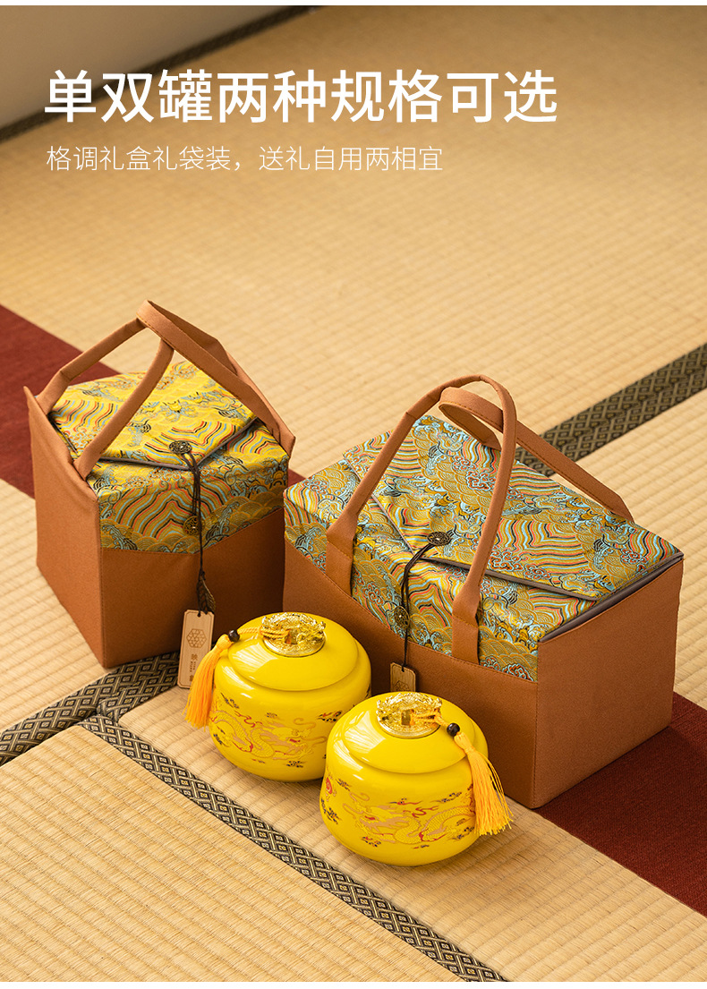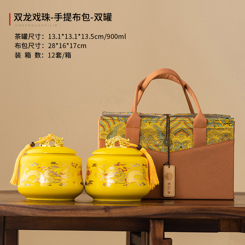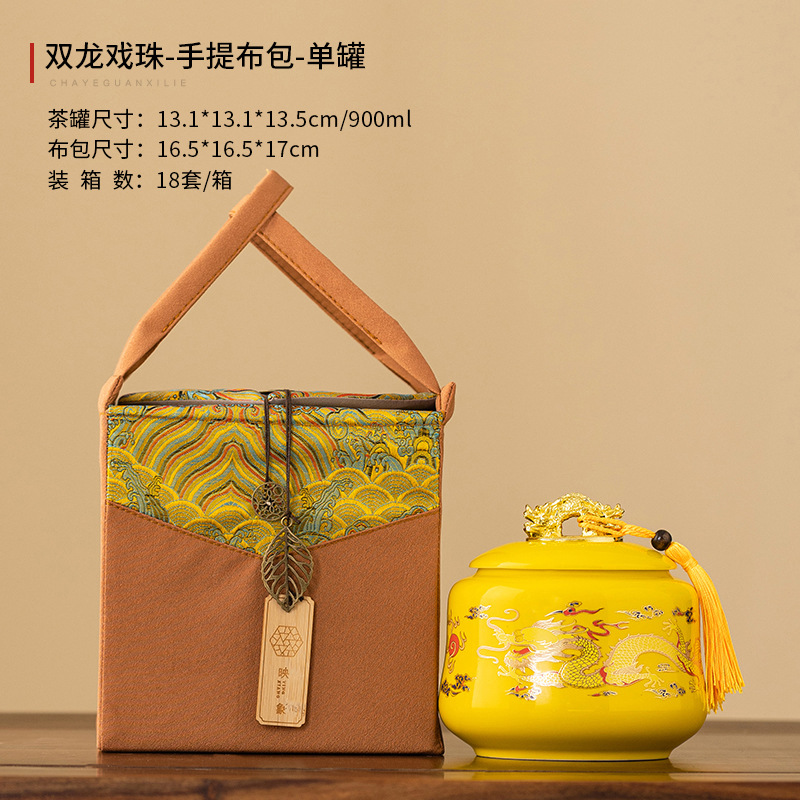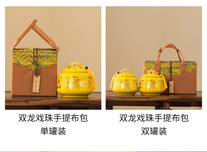 双龙戏珠陶瓷茶叶罐复古布袋包装空盒红茶绿茶龙井碧螺春散茶礼盒