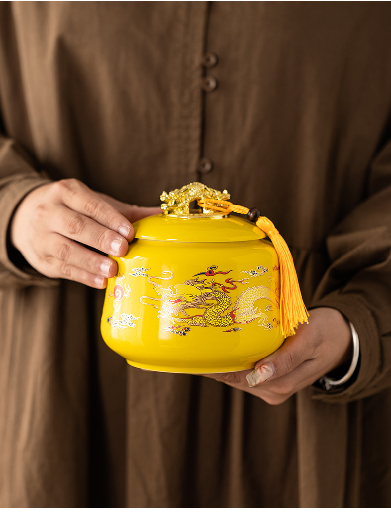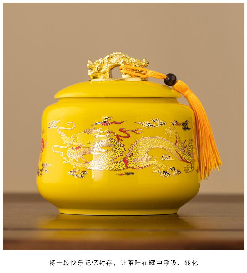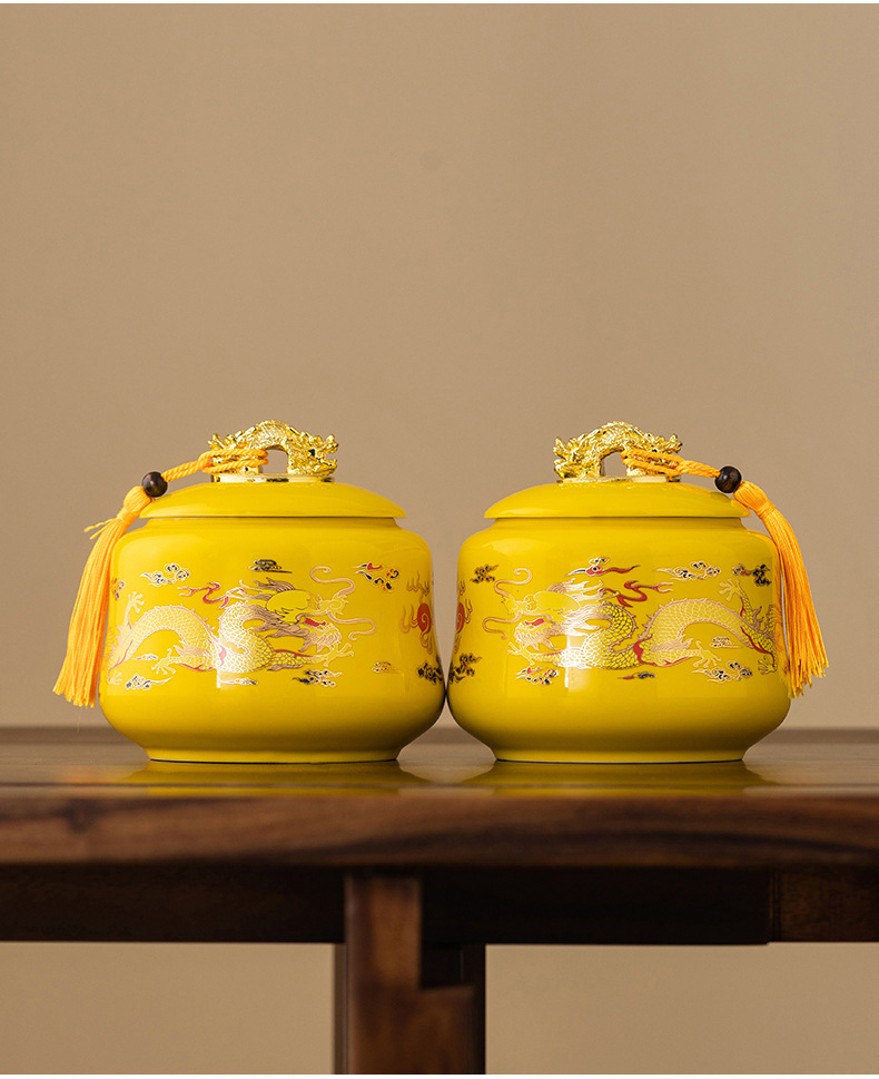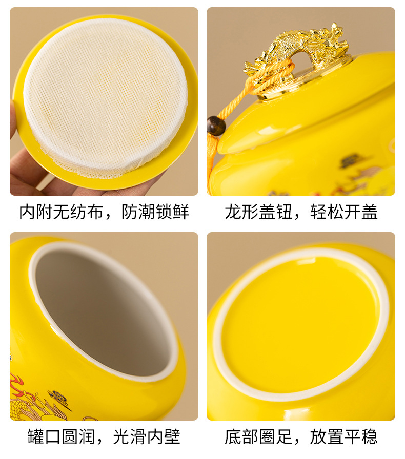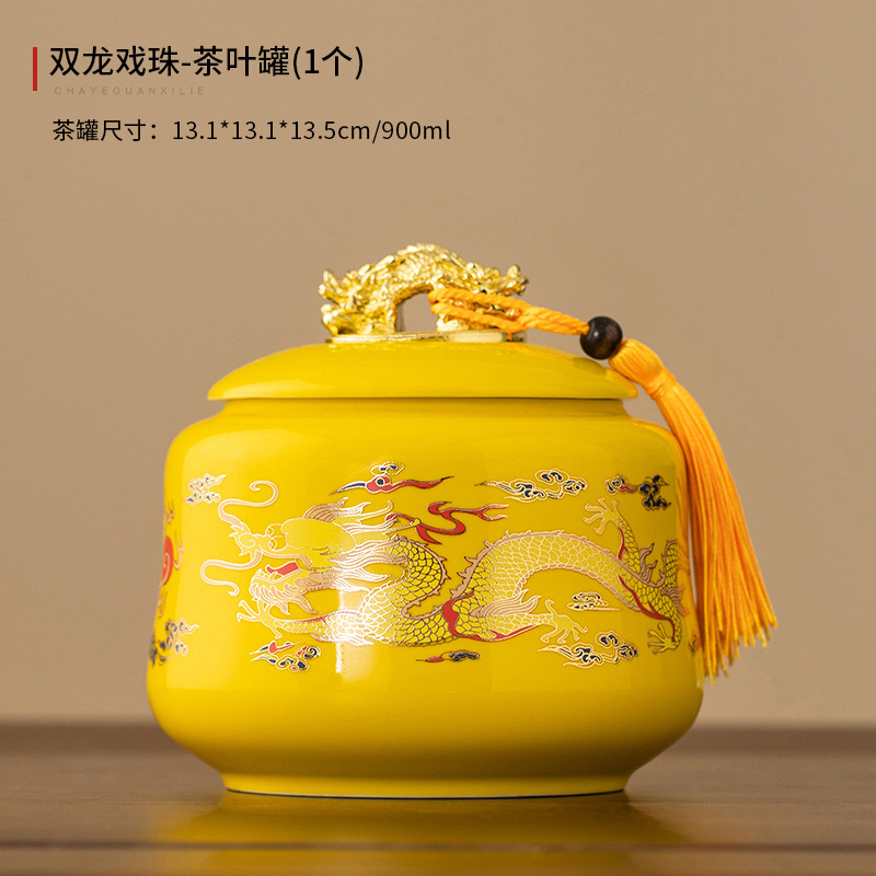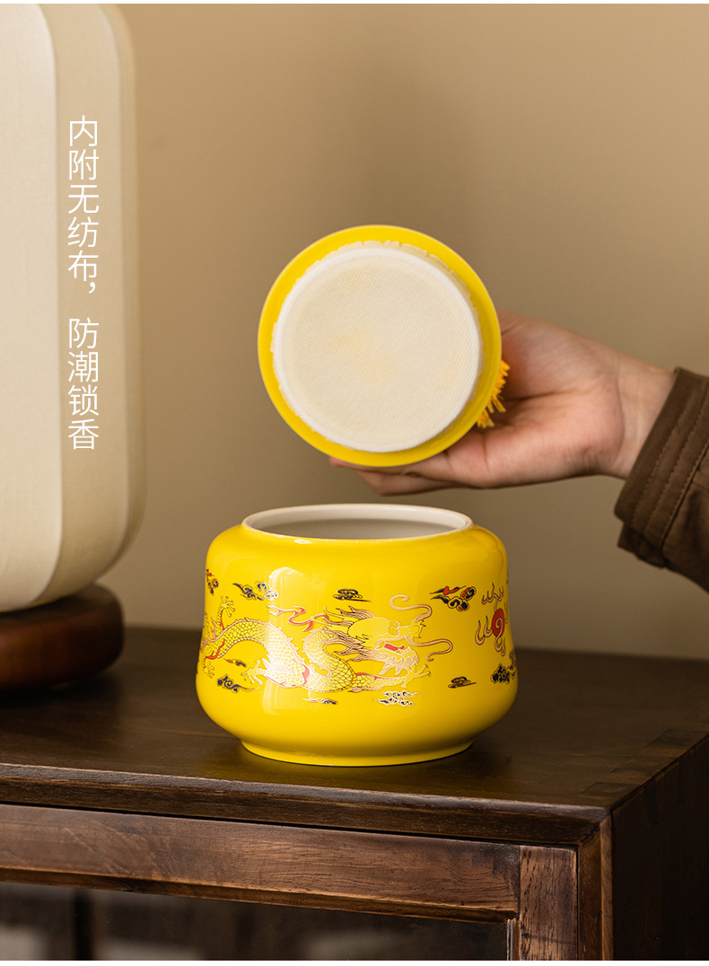 双龙戏珠陶瓷茶叶罐复古布袋包装空盒红茶绿茶龙井碧螺春散茶礼盒