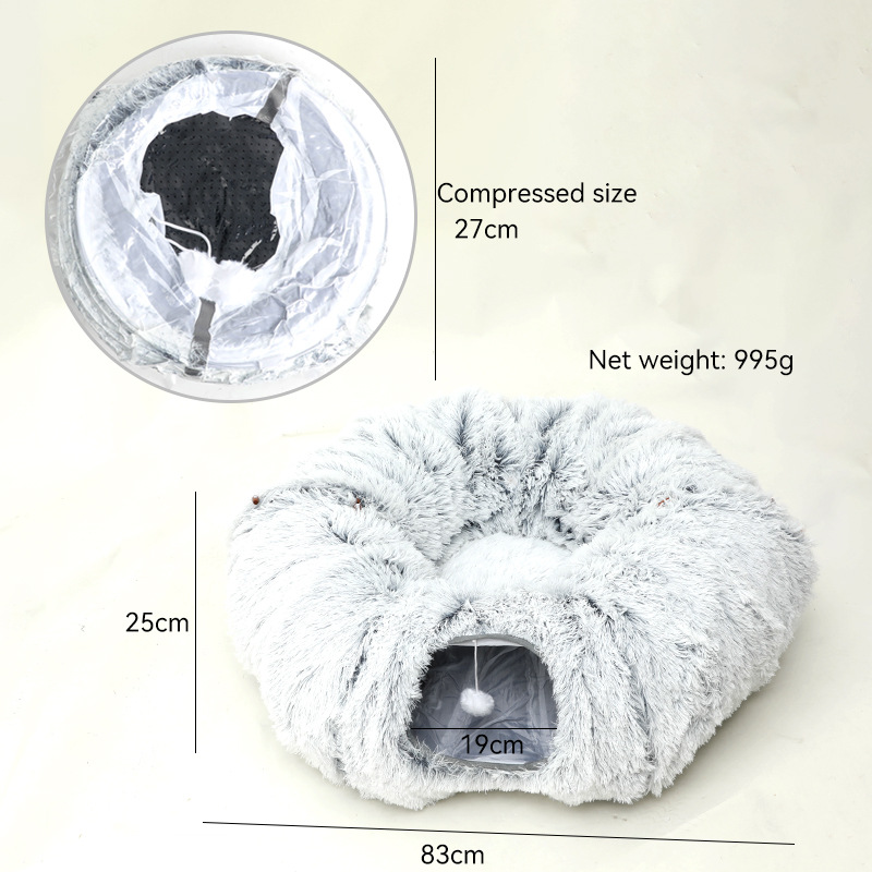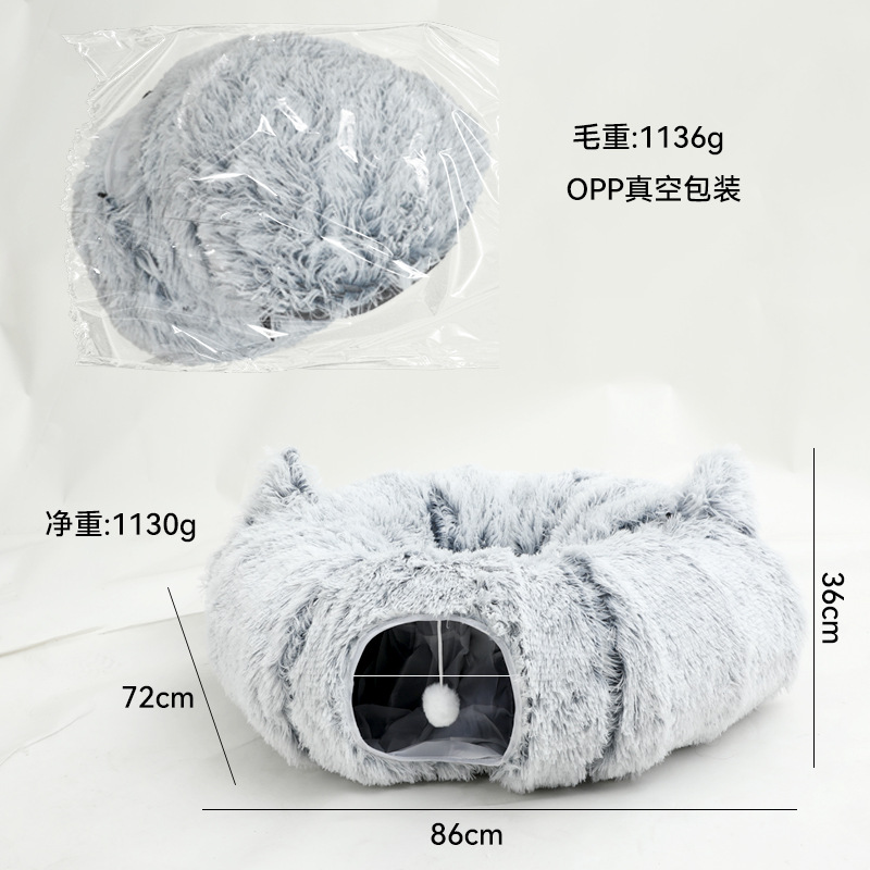跨境爆款长毛绒猫窝猫隧道代发宠物窝批发保暖猫垫折叠猫通道狗床