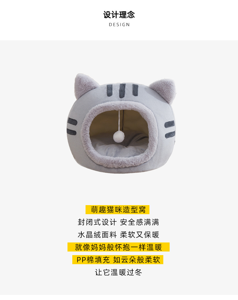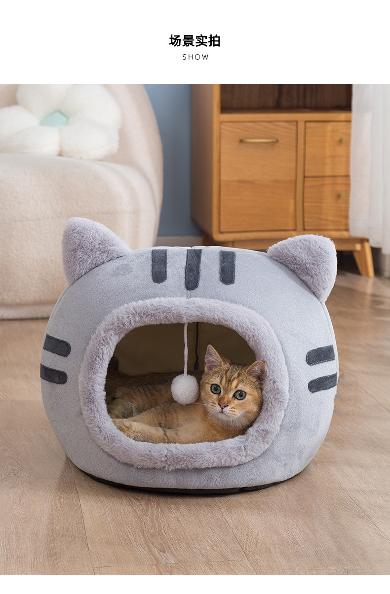 新款秋冬季猫咪造型网红猫窝狗窝保暖半封闭式宠物用品猫屋猫垫