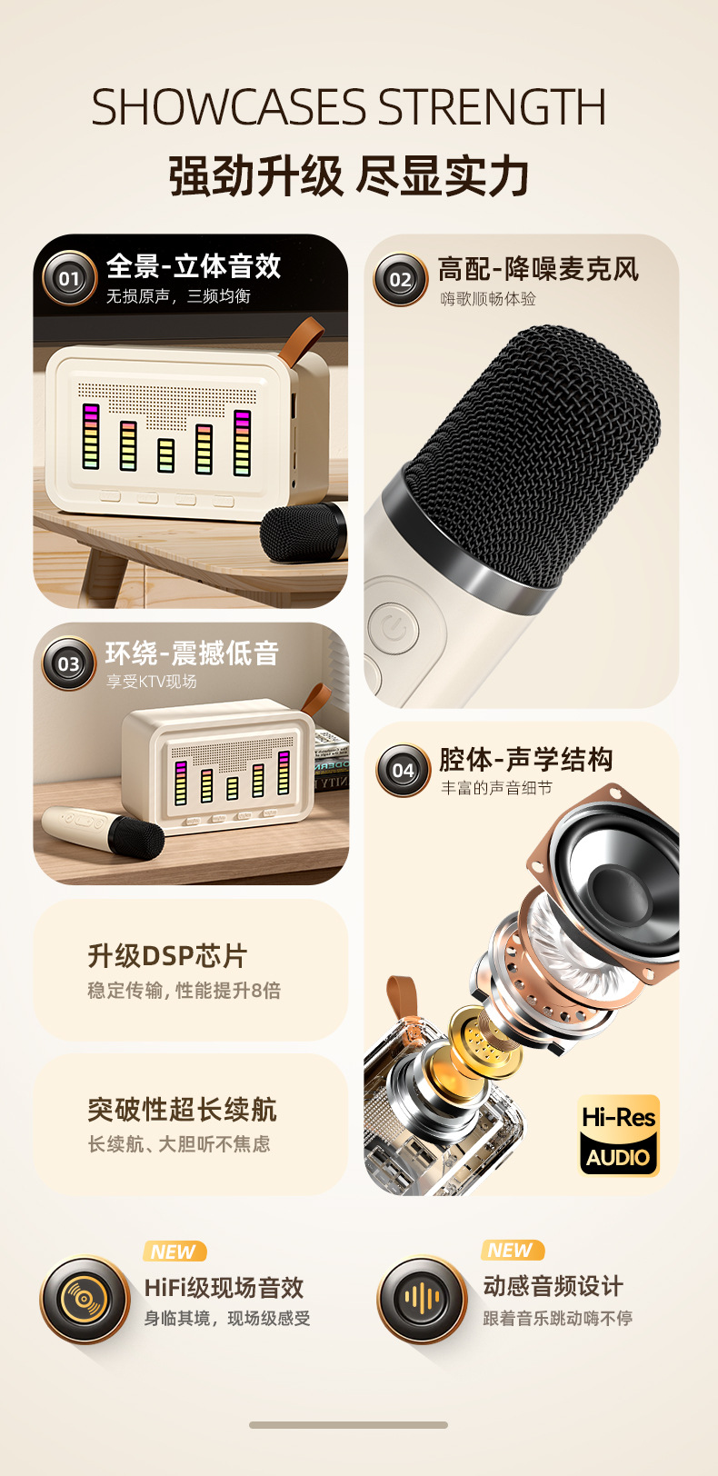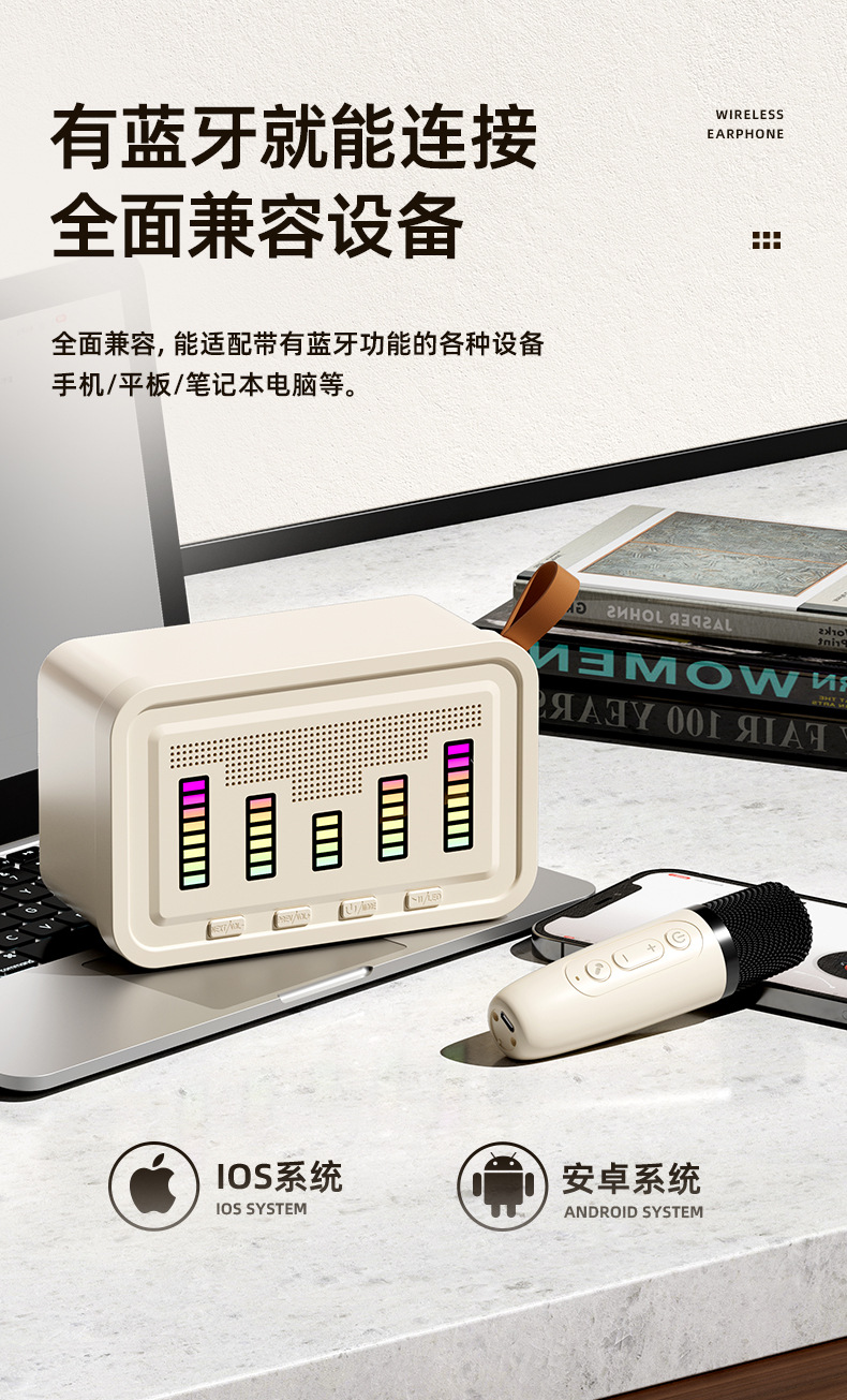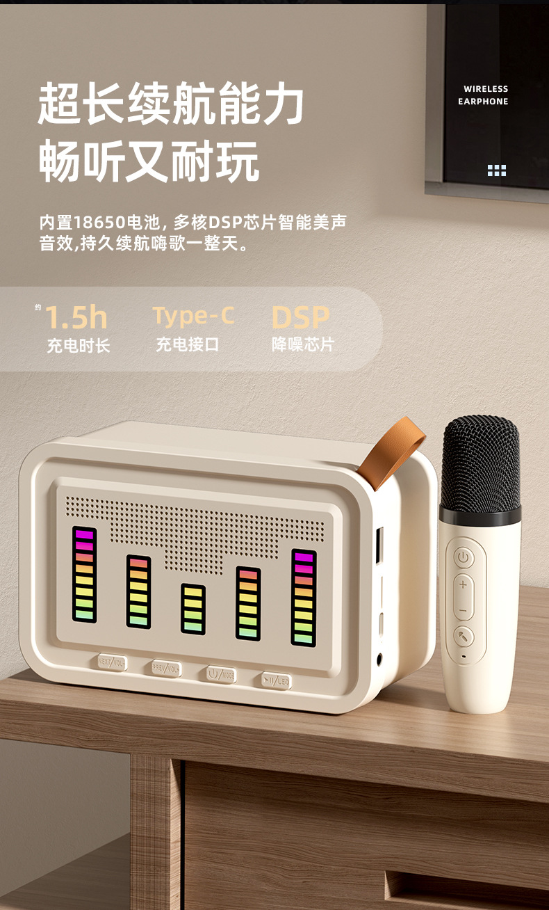 2024新款蓝牙音箱麦克风一体家用儿童户外直播蓝牙K歌音响带话筒