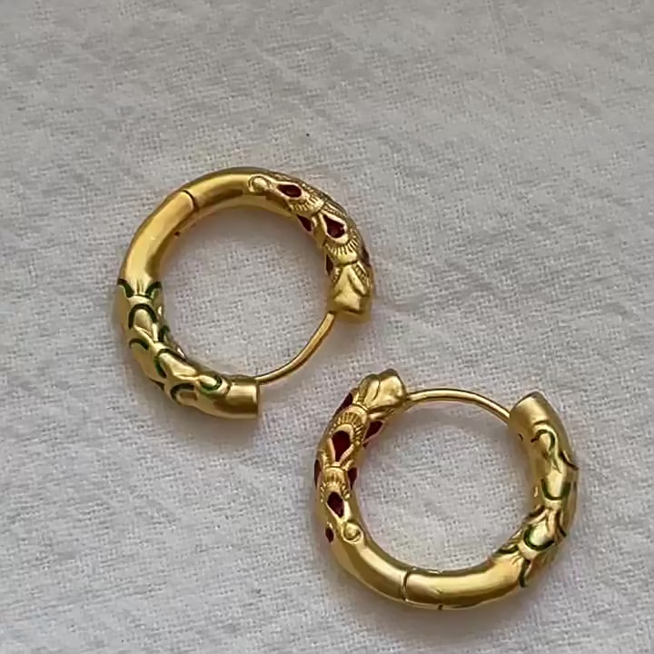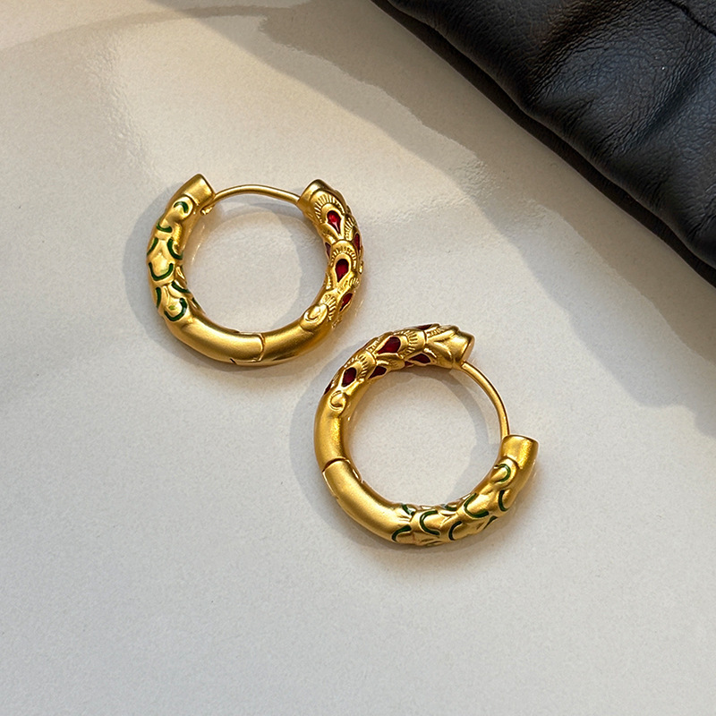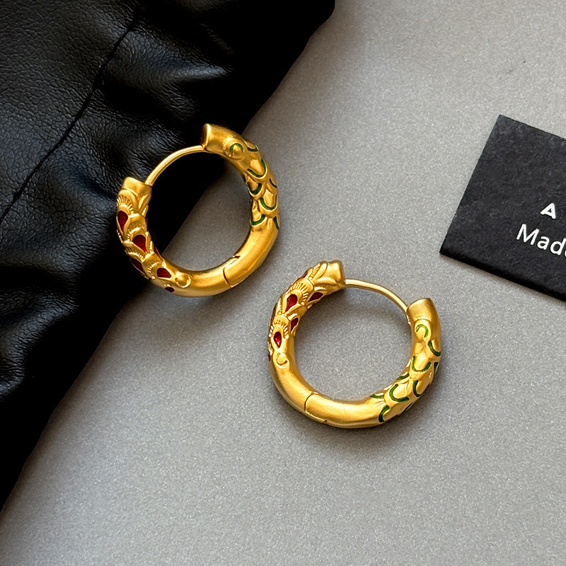 饰品小众高级感简约素圈耳钉真金电镀欧美复古金属感耳圈耳环女