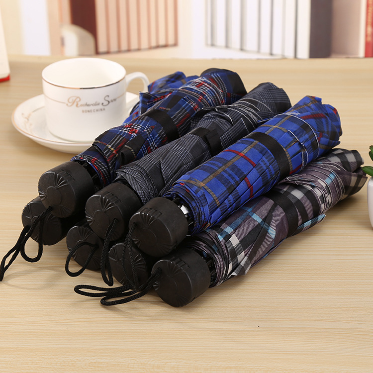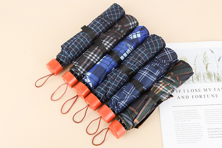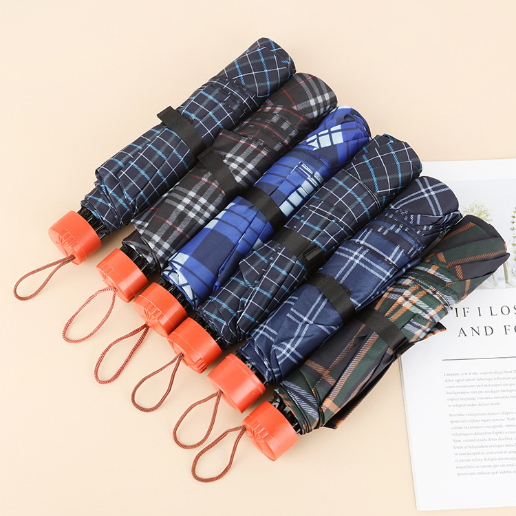 8K格子伞三折折叠短柄雨伞礼品伞广告伞