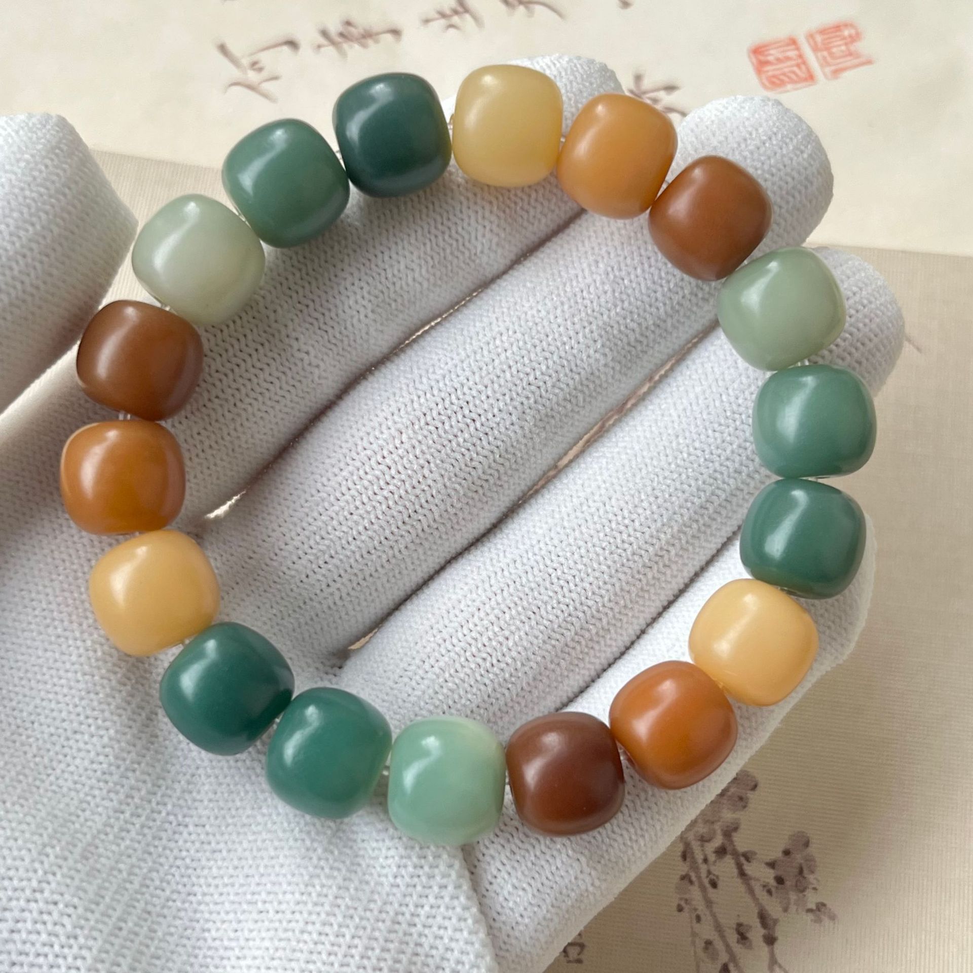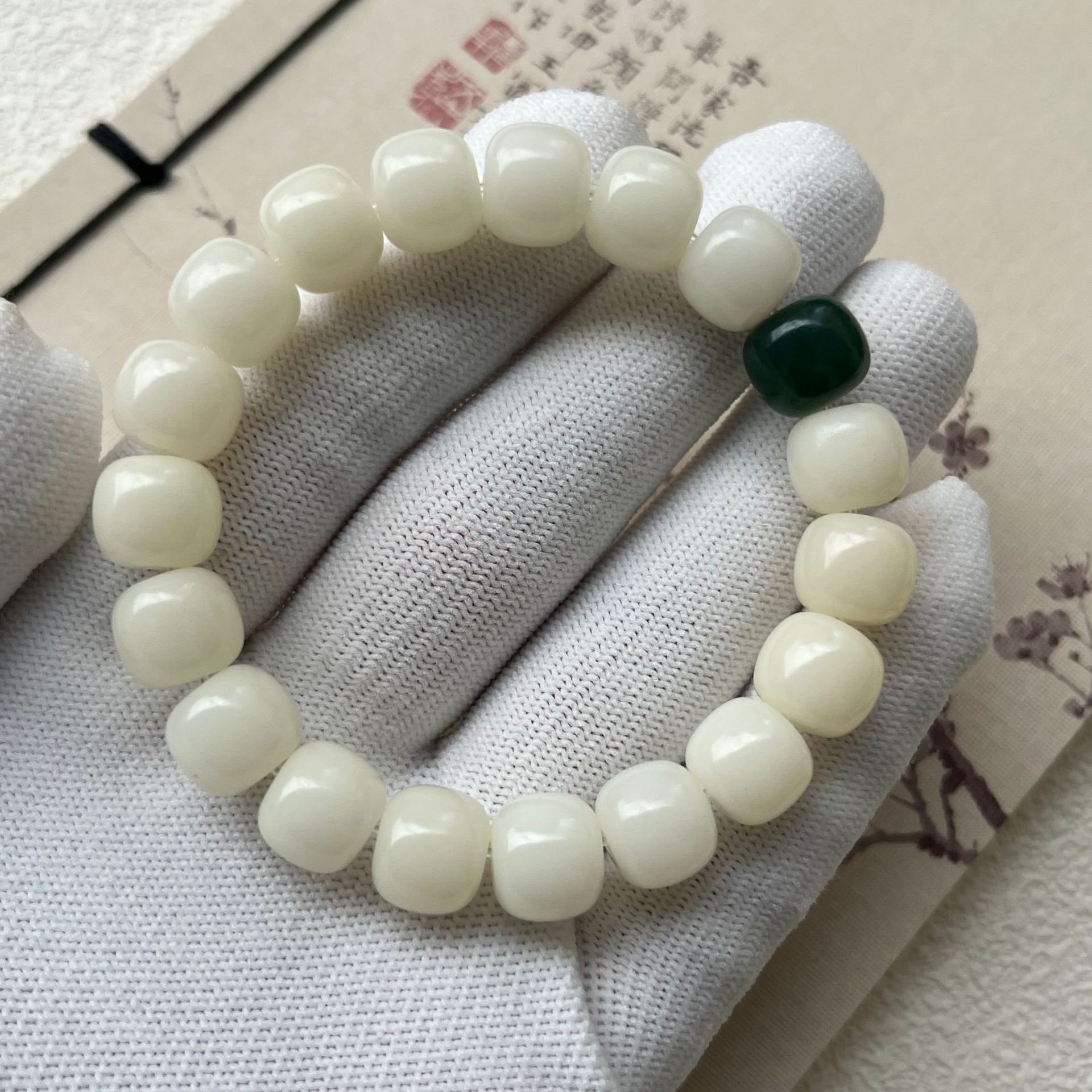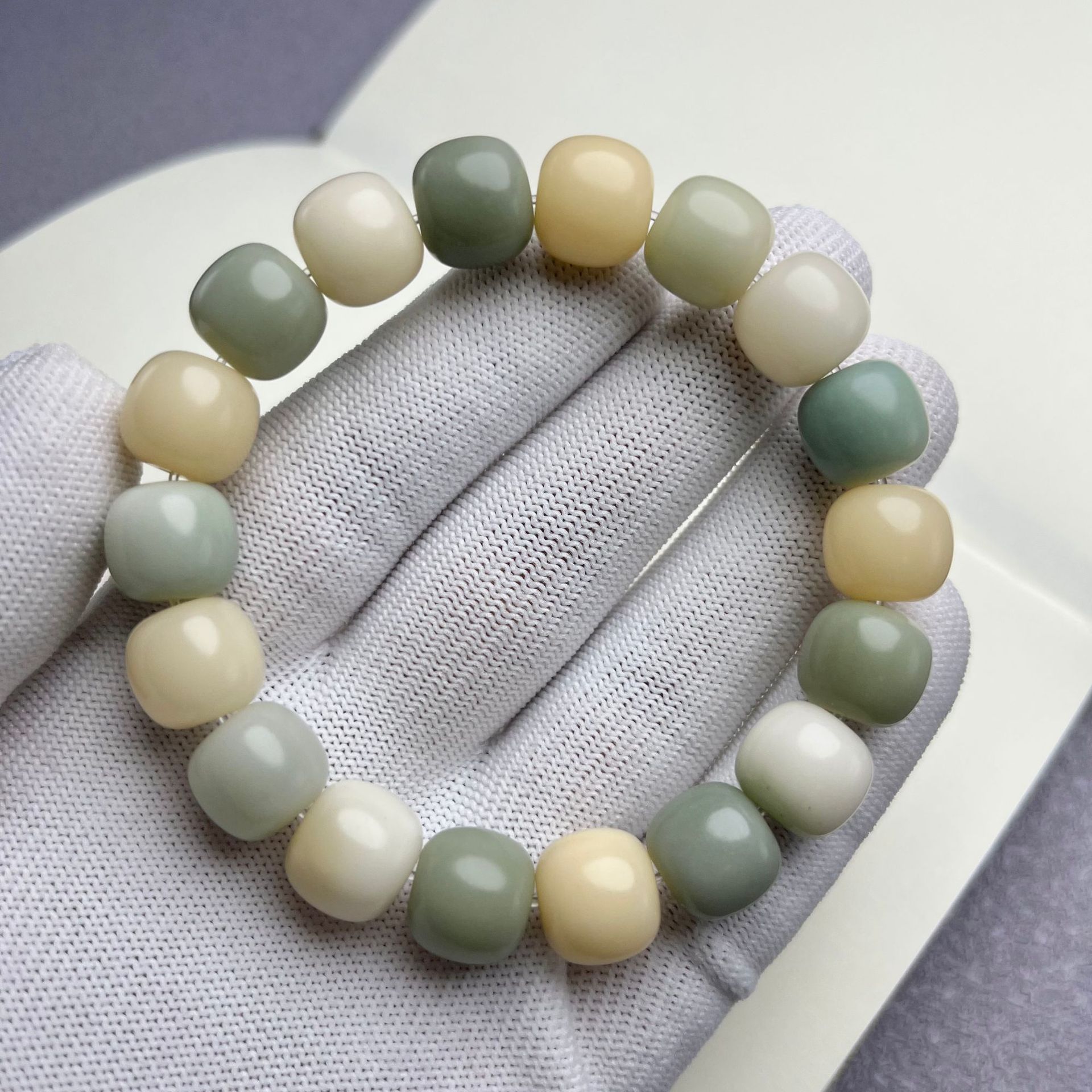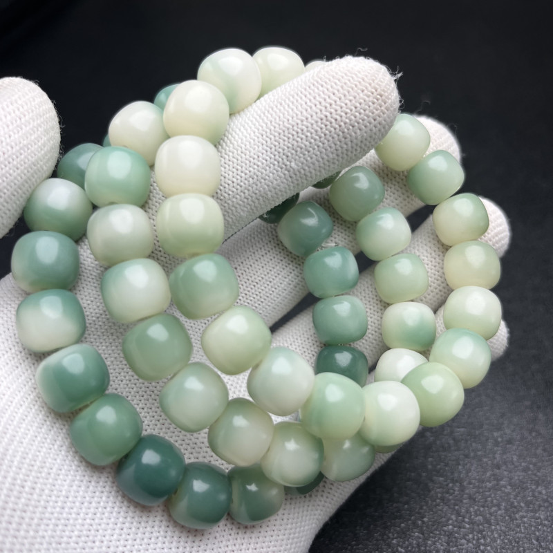 原生态白玉菩提根手串绕指柔学生盘玩绿阴皮菩提文玩佛珠手链批发