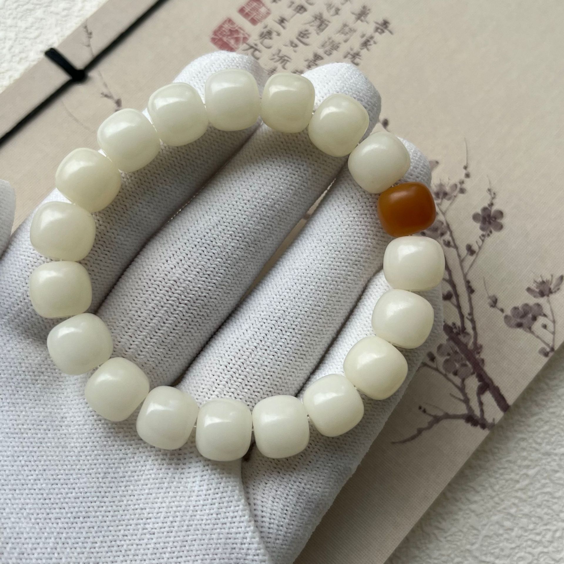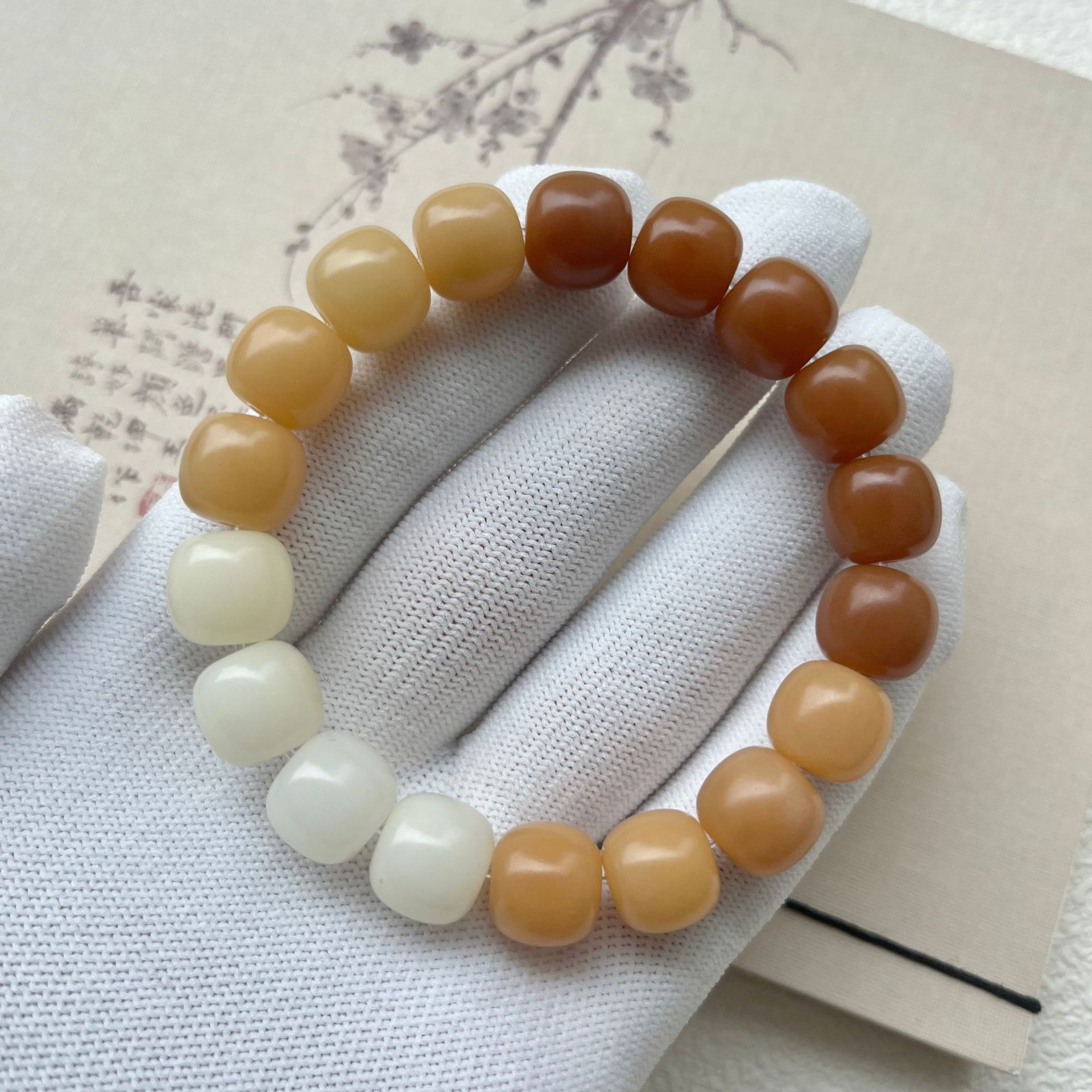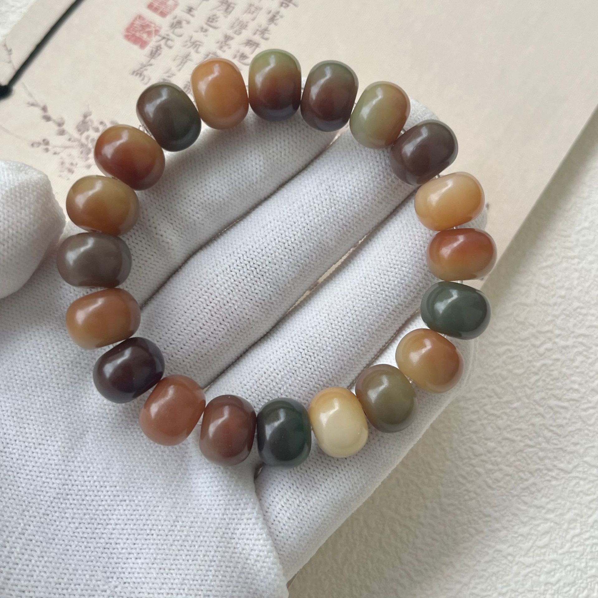原生态白玉菩提根手串绕指柔学生盘玩绿阴皮菩提文玩佛珠手链批发