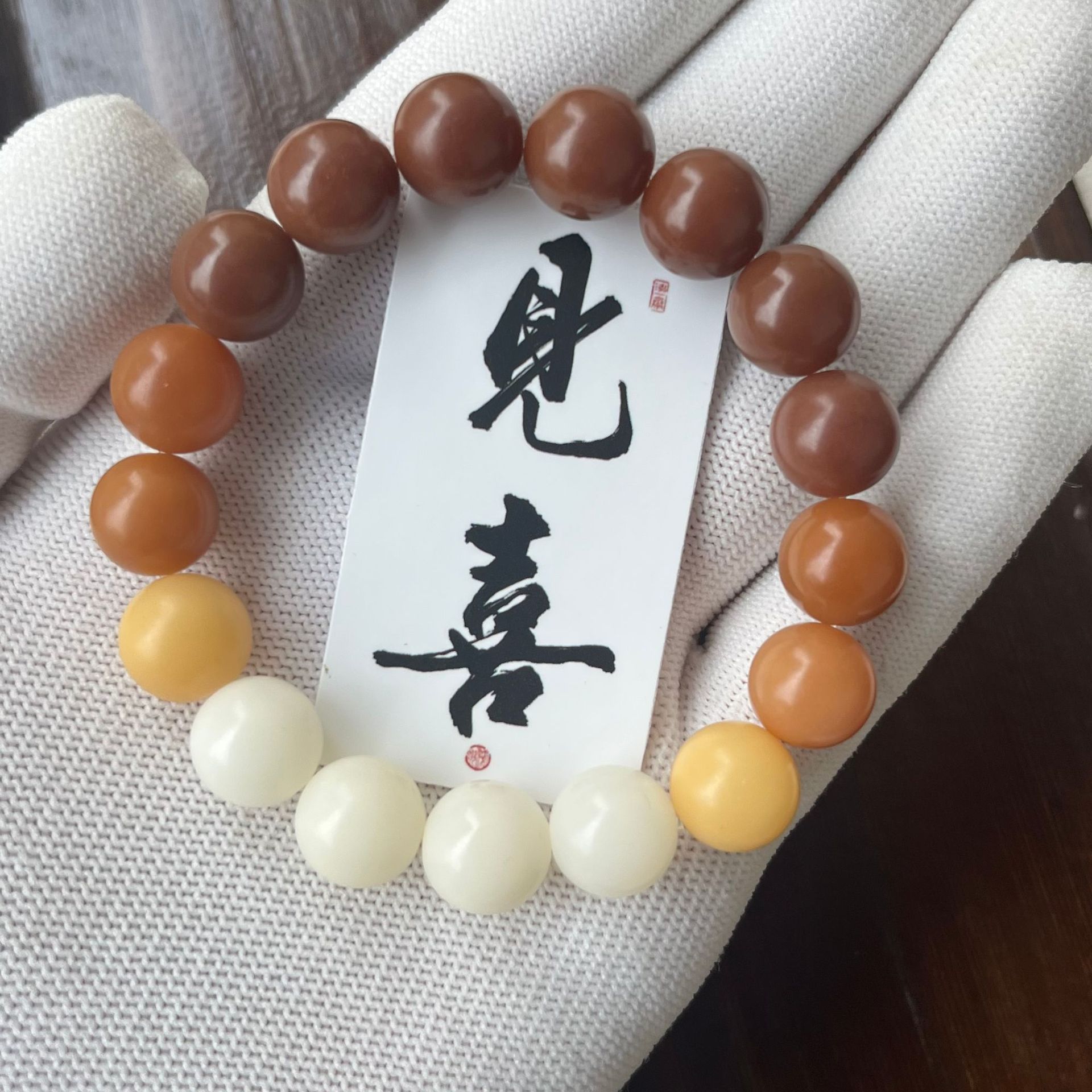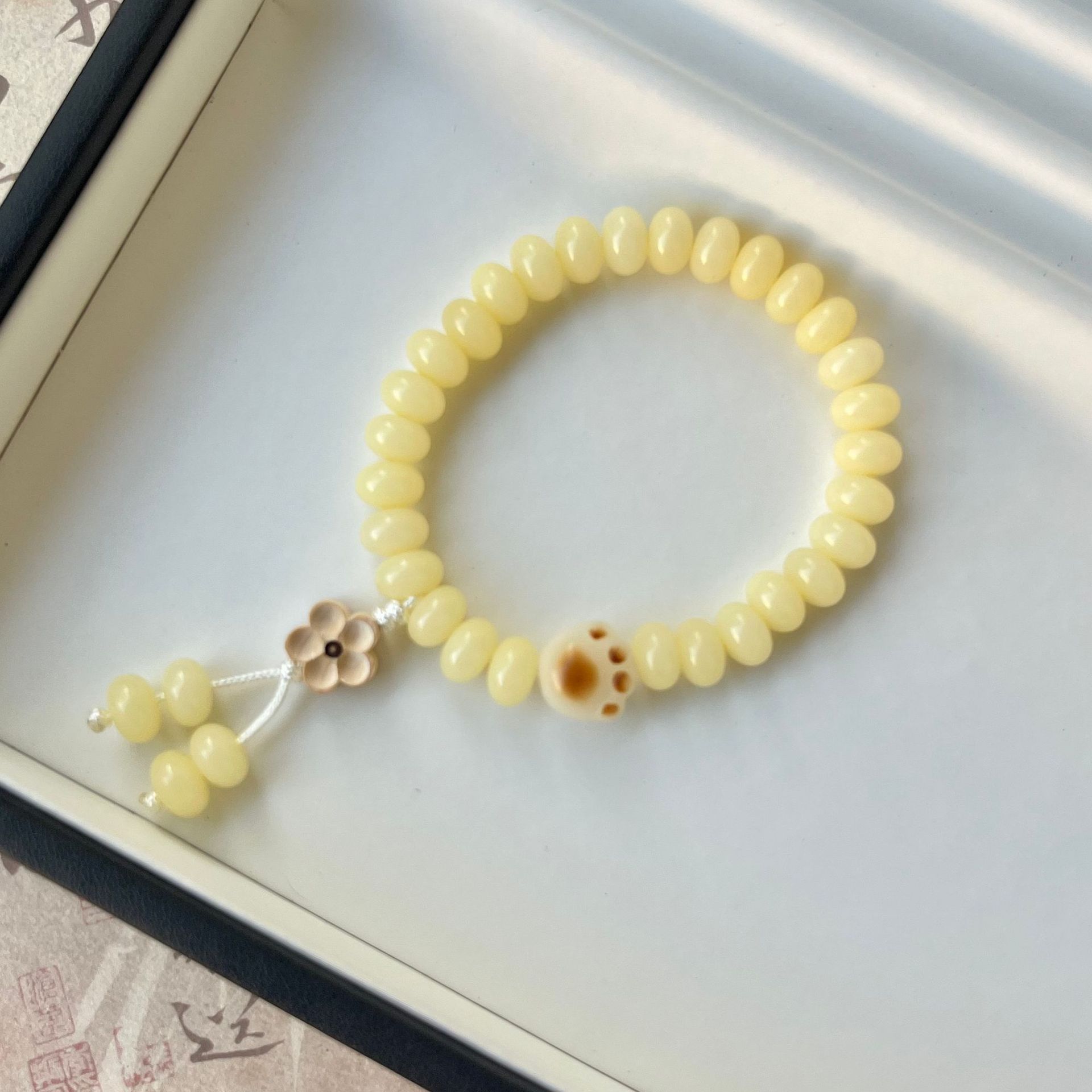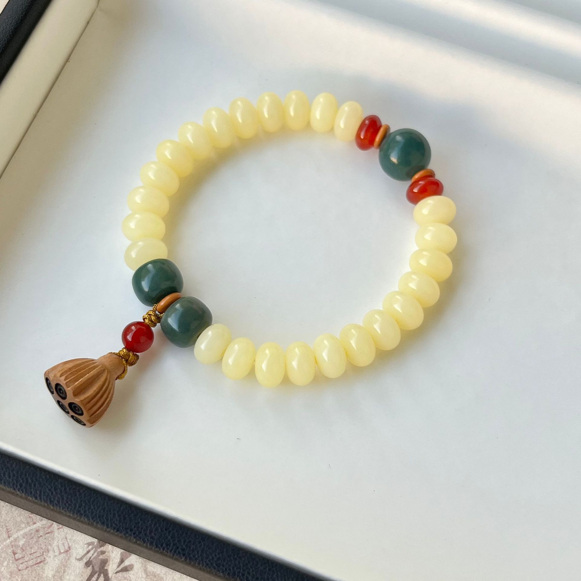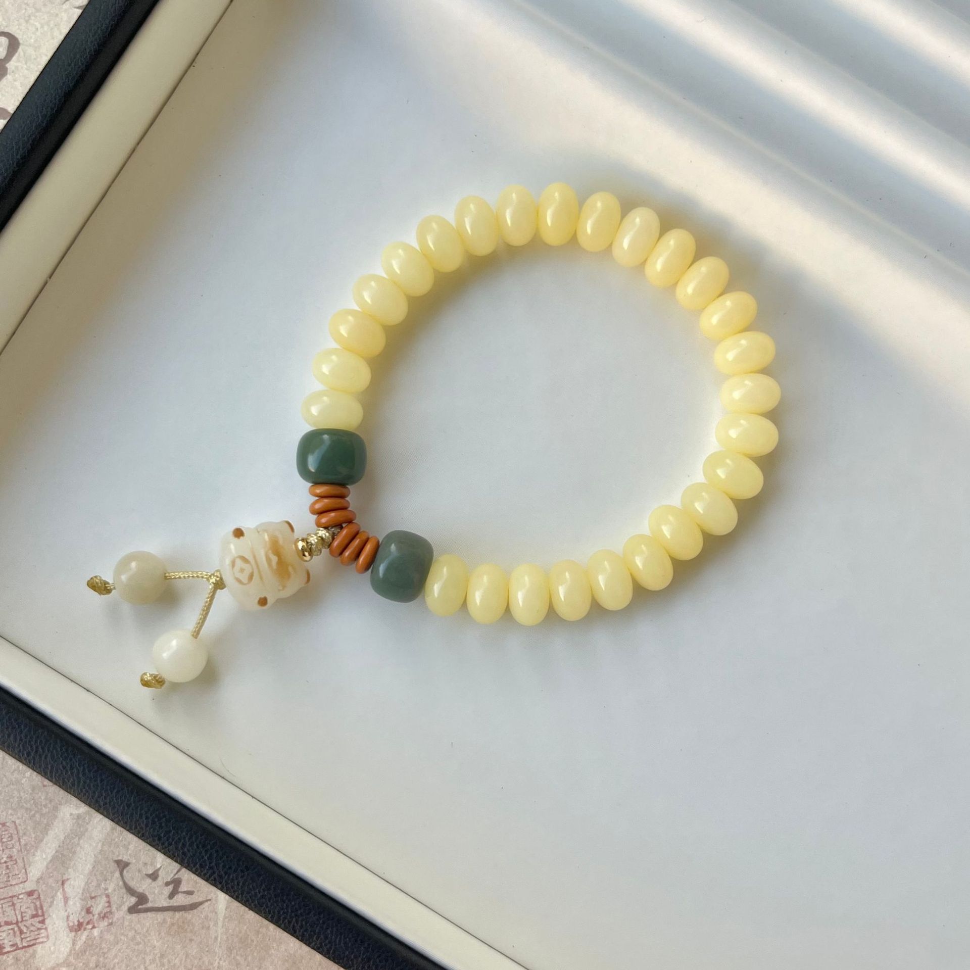 原生态白玉菩提根手串绕指柔学生盘玩绿阴皮菩提文玩佛珠手链批发