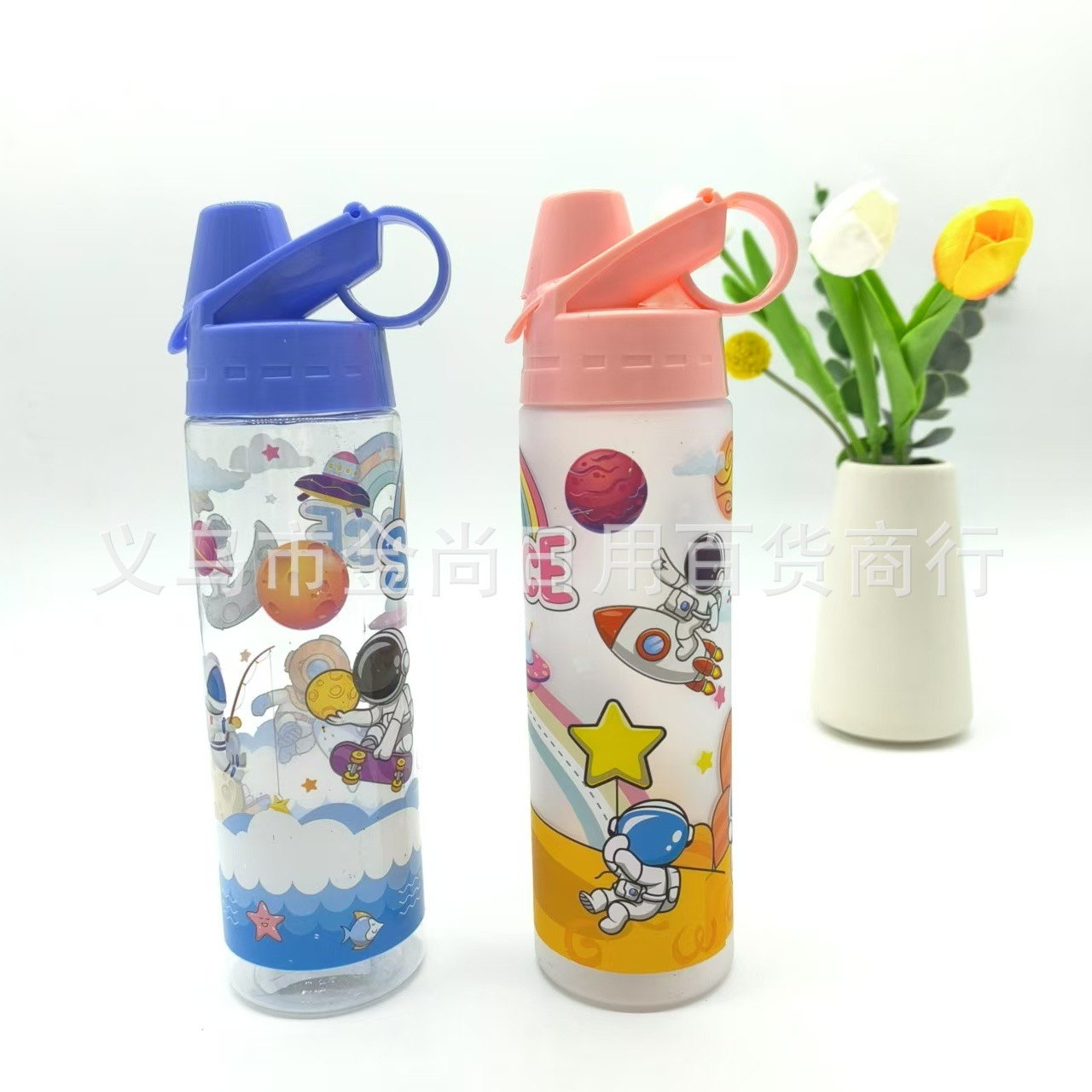 高颜值太空人图案可爱便携卡通印花塑料透明磨砂儿童吸管太空杯